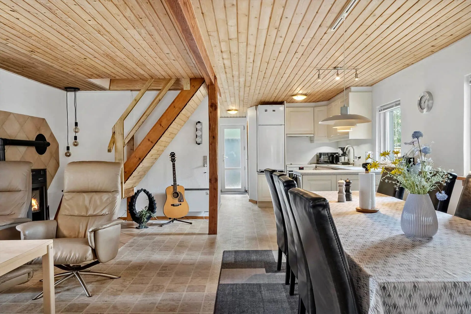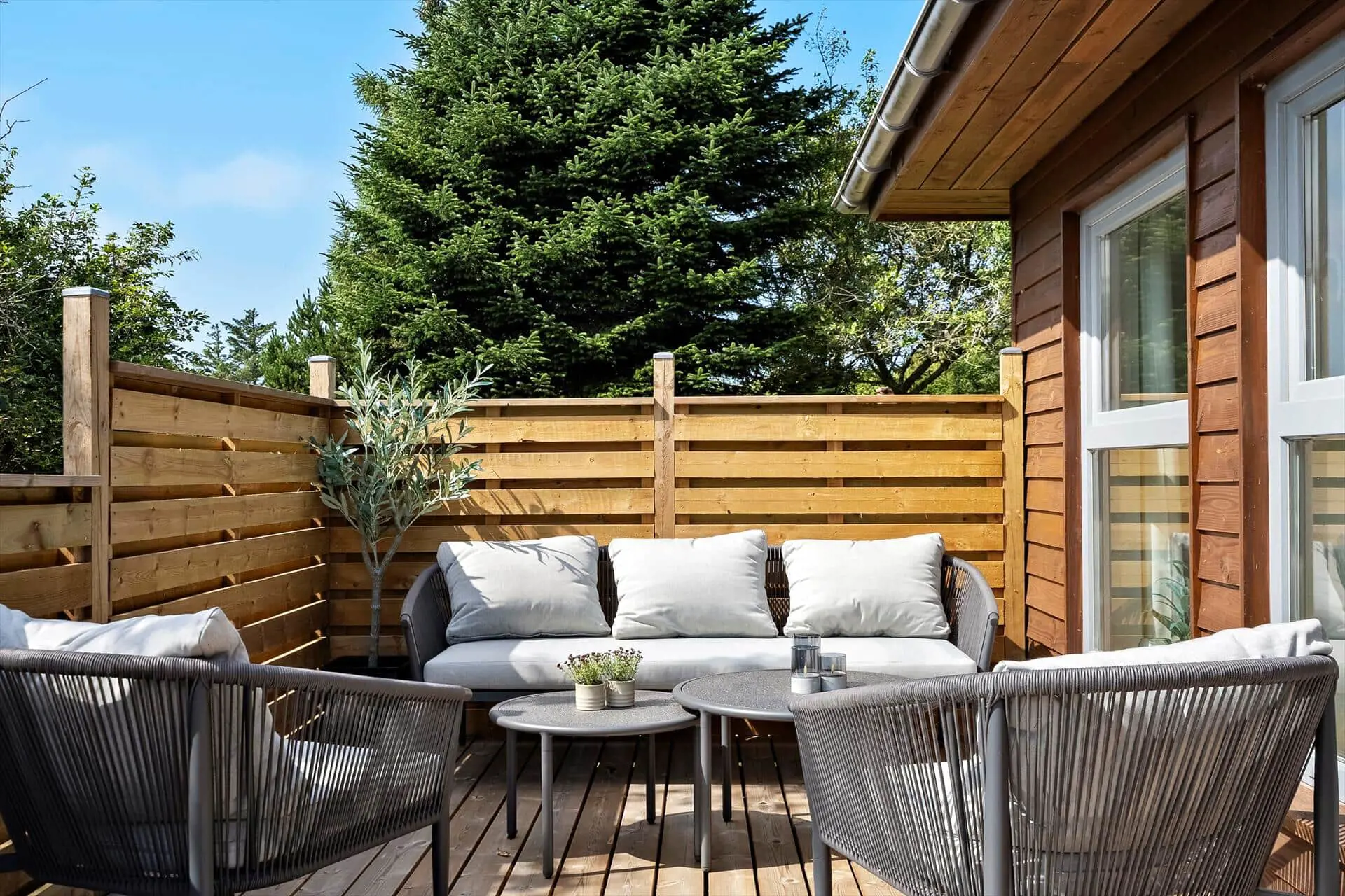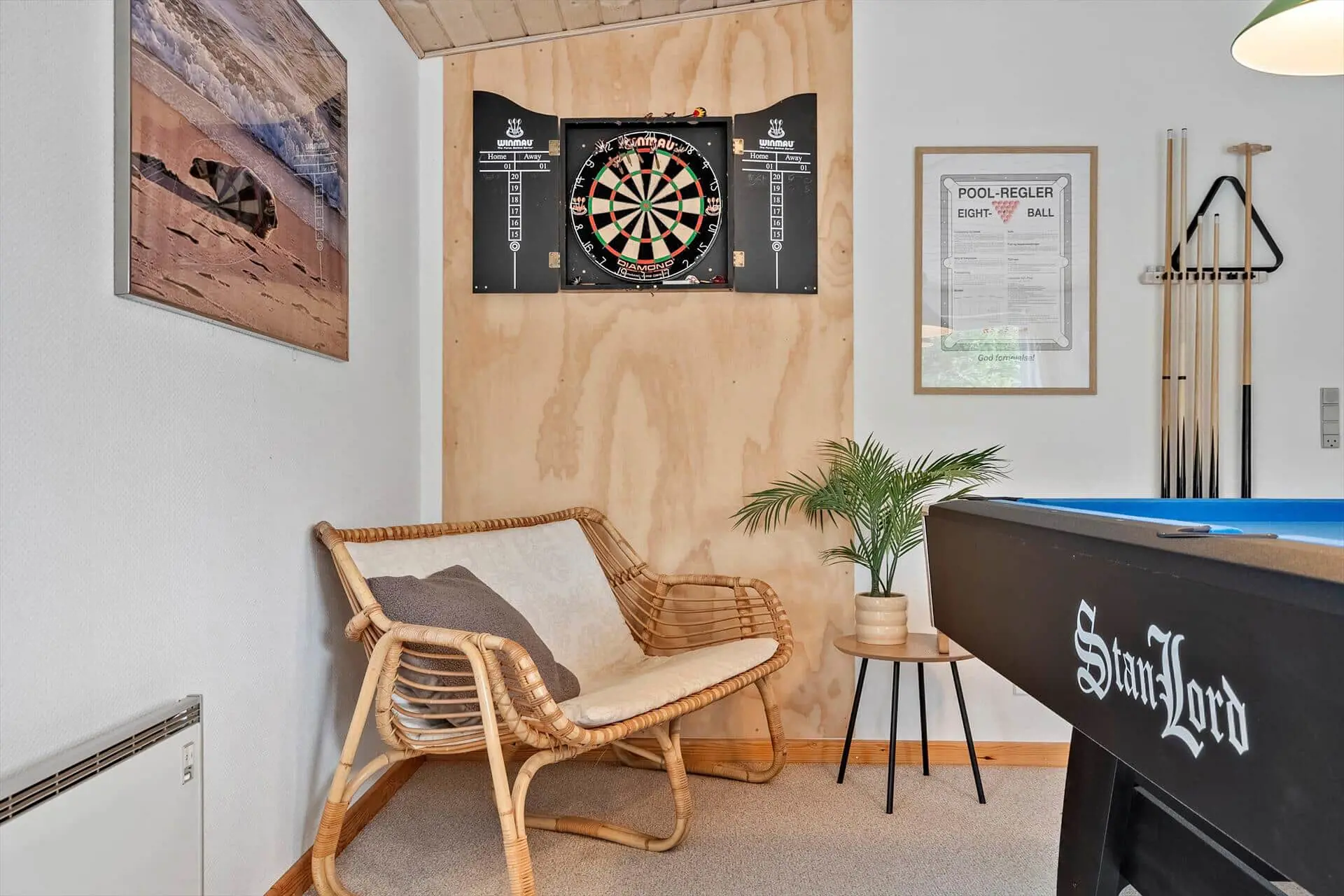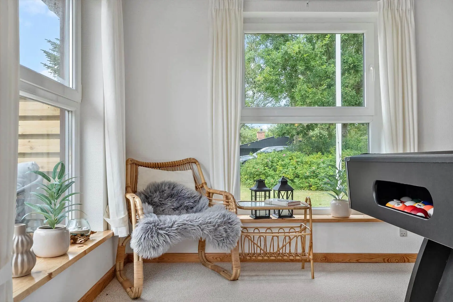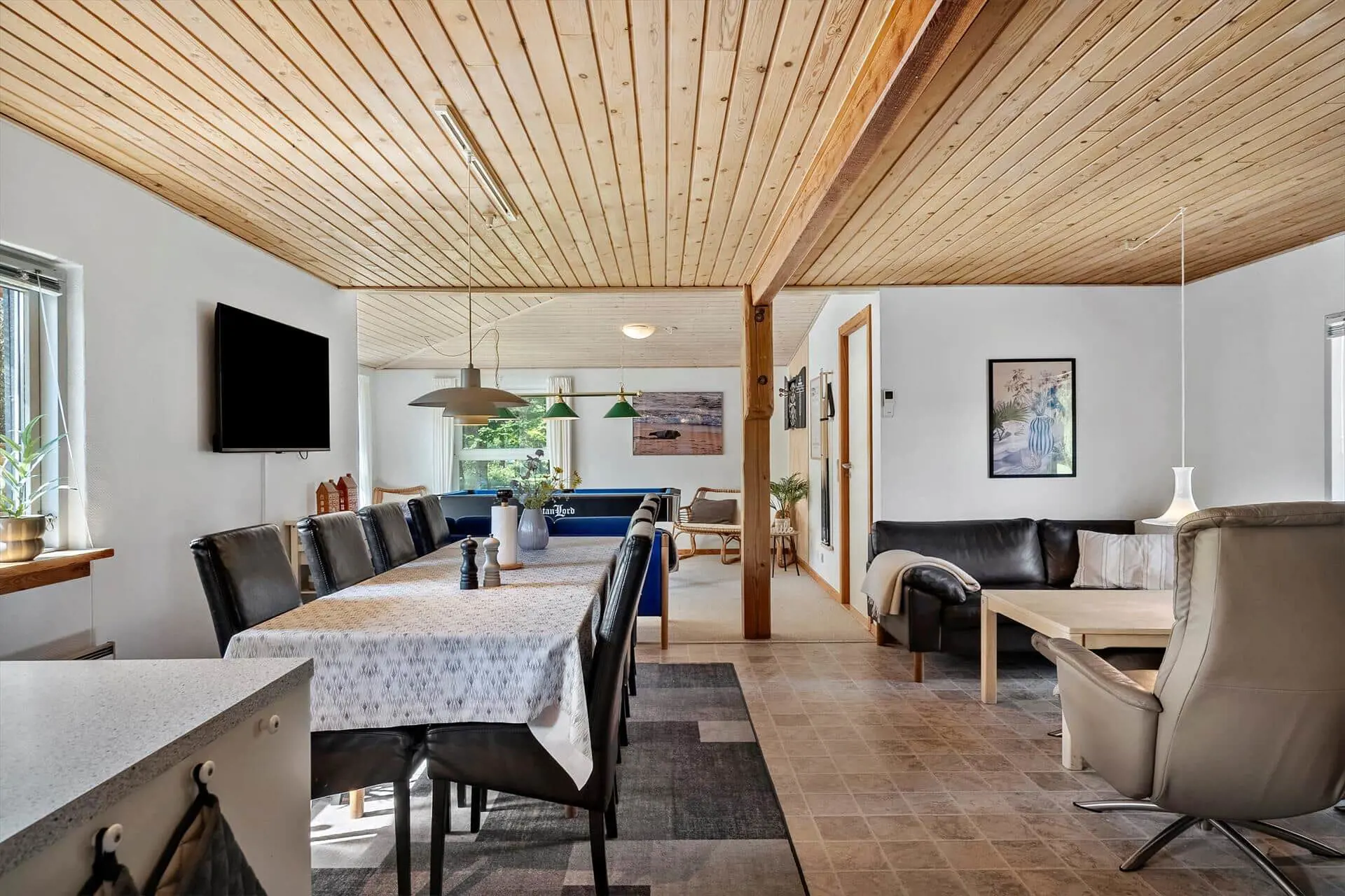 Vom Wohnzimmer aus treten Sie direkt auf die große Holzterrasse hinaus, die den ganzen Tag Sonne bietet. Beginnen Sie den Morgen mit einer frisch gebrühten Tasse Kaffee, genießen Sie ein entspanntes Mittagessen im Freien oder versammeln Sie die Familie am Abend zu einem Grillabend, während Sie die Erlebnisse des Tages Revue passieren lassen. Die Lage lädt dazu ein, vollkommen abzuschalten – und ganz in der Nähe finden Sie sowohl den Fjord als auch die Nordsee, wo Sie lange Spaziergänge am Wasser unternehmen, den Wind im Haar spüren und das einzigartige Licht Westjütlands genießen können.
