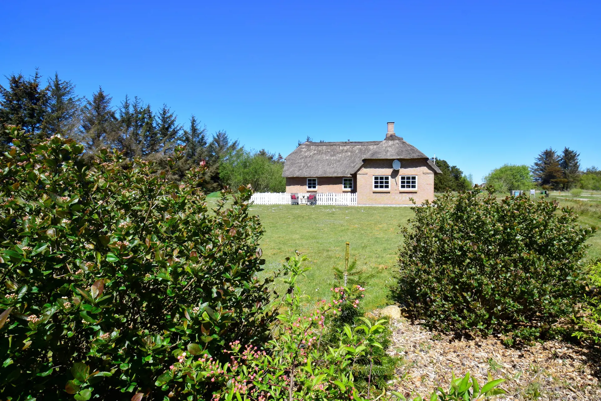 Vom Haus aus könnt ihr oft Rehe am Waldrand beobachten, vielleicht kommt ein Fuchs vorbei, ein Hase genießt das frische Gras oder ein Fasan führt seine Küken über die Wiese. Die Umgebung bietet eine friedliche, naturnahe Atmosphäre mit einem besonderen westjütischen Charme.