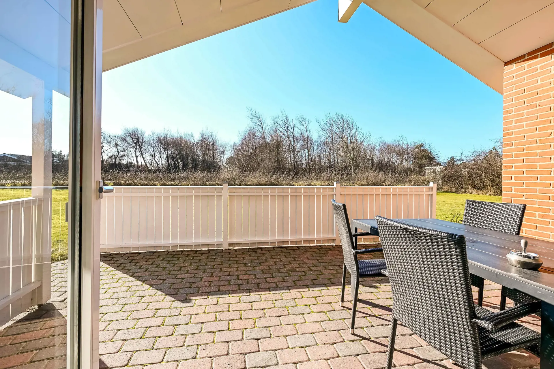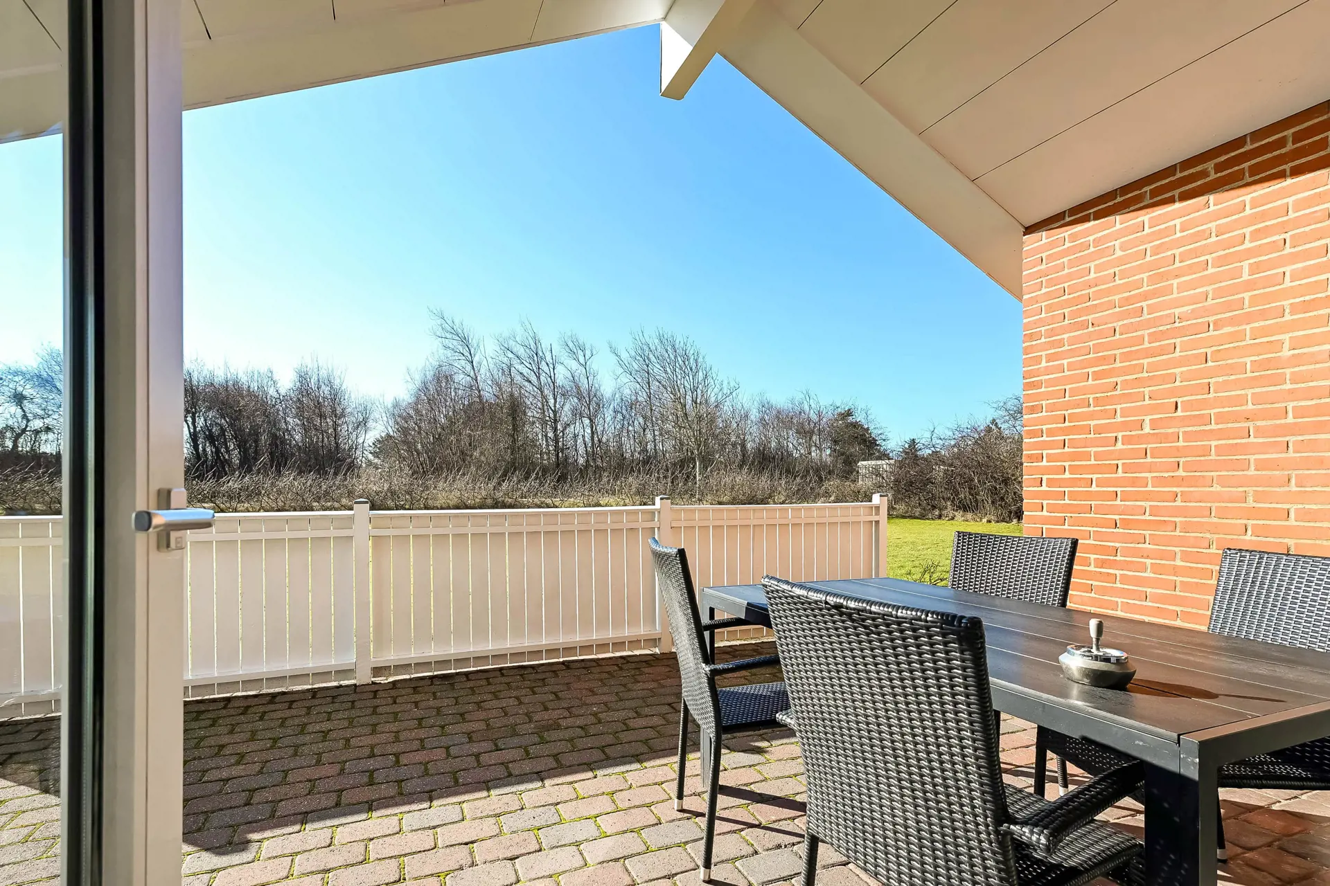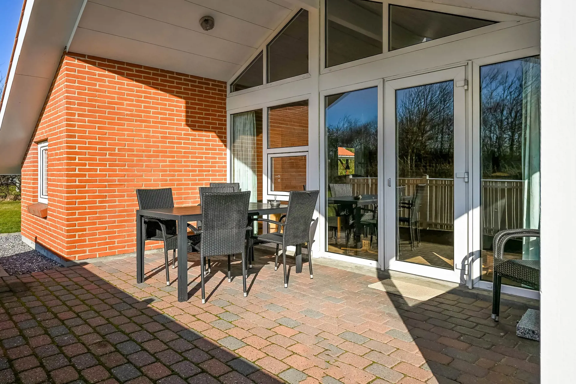 Hier wurde an alles gedacht: Auf der großen, überdachten Südwestterrasse könnt ihr Sonne und Ruhe genießen, draußen essen oder einfach entspannen, während ihr den Tag ausklingen lasst.