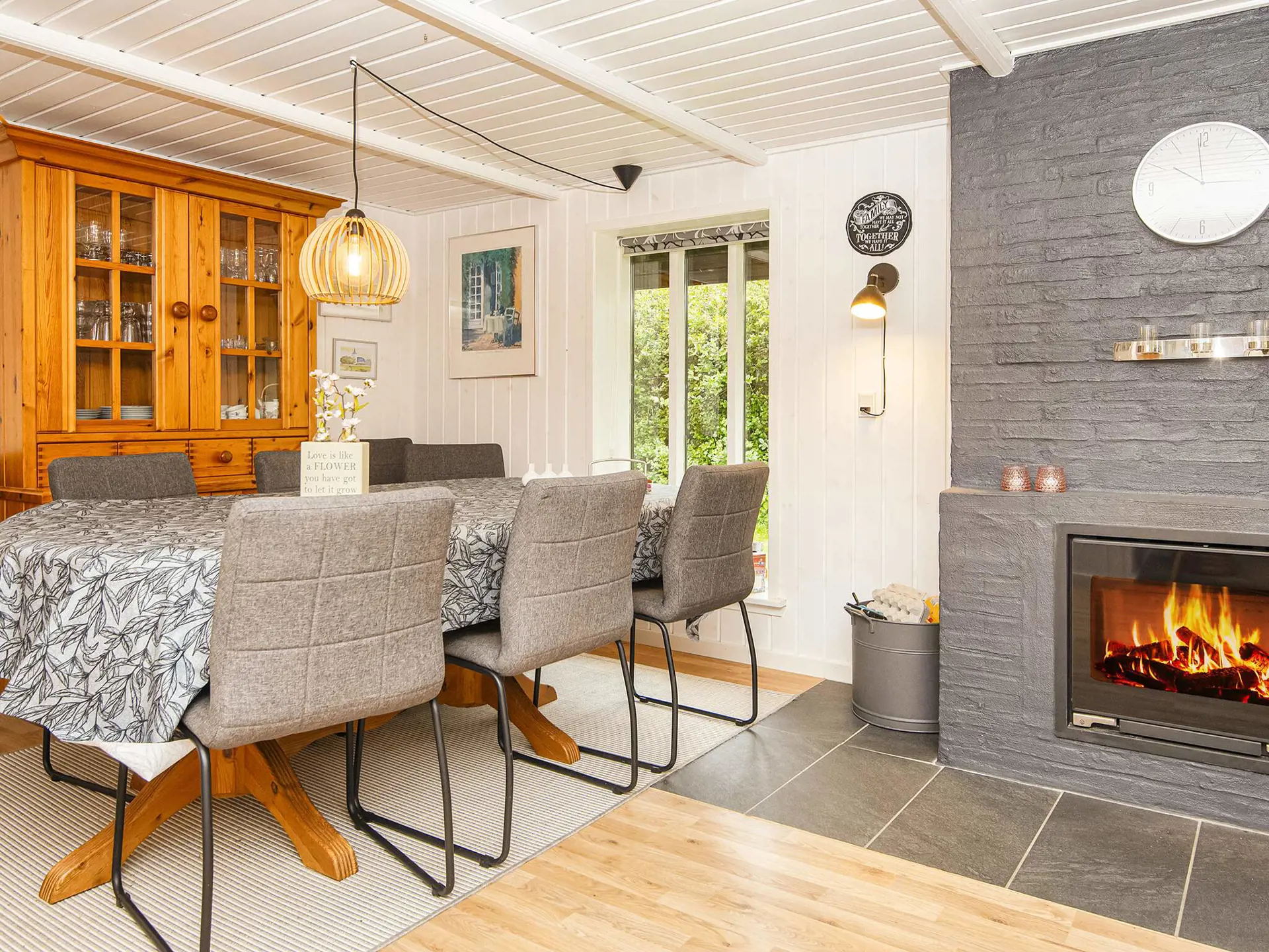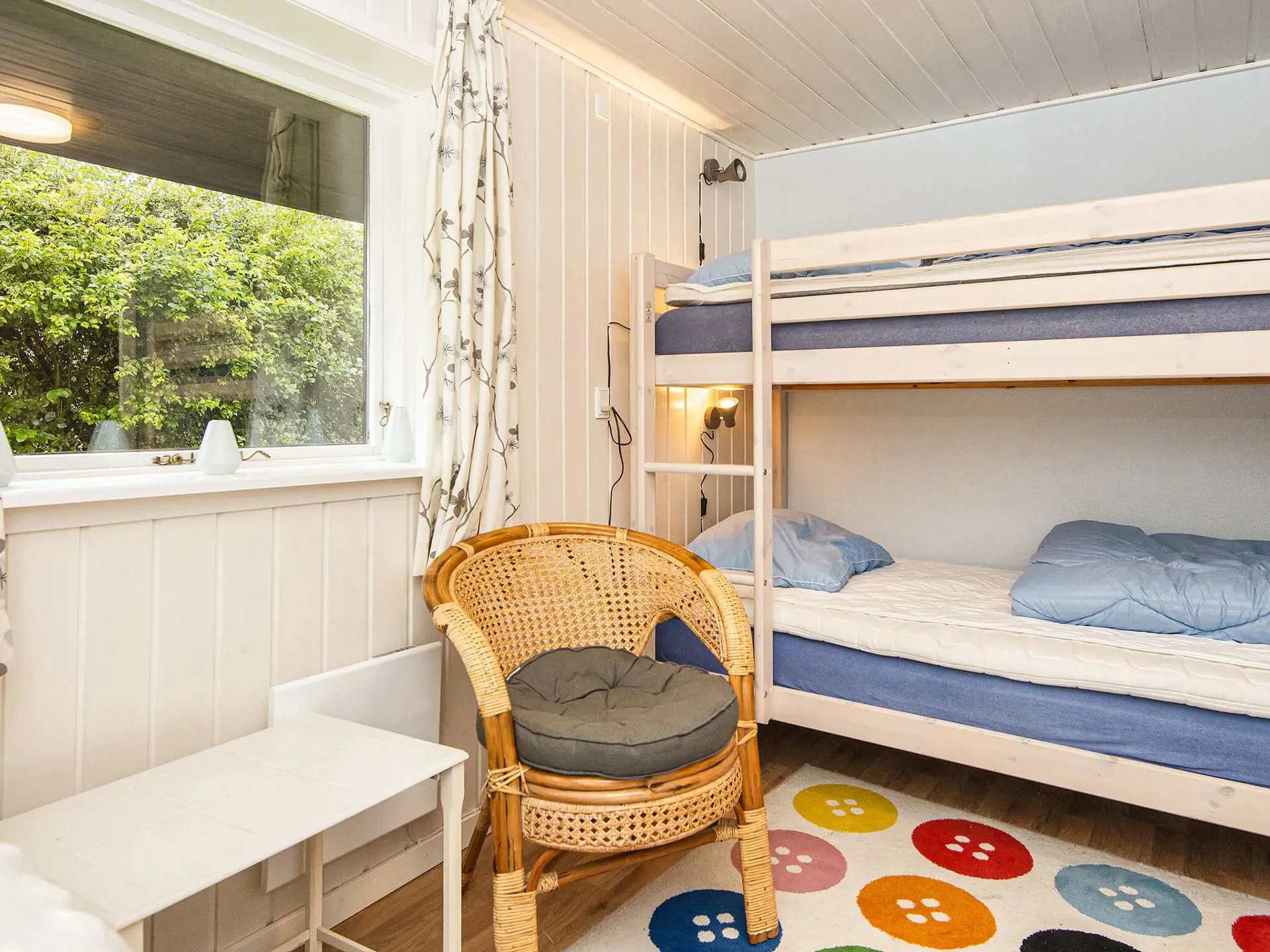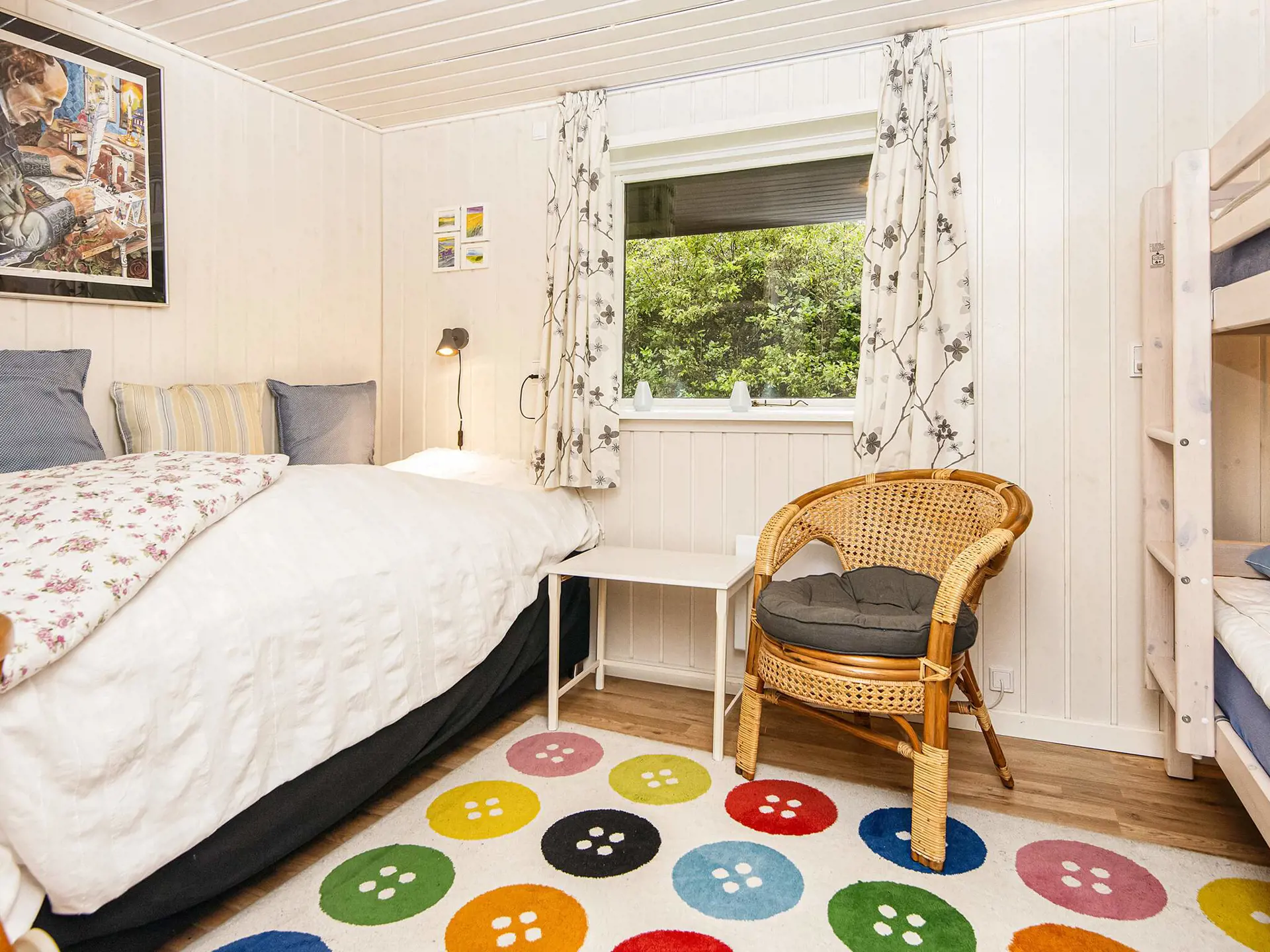 Den Mittelpunkt für das Familienleben bildet der offene Wohn-/Essbereich mit Ess- und Sitzecke. Von dort hat man Zugang weiter zur windgeschützten, teilweise eingezäunten Natursteinterrasse. Im Wohnbereich befindet sich u.a. auch ein gemauerter Holzofen, eine klimafreundliche Luft-Luft-Wärmepumpe sowie Tischkicker, freies WLAN und TV mit einer Auswahl an deutschen Sendern. Neben dem Badezimmer ist das Ferienhaus mit drei Schlafzimmern ausgestattet; eines mit Doppelbett, die beiden anderen mit je einem Etagenbett, eines zudem mit Schlafcouch als Alternative.