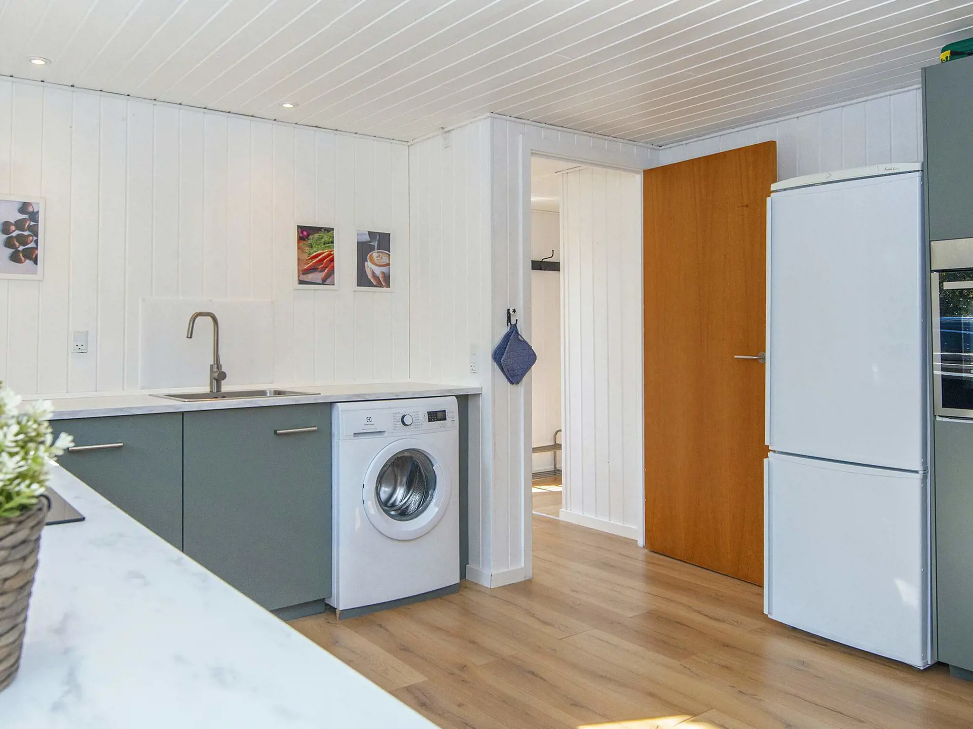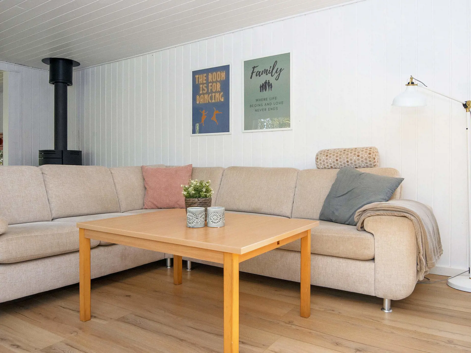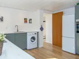 Ferienhaus im schönen Nørhede und ganz in der Nähe des kleinen Hafens Sandholm Havn. Innen helle Küche in offener Verbindung zum Wohnzimmer, in dem sich ein Holzofen befindet. Im Wohnzimmer gibt es zudem eine doppelte Schlafcouch. Am anderen Ende des Hauses liegen zwei Schlafzimmer mit Doppelbett sowie ein Bad mit Dusche/WC.