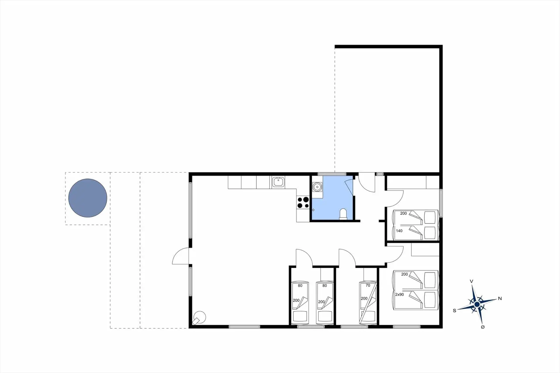 Diese Unterkunft hat eine Fläche von 83 m² und befindet sich auf einem 1.050 m² Grundstück, u.a. mit Trampolin.