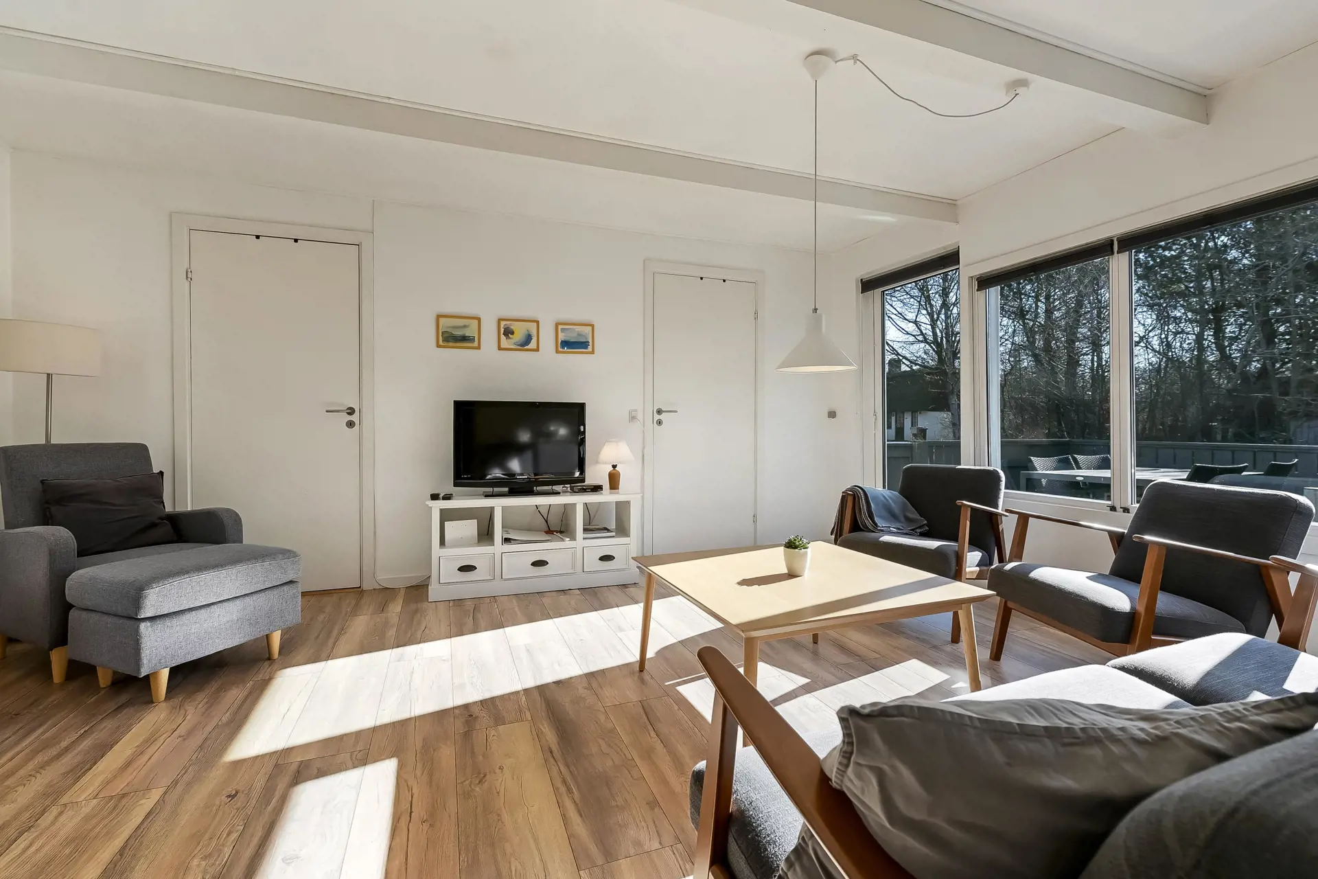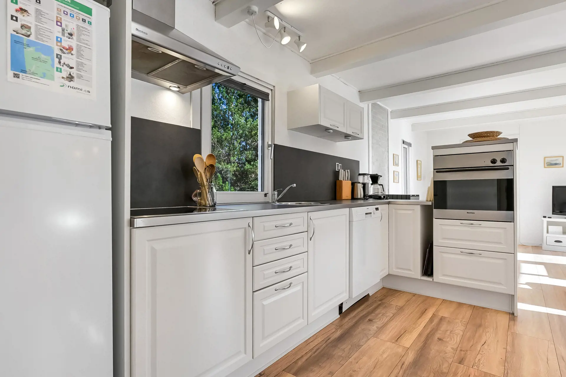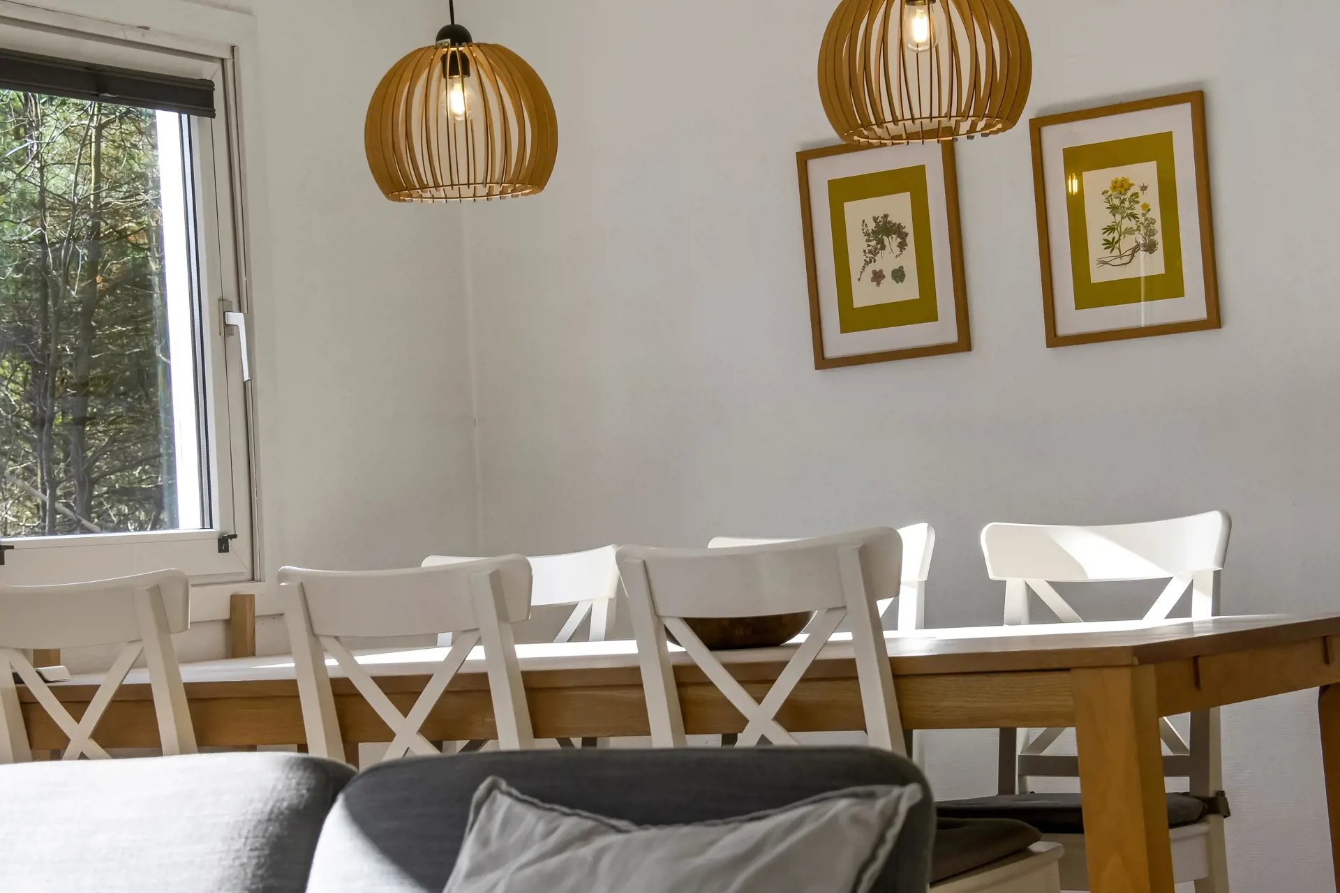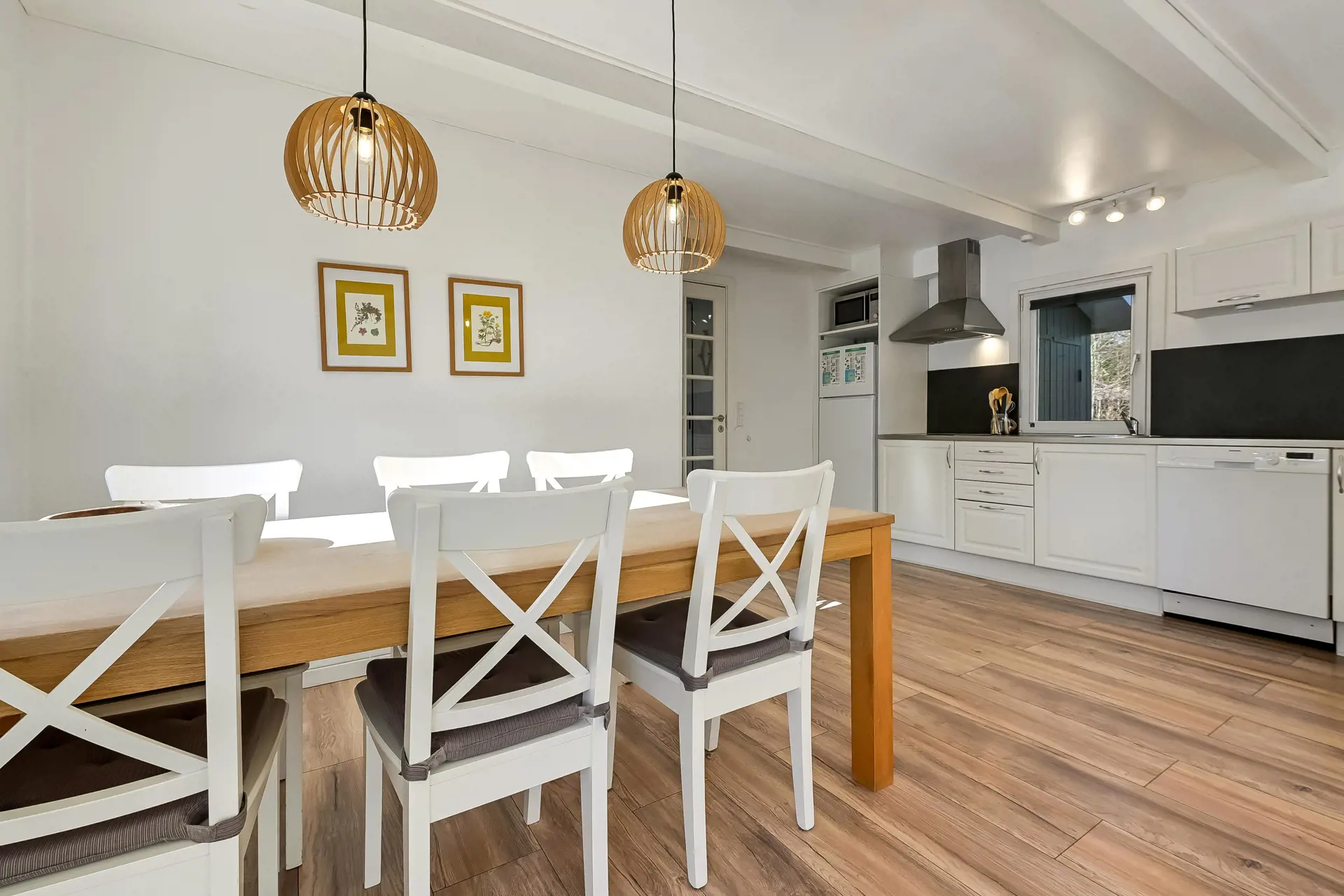 Das Haus ist hell und einladend mit einer weißen Küche, schönen Holzböden und einem renovierten Badezimmer. Die gemütlichen und bequemen Möbel unterstützen die warme Atmosphäre und machen es leicht, sich vom ersten Moment an wie zu Hause zu fühlen. Das Wohnzimmer ist in offener Verbindung mit der Küche und bildet einen natürlichen Treffpunkt, wo die Familie gemütlich Zeit miteinander verbringen kann – sei es beim Essen, beim Spielen am Tisch oder beim Entspannen auf dem Sofa.