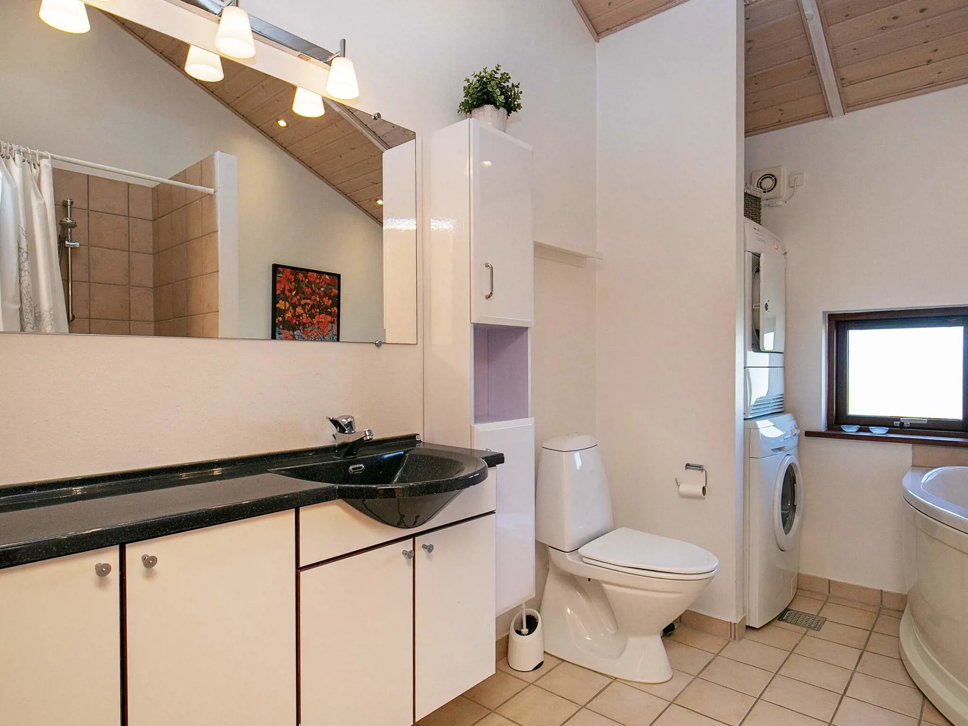 Dieses gepflegte Ferienhaus ist mit vielen modernen Annehmlichkeiten ausgestattet und eignet sich ggf. auch für den Aufenthalt von zwei Familien, die gerne den Urlaub zusammen verbringen möchten. Es verfügt u.a. über ansprechende Schlafzimmer, ein Badezimmer mit Whirlpool und Sauna und eine Gästetoilette. Der Küchen-Aufenthaltsbereich sowie das Wohnzimmer sind mit gefliesten Böden versehen, in den Schlafzimmern gibt es Holzfußböden. Fußbodenheizung im gesamten Haus. Auf der teilweise überdachten Terrasse können Sie wunderbar geschützt sitzen.