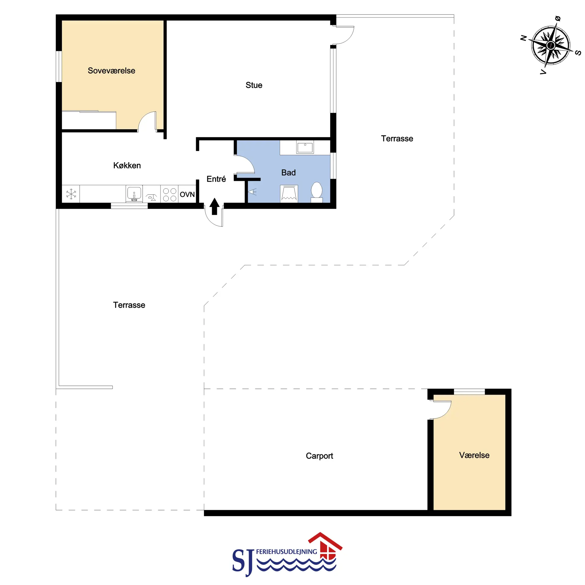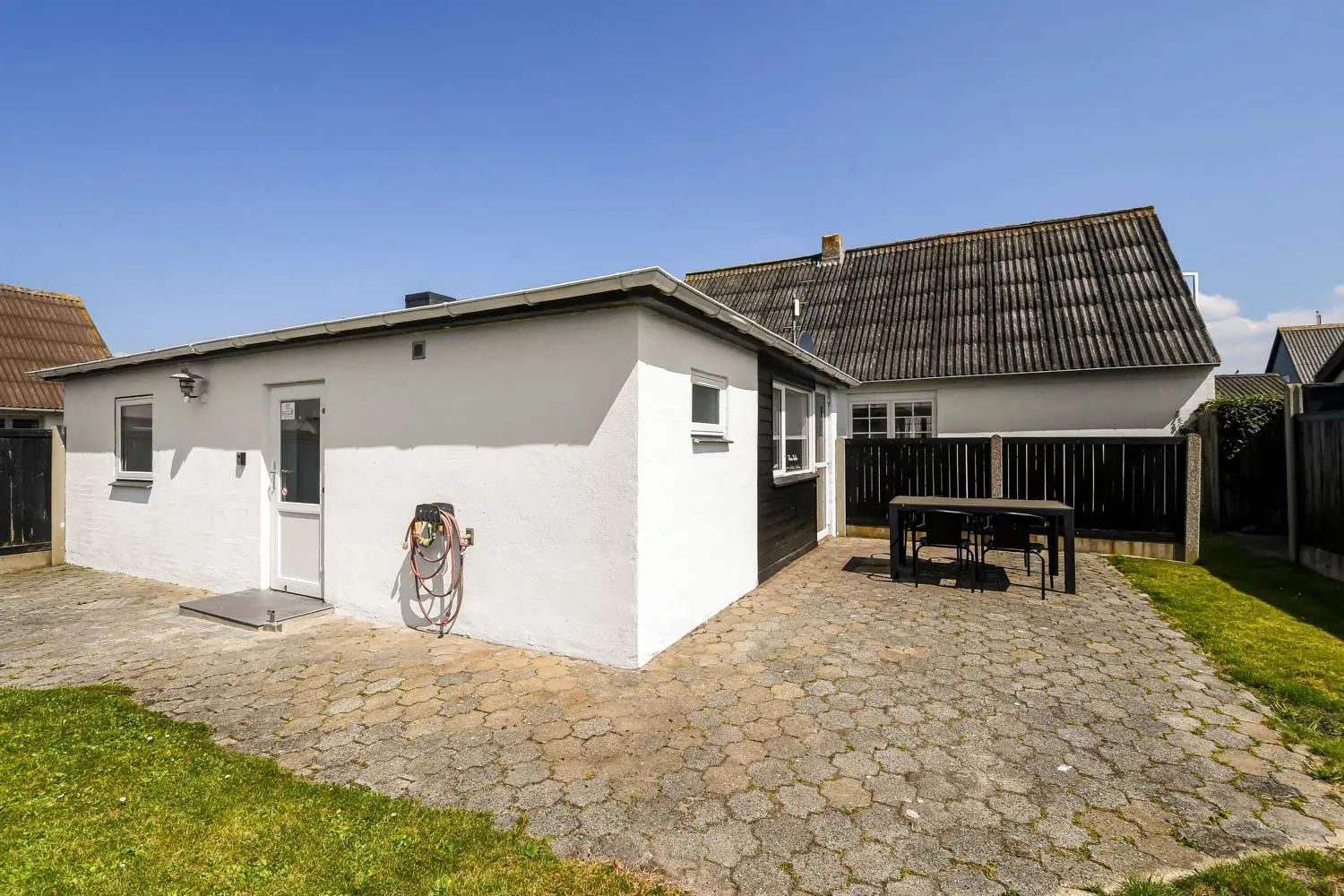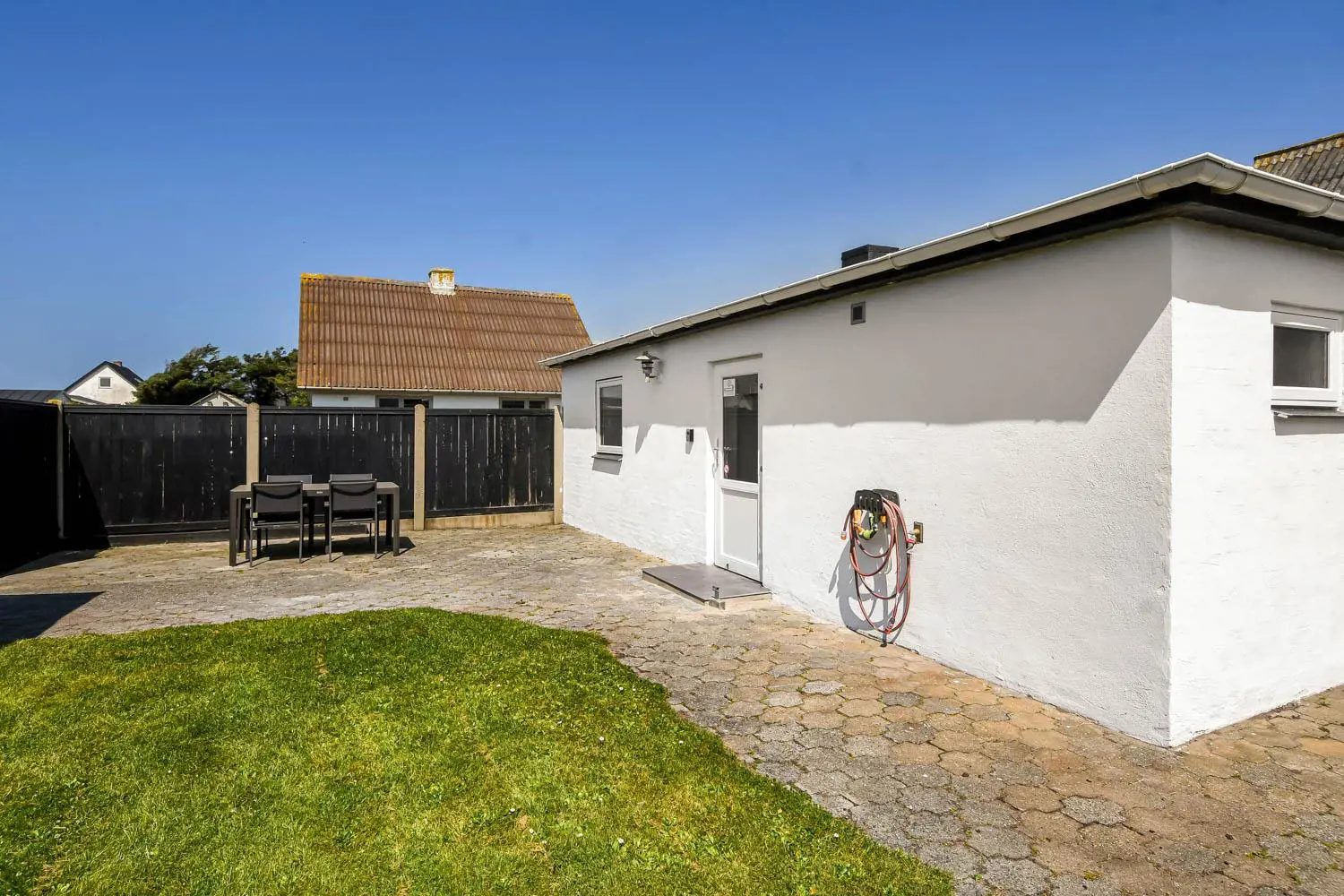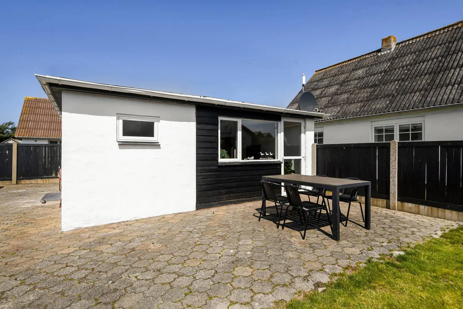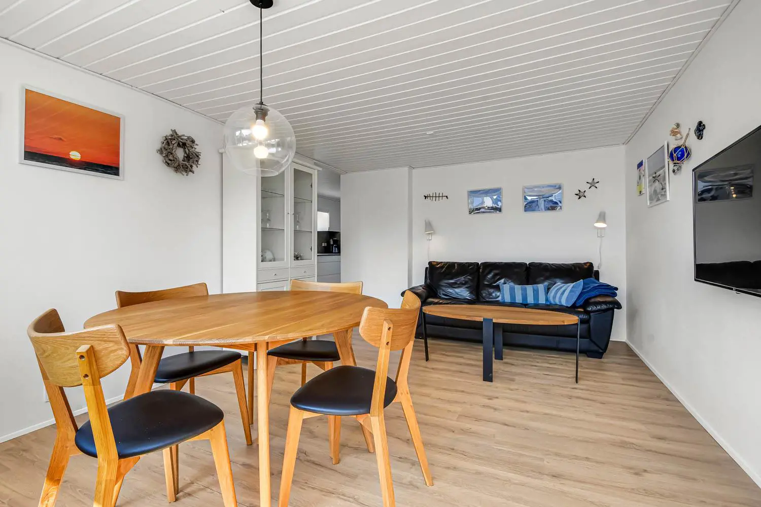 Schönes und neu renoviertes Ferienhaus mit 48 qm für 4 Personen. Der Wohnraum ist mit Ledermöbeln eingerichtet; es gibt Radio, TV mit Parabolantenne und die Möglichkeit zum Streamen von Apps/Radio/TV-Programmen, für die Sie selber ein Abonnement haben. Es gibt freies WLAN. Badezimmer mit Toilette, Waschbecken, Dusche, Fußbodenheizung. Schöne Küche mit Herd mit Cerankochfeld, eingebautem Ofen, Abzugshaube, Kühl-/Gefrierschrank und Geschirrspüler. 2 Schlafräume: 1DS + 1DS, Anbau mit 2 Schlafplätze. Waschmaschine und Trockner sind im Haus. 2 Haustiere sind erlaubt. Nichtraucher-Haus.
