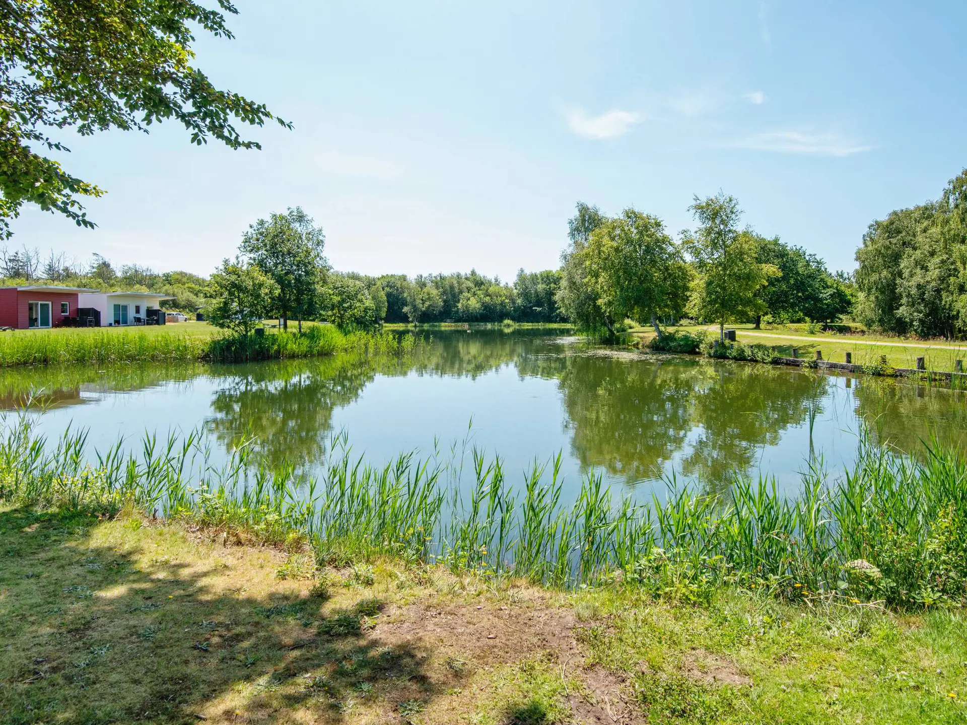 Ferienhaus bei Hee in einem schönen Ferienhausgebiet mit Blick auf einen idyllischen Angelsee. Die 71 m2 große Wohnfläche bietet zwei Zimmer mit Doppelbett und ein drittes Zimmer mit Etagenbett. Das frei stehende Haus ist ganzjährig isoliert, hat im ganzen Haus angenehme Fußbodenheizung und zudem eine klimafreundliche Wärmepumpe für kühlere Tage. Es gibt folgende deutsche Fernsehsender: RTL, NDR, ZDF, ARD. Alles über You See, das auf dem Smart-TV läuft. Am Haus zudem Ladegerät für Elektroautos (Typ 2).