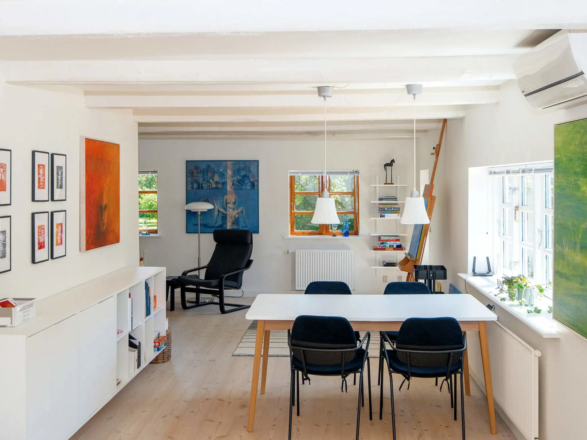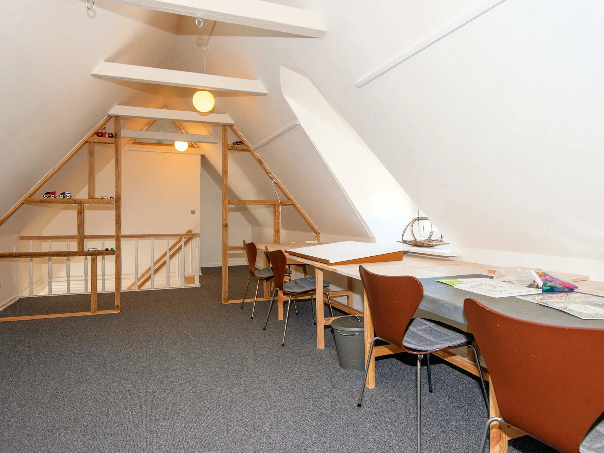 Es gibt ein Schlafzimmer mit Doppelbett unten sowie zwei weitere Schlafzimmer für je 2 Personen oben im ersten Stock. Außerdem gibt es einen großen, gemütlichen Kreativraum mit Arbeitstisch und Spielfläche.
