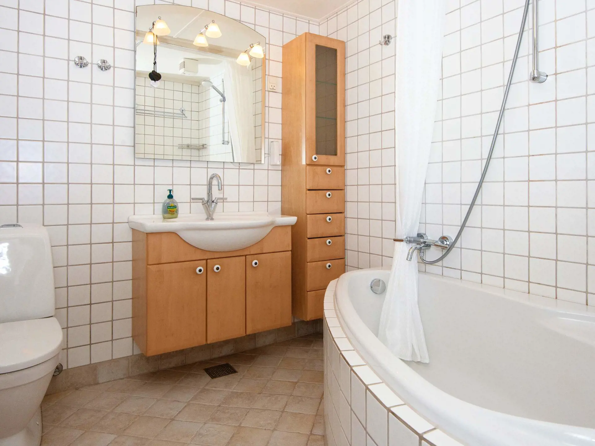 Das Ferienhaus ist 152 m2 groß und bietet zwei Etagen. Unten helle, gemütliche Küche in offener Verbindung zum Ess- und Wohnzimmer, alles ansprechend eingerichtet. Badezimmer mit Dusche und Badewanne. Die Einrichtung ist durchgehend hell und einladend, die Holzböden ebenfalls hell. Gute Küchenausstattung und direkten Zugang zum Essbereich.