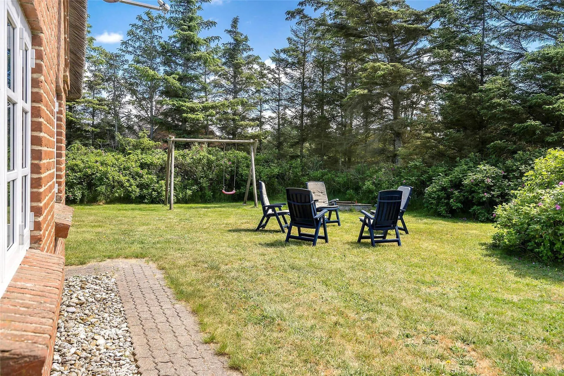 Das ausgesprochen schöne Reetdachhaus liegt auf einem großen, gepflegten Grundstück mit gutem Windschutz. Gen Südwesten erstreckt sich ein großes, gepflastertes Terrassenareal mit guten Gartenmöbeln, Liegestühlen und einem Sonnenschirm. Die jüngsten Urlauber dürfen sich auf eine große Grasfläche, eine Schaukel und eine Sandkiste freuen. Der hauseigene Grill lädt zu geselligen Abenden mit einem guten Essen im Freien ein.