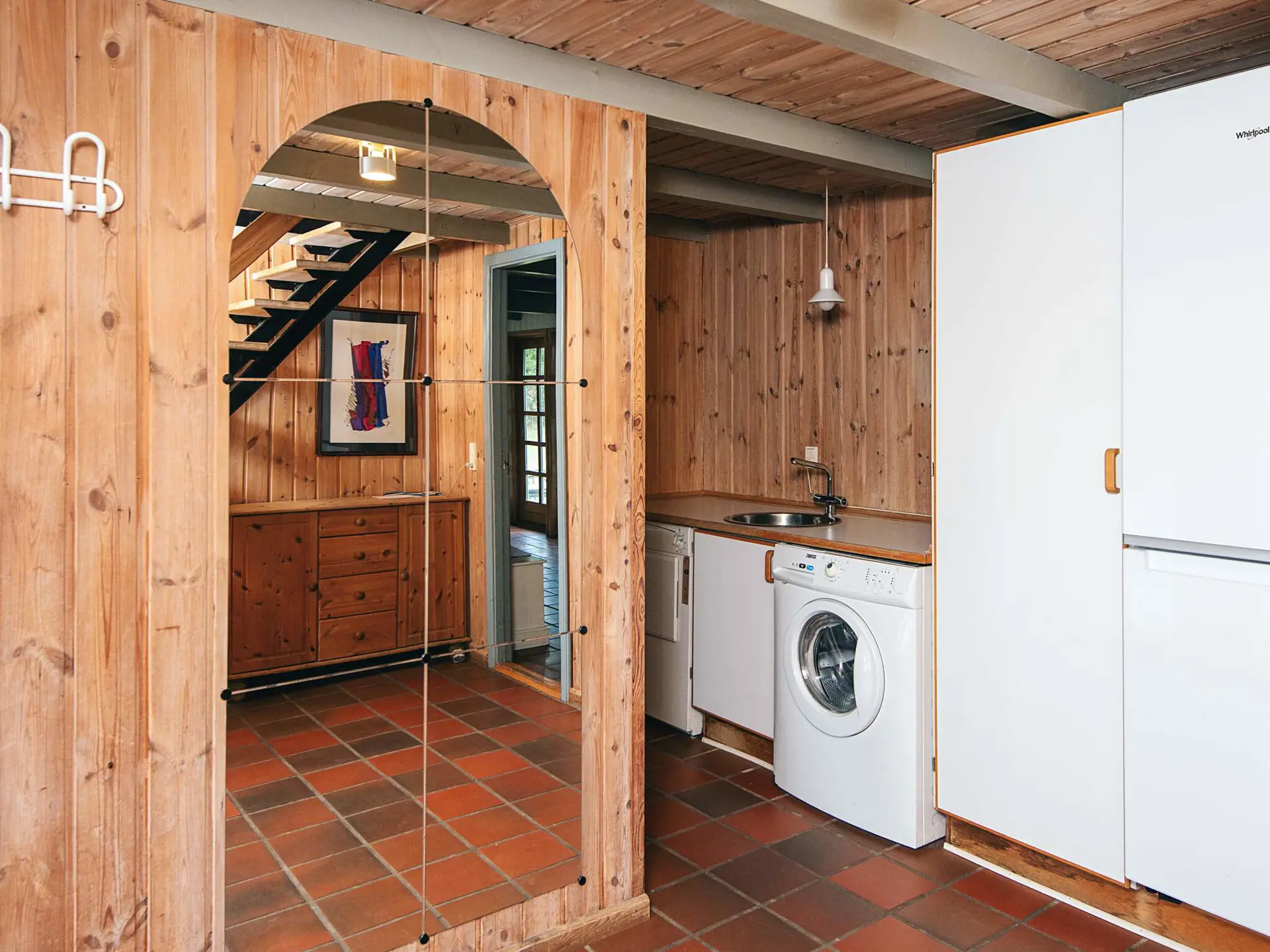 Zur umfassenden Ausstattung des Ferienhauses gehören auch jeweils eine energieeffiziente, klimafreundliche Luft-Luft-Wärmepumpe und Luft-Wasser-Wärmepumpe, freies WLAN und TV mit dänischen und deutschen Sendern. Außerdem stehen vorne am Eingang Waschmaschine und Wäschetrockner bereit. Es gibt zwei Bäder im Parterre, eines davon mit Whirlpool. Die acht Schlafplätze im Parterre sind auf drei Schlafzimmer verteilt.