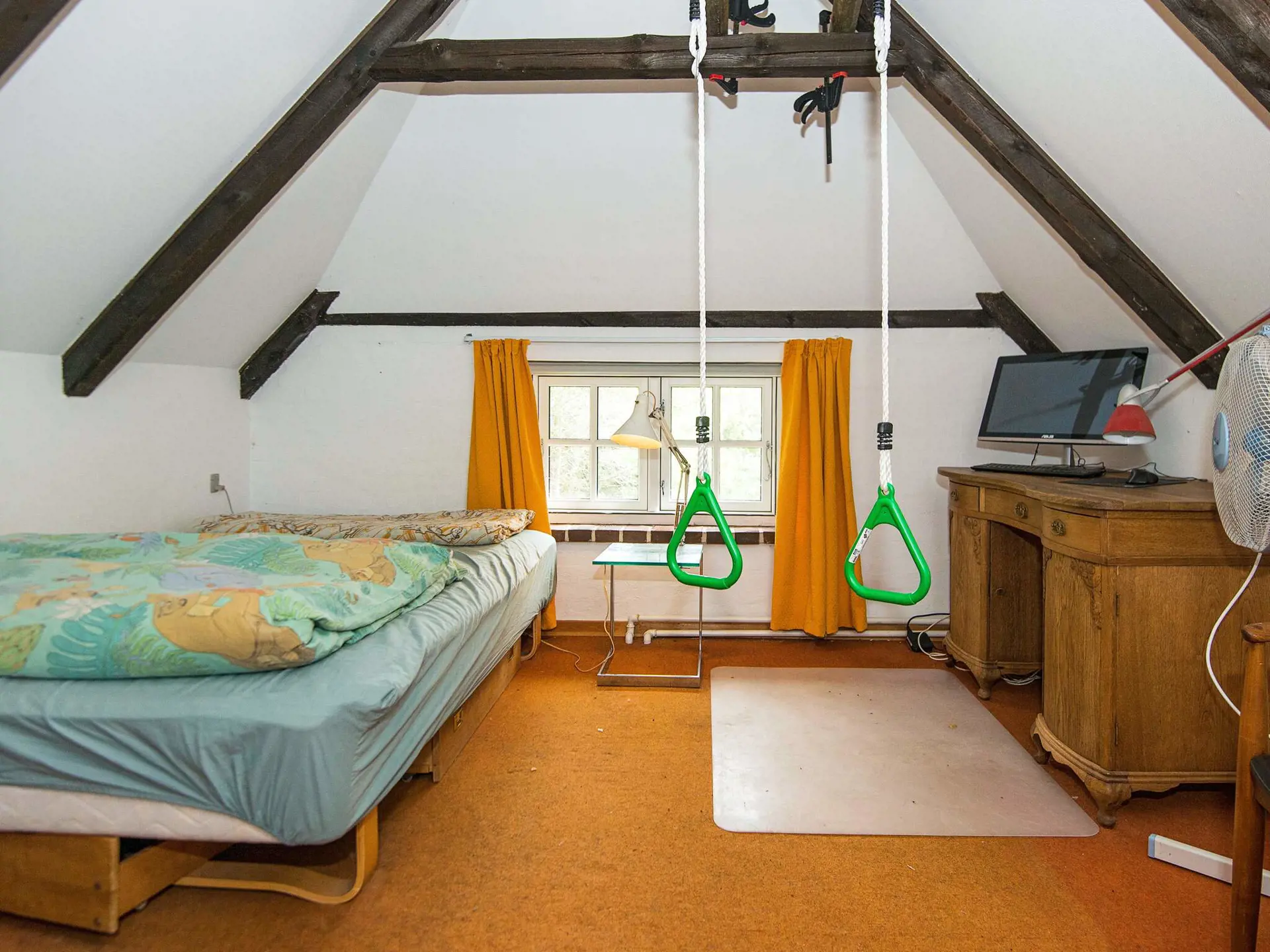 Geräumiges, reetgedecktes Ferienhaus mit Sauna im Bad sowie zwei Wohnebenen. Liegt attraktiv, im Waldgebiet von Vester Husby, auf einem 5.000 m2 großen Naturgrundstück mit Schaukel und Fußballtor für die Kinder.