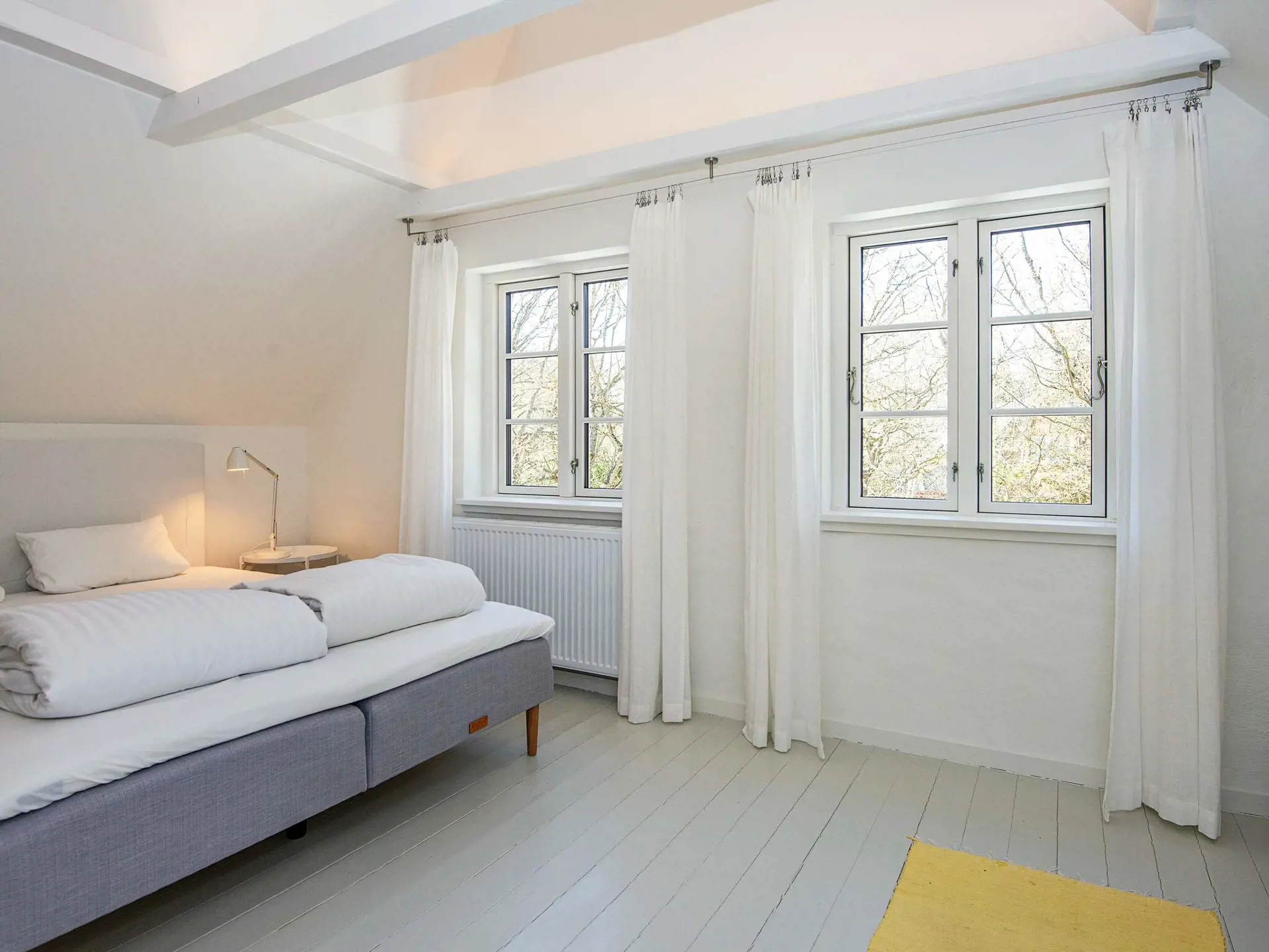 Stadthaus mitten im kleinen Dorf Husby gelegen. Es hat einen offenen Ess- und Wohnbereich im Erdgeschoss, eine Küche sowie ein großes Esszimmer mit Blick in den Garten. Das Badezimmer hat eine Badewanne. Es gibt angenehme Fußbodenheizung im Esszimmer und im Badezimmer. Im Erdgeschoss befindet sich zudem ein Schlafzimmer mit Doppelbett. Oben im Dachgeschoss liegen zwei weiter Schlafzimmer mit großen Doppelbetten und einem zusätzlichen Einzelbett in einem. Waschmaschine und Wäschetrockner am hinteren Eingang des Hauses.