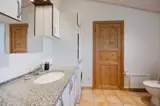 Vier Schlafzimmer stehen euch zur Verfügung: ein Zimmer mit einem Doppelbett, zwei Zimmer mit jeweils einem Einzelbett und ein weiteres Zimmer mit zwei Etagenbetten. Diese Vielfalt bietet jeglichen Komfort für Familien und Gruppen. Das Badezimmer ist mit Fußbodenheizung ausgestattet, die sanfte Wärme spendet und lädt mit einer Sauna und einem Whirlpool zur vollkommenen Entspannung ein. Die Waschmaschine und der Trockner stehen euch im Ferienhaus zur Verfügung um zur Reduzierung eures Reisegepäcks beizutragen.