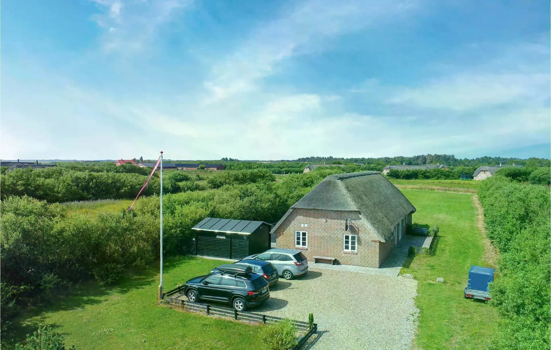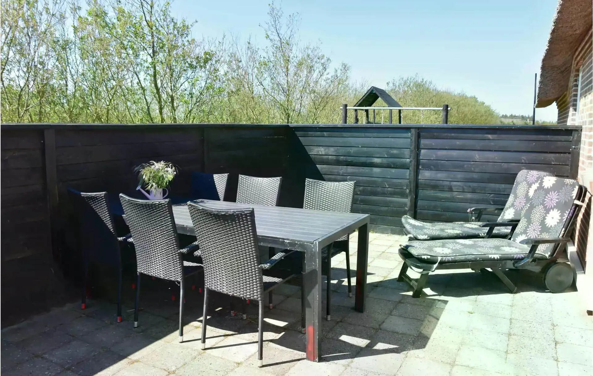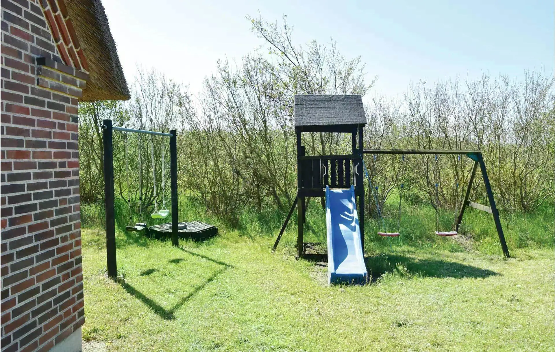 Diese Unterkunft hat eine Fläche von 153 m² und befindet sich auf einem 3.500 m² Grundstück, u.a. mit Schaukel und Sandkasten.