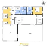 Vom Küchen- und Essbereich hast du direkten Zugang zur großen, geschützten Terrasse, auf der du ungestört die Sonne und den Blick auf die Dünen genießen kannst.