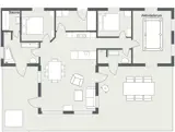 Insgesamt habt ihr 2 Schlafzimmer, beide mit Doppelbett und TV. Sauna, Luxusbadewanne mit Pool-Wärmepumpe und natürlich Fußbodenheizung warten auf euch im großen Wellnessbad. Darüber hinaus gibt es ein weiteres, etwas kleineres Badezimmer.