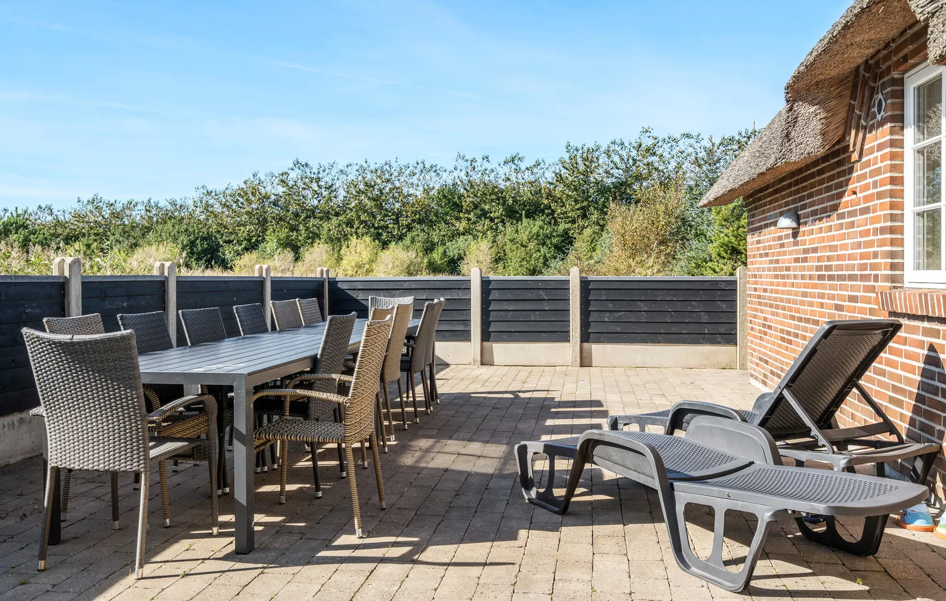 Starten Sie den Tag bei Sonnenschein mit einer Tasse Kaffee auf der Terrasse und genießen Sie den Blick in die Weite. Frühstücken Sie in Ruhe oder schmieden Sie Pläne für Ihren kommenden Urlaubstag, bevor Sie sich bequem auf einer der Sonnenliegen zurücklehnen und in Ihrer Urlaubslektüre schmökern.