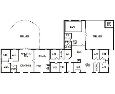 Dieses wunderbare Ferienhaus in Vester Husby ist ideal für einen unvergesslichen Urlaub mit Familie und Freunden. Es verfügt über ein eigenes Badeland mit einem 18m2 großen Pool und Wasserrutsche, sowie eine Sauna und einen Whirlpool für Wellness-Liebhaber. Zwei große Unterhaltungsräume bieten zahlreiche Möglichkeiten zur Freizeitgestaltung, darunter Billard, Tischtennis, Airhockey und Kicker. Zudem gibt es eine Playstation 2 und einen kostenlosen Internetanschluss. Das Haus hat einen offenen Schnitt mit einem Speisesaal, der direkt mit der hochwertigen Küche verbunden ist. Von hier aus gelangt man auf die Terrasse mit Gartenmöbeln und Grill. Trotz der Offenheit des Hauses sorgt ein Kaminofen im Wohnzimmer für Gemütlichkeit. Der große, eingezäunte Garten bietet viel Platz für Spiele. Bitte beachten Sie, dass dieses VillaVilla-Haus nicht an Jugendgruppen vermietet wird.