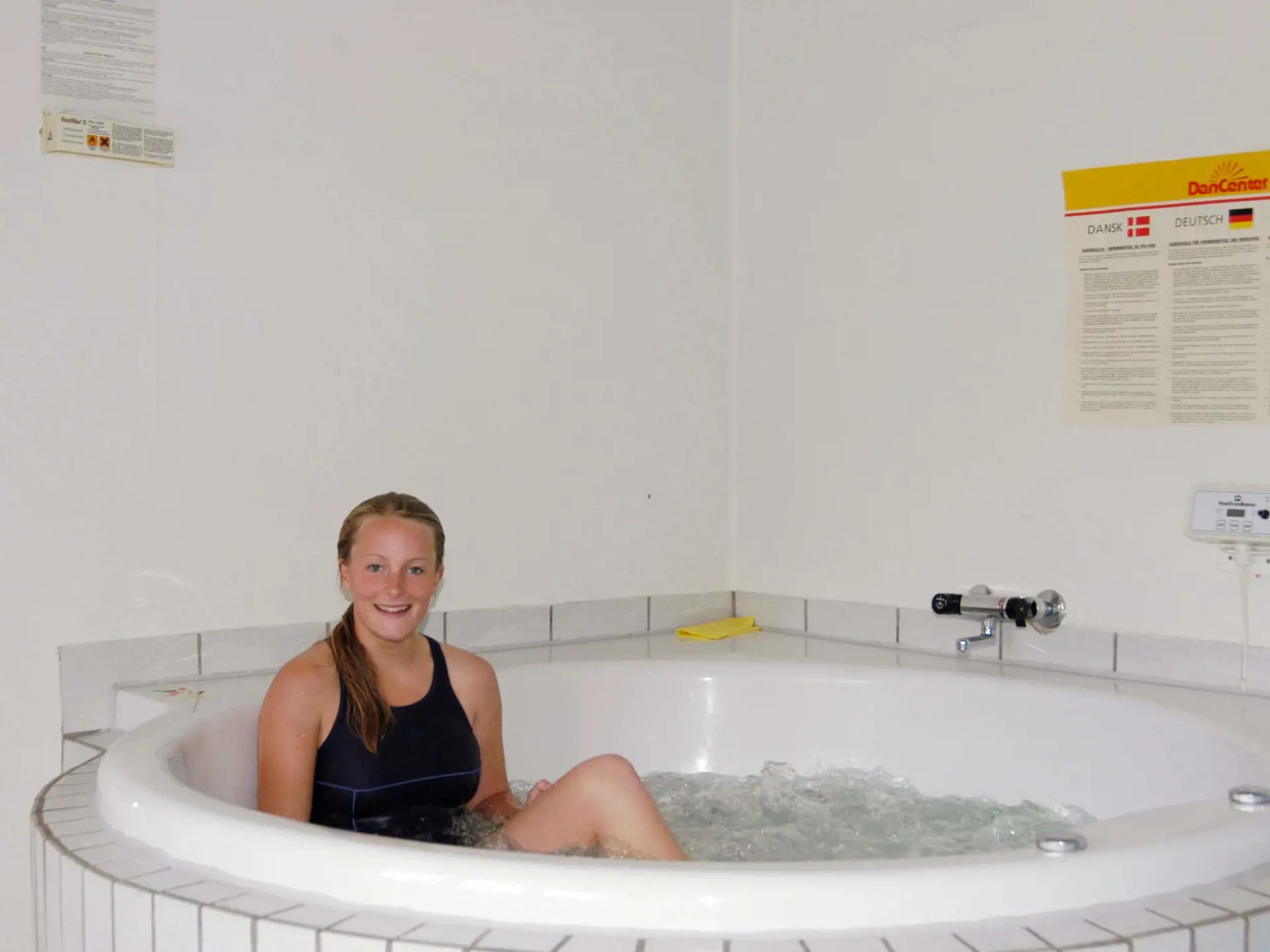 Gut ausgestattetes Ferienhaus mit Poolbereich mit einem 21 m² großen Swimmingpool mit Gegenstromanlage, Rutsche und Kinderpool. Außerdem gibt es hier einen Whirlpool für vier Personen sowie eine Sauna. Der Wohnraum ist mit verschiedenartiger Möblierung eingerichtet und es gibt eine gut ausgestattete Küche mit u.a. einer Mikrowelle und einem Geschirrspüler.