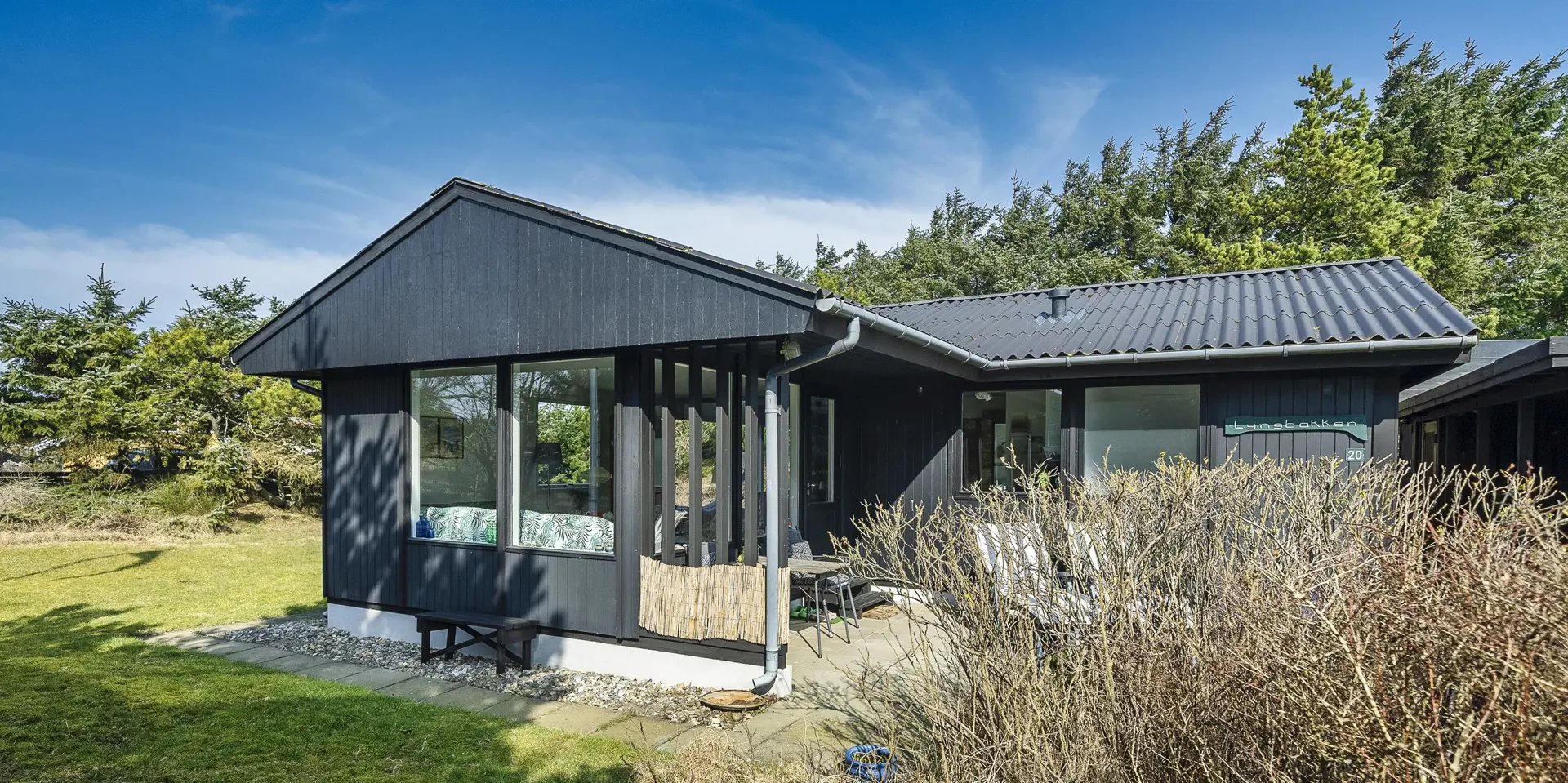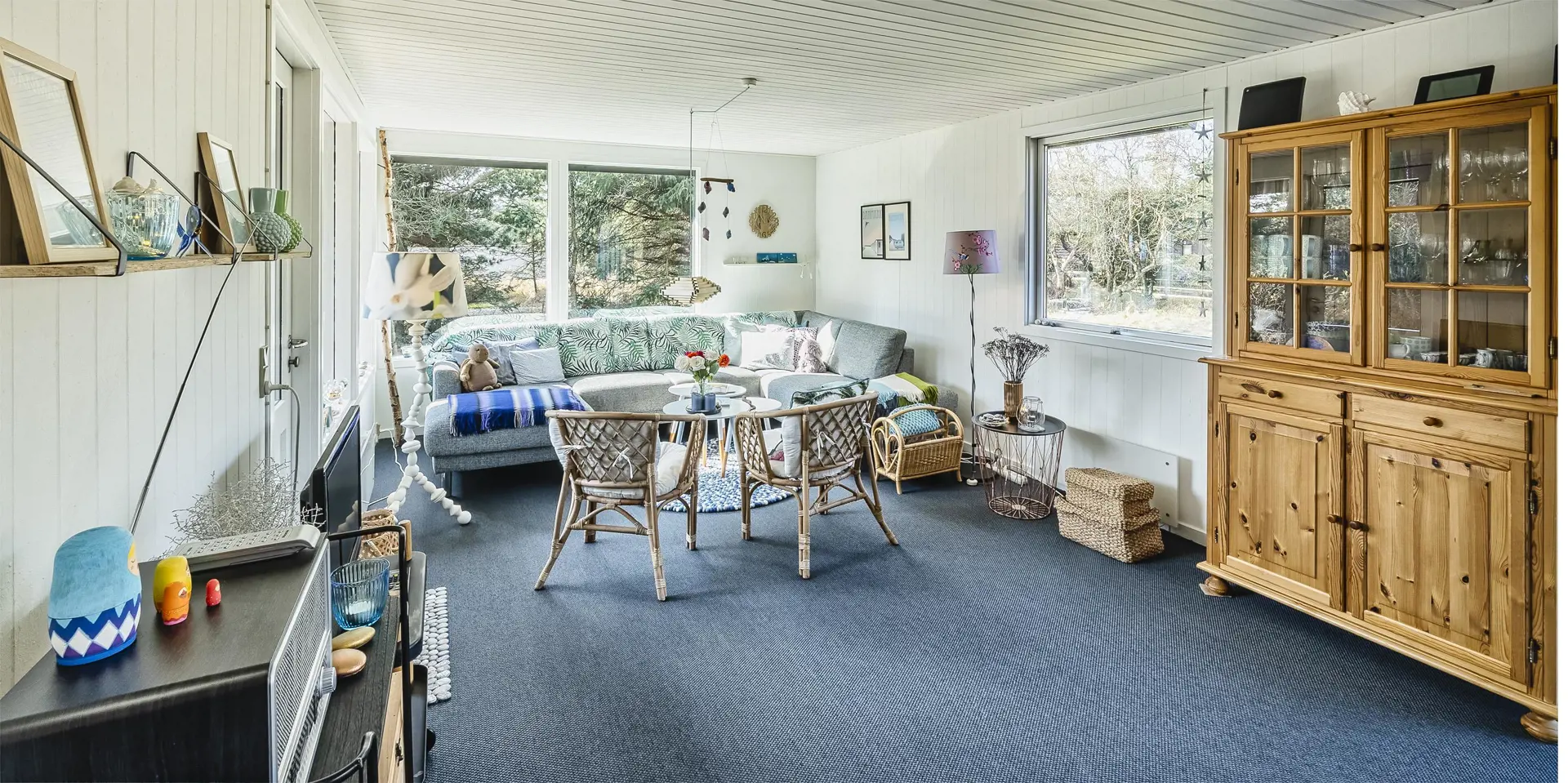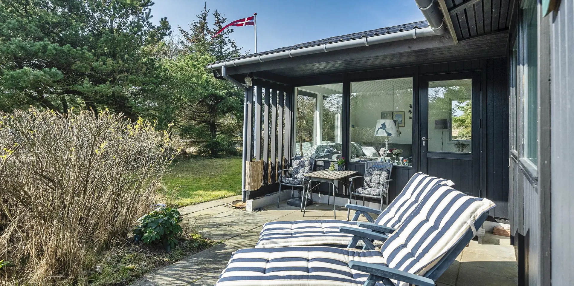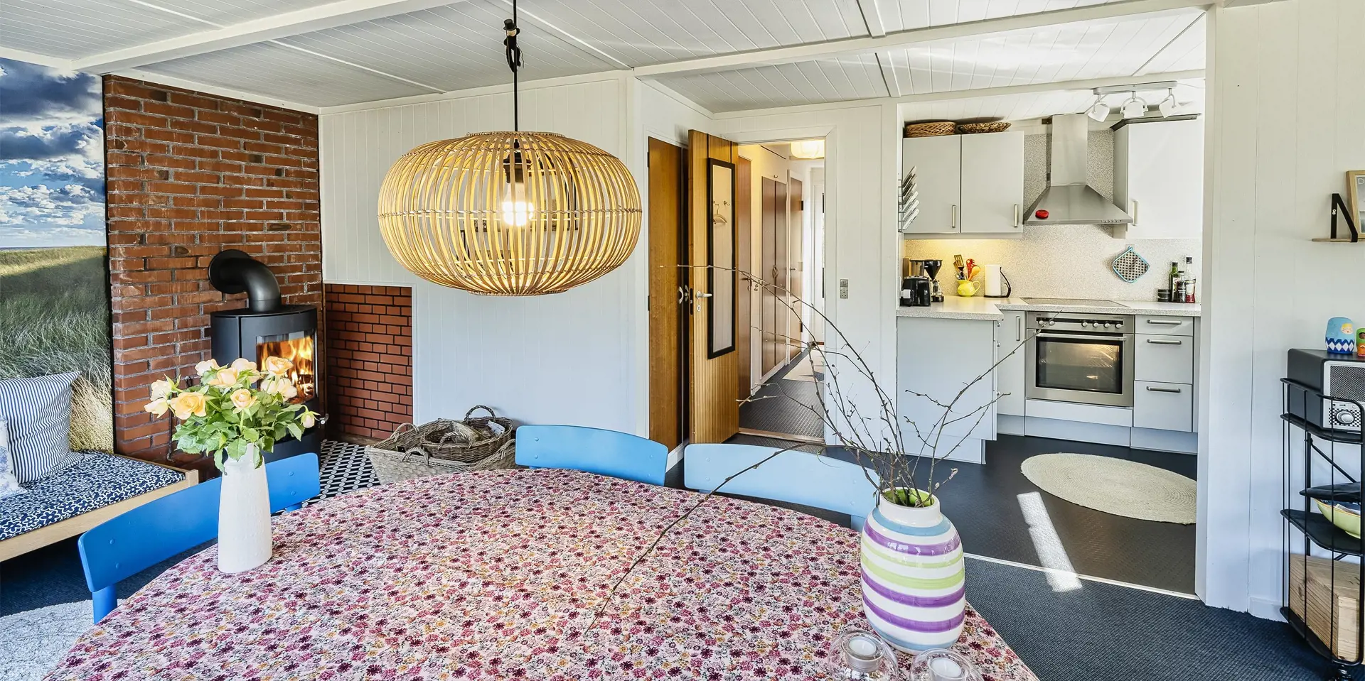 Dieses kleine gemütliche Ferienhaus mit Namen ”Lyngbakken” befindet sich auf einem großzügigem Rasengrundstück. Der Strand ist nur ca. 300 Meter vom Ferienhaus entfernt. Der Strand ist kein Autostrand er ist nur über die Dünenkette zu erreichen. Grærup Strand bietet keine Einkaufsmöglichkeiten, das müsste dann in dem nächsten Ort Vejers Strand erledigt werden. Vejers Strand liegt nur 7 Km von Grærup entfernt. Das Ferienhaus bietet Platz für 4 Personen und ist niedlich eingerichtet. Der Wohn- und Essbereich ist zur Küche hin offen gehalten. In der Wohnecke mit der gemütlichen Rundsitzecke befindet sich das Fernsehgerät mit einem DVD-Player und Chromecast. Das deutsche Fernsehprogramm ist über eine Parabolantenne zu empfangen. In der anderen Ecke ist dann der Essbereich, hier ist auch der Kamin aufgestellt. Dieser spendet eine wohlige Wärme und strahlt eine tolle Gemütlichkeit aus. Durch die große Fensterfront scheint hier viel licht hinein. Gegenüber befindet sich dann der Küchenbereich. Die Küche ist mit einem Herd mit Cerankochfeld, einem Backofen, einer Geschirrspülmaschine, einer Mikrowelle und einem Kühlschrank mit einem kleinen Gefrierfach ausgestattet. Den Gästen stehen zwei Schlafzimmer zur Verfügung: DB + 2B. Das Badezimmer ist mit einem Handwaschbecken und einer Dusche ausgestattet. Das WC ist in einem separaten Raum mit einem Handwaschbecken. Am Ferienhaus befinden sich zwei schöne Terrassenbereiche. Eine der Terrassenbereiche ist sogar teilweise überdacht. Es sind keine Haustiere erlaubt. Das Rauchen im Ferienhaus ist auch nicht erlaubt. Im Ferienhaus befindet sich ein Internetanschluss (W-Lan). Für Ihr Fahrzeug steht ein Carport am Ferienhaus bereit. Das Ferienhaus ist in 1970 erbaut worden und in 2015/2018 wurde es renoviert.