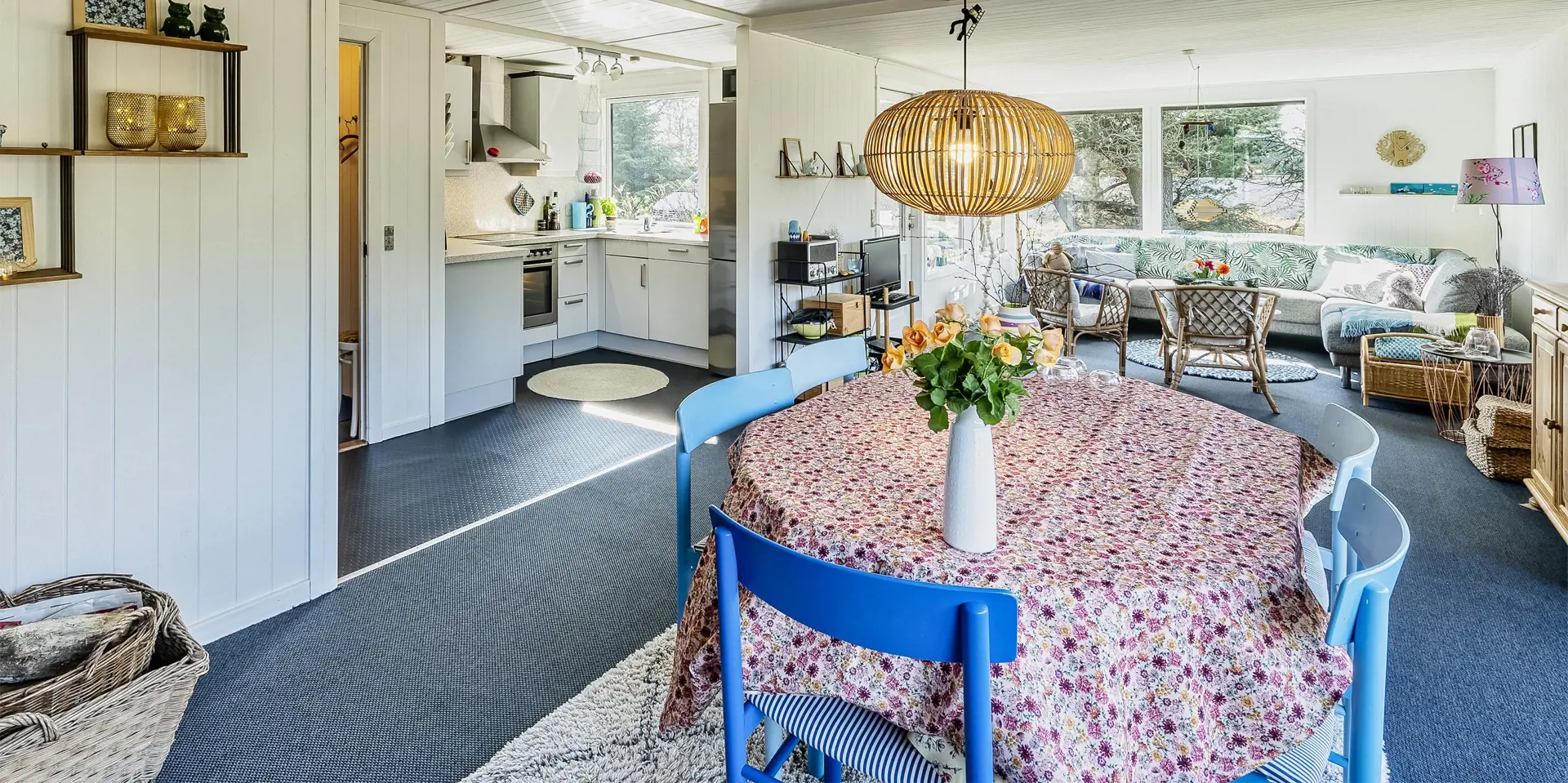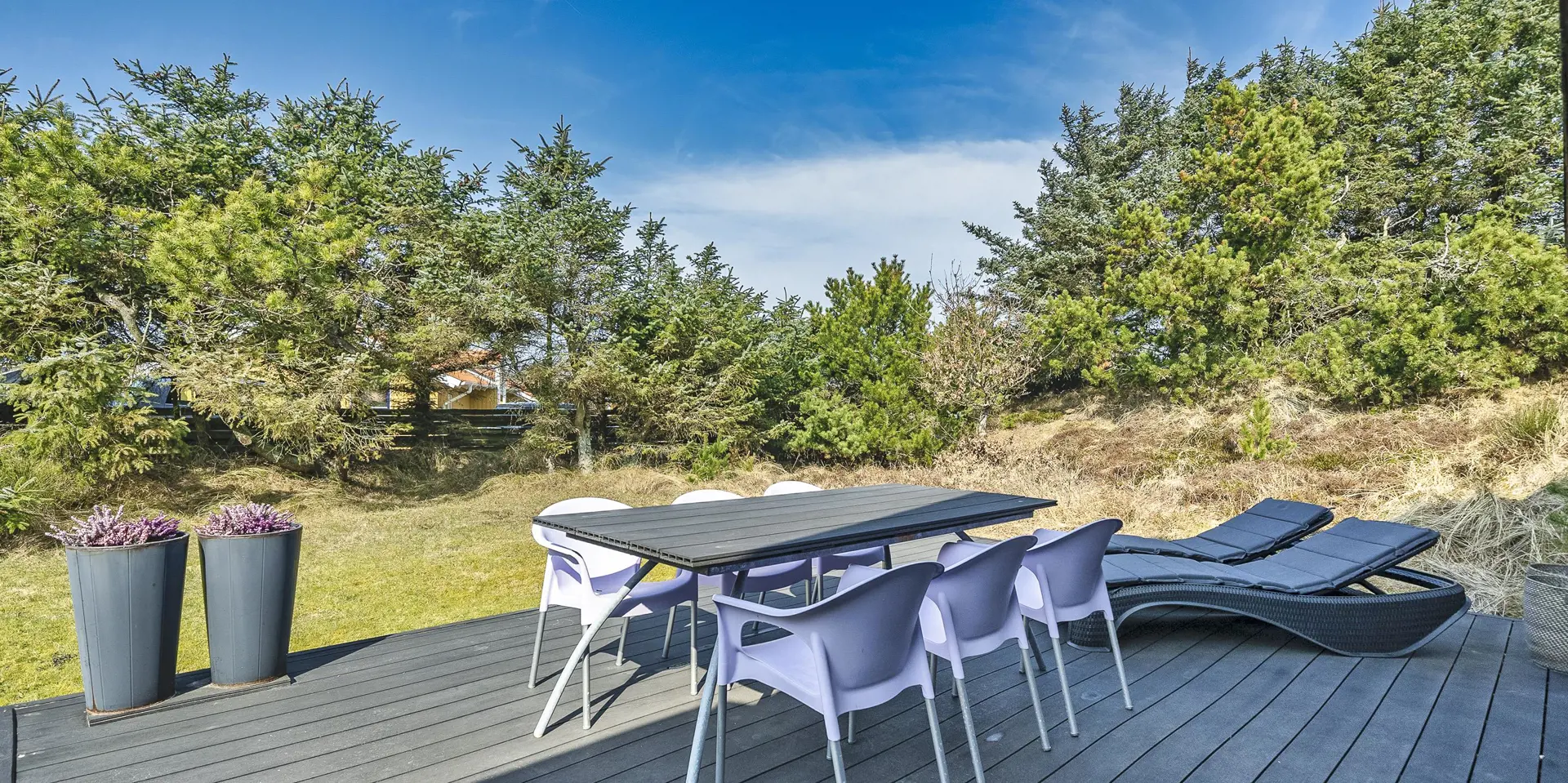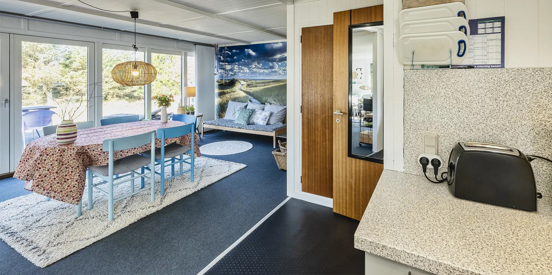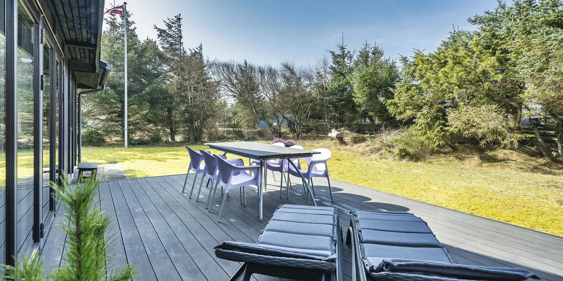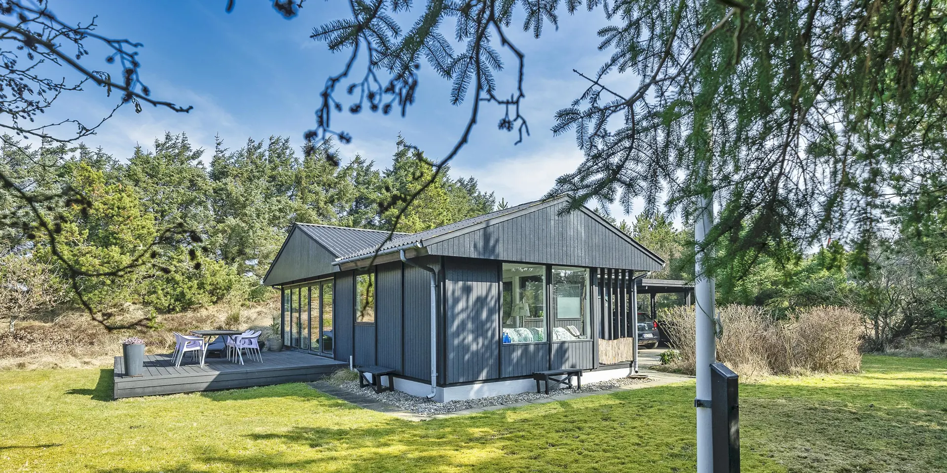 Dieses kleine gemütliche Ferienhaus mit Namen ”Lyngbakken” befindet sich auf einem großzügigem Rasengrundstück. Der Strand ist nur ca. 300 Meter vom Ferienhaus entfernt. Der Strand ist kein Autostrand er ist nur über die Dünenkette zu erreichen. Grærup Strand bietet keine Einkaufsmöglichkeiten, das müsste dann in dem nächsten Ort Vejers Strand erledigt werden. Vejers Strand liegt nur 7 Km von Grærup entfernt. Das Ferienhaus bietet Platz für 4 Personen und ist niedlich eingerichtet. Der Wohn- und Essbereich ist zur Küche hin offen gehalten. In der Wohnecke mit der gemütlichen Rundsitzecke befindet sich das Fernsehgerät mit einem DVD-Player und Chromecast. Das deutsche Fernsehprogramm ist über eine Parabolantenne zu empfangen. In der anderen Ecke ist dann der Essbereich, hier ist auch der Kamin aufgestellt. Dieser spendet eine wohlige Wärme und strahlt eine tolle Gemütlichkeit aus. Durch die große Fensterfront scheint hier viel licht hinein. Gegenüber befindet sich dann der Küchenbereich. Die Küche ist mit einem Herd mit Cerankochfeld, einem Backofen, einer Geschirrspülmaschine, einer Mikrowelle und einem Kühlschrank mit einem kleinen Gefrierfach ausgestattet. Den Gästen stehen zwei Schlafzimmer zur Verfügung: DB + 2B. Das Badezimmer ist mit einem Handwaschbecken und einer Dusche ausgestattet. Das WC ist in einem separaten Raum mit einem Handwaschbecken. Am Ferienhaus befinden sich zwei schöne Terrassenbereiche. Eine der Terrassenbereiche ist sogar teilweise überdacht. Es sind keine Haustiere erlaubt. Das Rauchen im Ferienhaus ist auch nicht erlaubt. Im Ferienhaus befindet sich ein Internetanschluss (W-Lan). Für Ihr Fahrzeug steht ein Carport am Ferienhaus bereit. Das Ferienhaus ist in 1970 erbaut worden und in 2015/2018 wurde es renoviert.