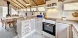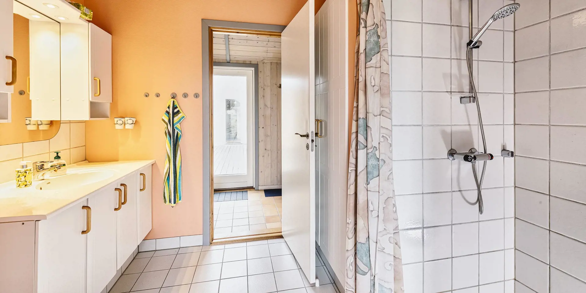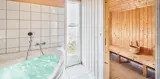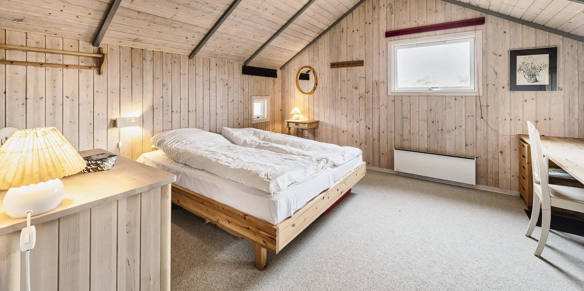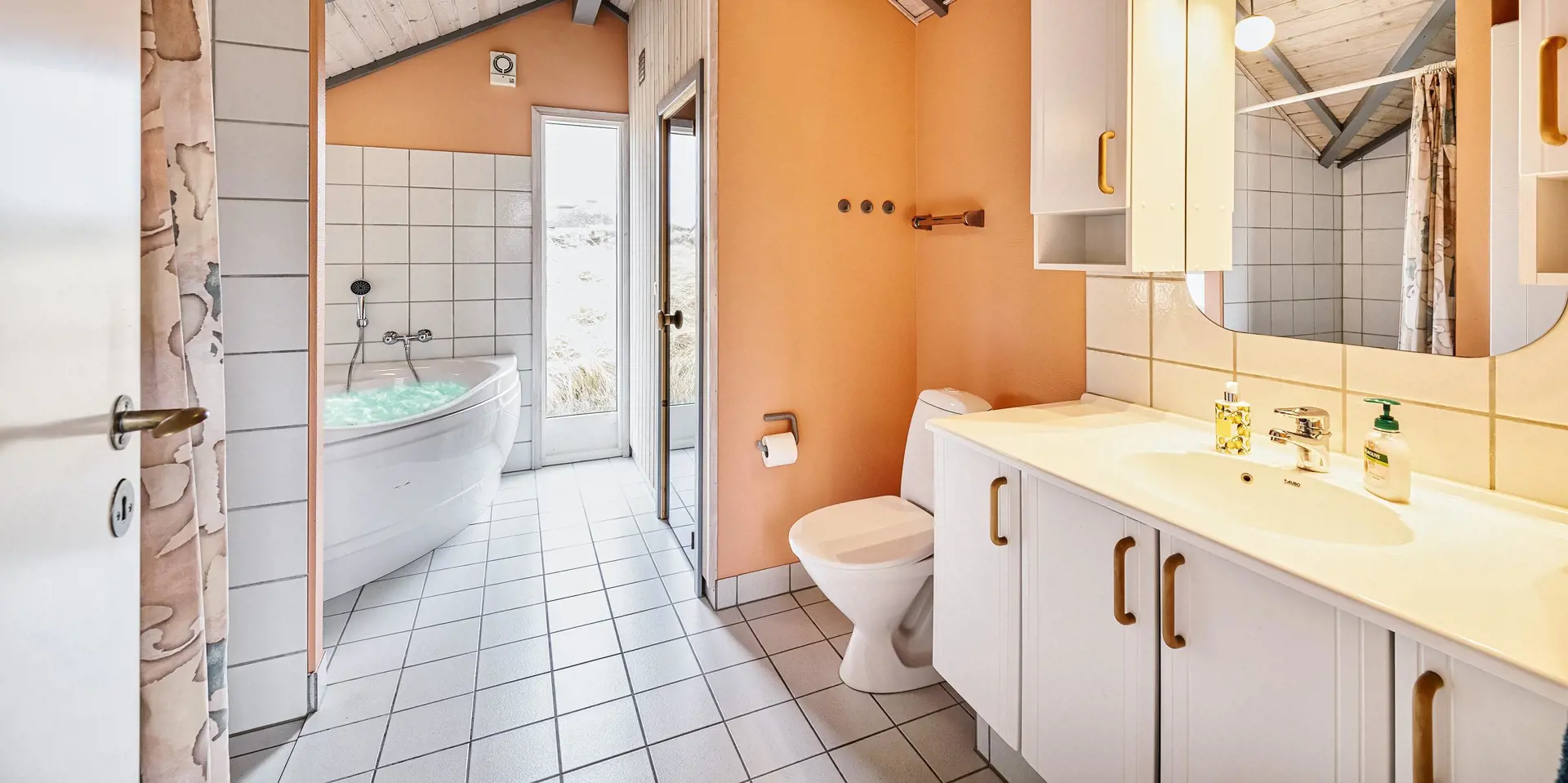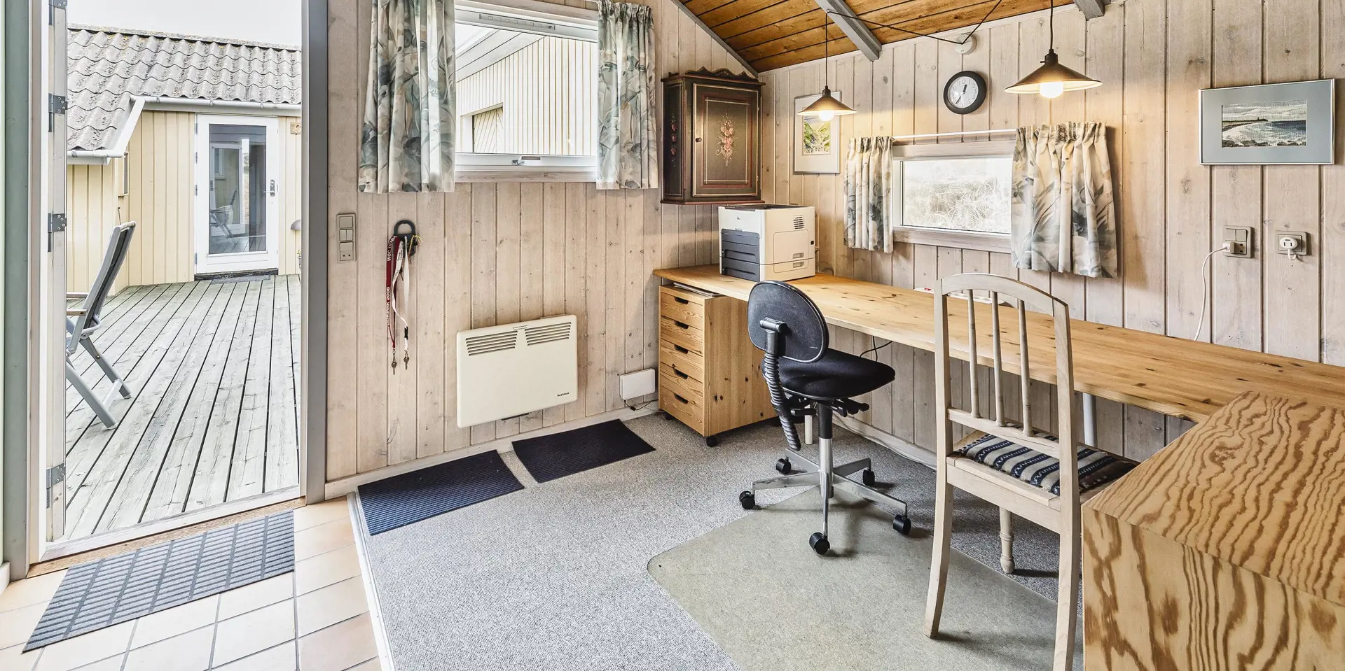Helles und freundliches vom Architekten entworfenes Ferienhaus in Mitten der Dünen und auf einem ca. 3300 qm grossem Grudstück gelegen. Das Gebiet um den Strand von Grærup ist das ganze Jahr über ein fantastisch ruhiges und landschaftlich reizvolles Gebiet mit einer reichen Tierwelt. Es gibt gute Möglichkeiten für Wanderungen und Radtouren, entweder auf markierten Wegen oder auf eigene Faust. Am Eingang zum Grærup Strand befindet sich der Grærup Angelsee, in dem Sie Regenbogenforellen und diverse andere Fische angeln können. Ein Angelschein ist erforderlich und kann in Vejers Strand käuflich erworden werden. Der Strand ist ca. 50 Meter und umbei 5 Minuten fussläufig vom Ferienhaus entfernt. Die Räumlichkeiten des Ferienhauses sind auf zwei Gebäude verteilt. In dem Haupthaus befindet sich das Wohnzimmer mit dem Essbereich, die Küche, ein Schlafzimmer und ein Gäste WC. Hier im Wohn- und Essbereich befindet sich ein Kaminofen, der Ihnen eine angenehme Wärme und Gemütlichkeit spendet. Desweiteren haben Sie einen Ausgang zur Holzterrasse und einen wundervollen Blick über die Terrasse in die Dünen. Das Fernsehprogramm empfangen Sie über ein TV-Paket von BOXER mit dänischen, deutschen, norwegischen und schwedischen Kanälen. Das Ferienhaus verfügt auch über einen Internetanschluss (W-Lan). Die Küche bietet genügend Platz und verfügt über einen Herd mit Cerankochfeld, einem Backofen, einer Geschirrspülmaschine, einer Mikrowelle und einer Kühl- und Gefrierkombination. Vom Küchenbereich haben Sie auch einen Ausgang zu einem Terrassenbereich. Das kleine Gäste-WC verfügt über ein WC und ein Handwaschbecken. Ebenso ist in diesem Gäste-WC die Waschmaschine untergebracht. Dann befindet sich noch ein Schlafzimmer im Haupthaus. Dieses Schlafzimmer verfügt über zwei Einzelbetten, wobei die Matratzen nur aus Schaumstoff bestehen. Es gibt gibt eine kleine Büroecke, wo Sie die Möglichkeit haben sich an einen Schreibtisch zu setzen und zu malen, lesen oder schreiben und zusätzlich befindet sich dort auch ein Drucker, den Sie nutzen können. Über der Zwischenterrasse gelangen Sie dann in den Neubau bzw. das Nebenhaus. Hier haben Sie zwei schöne geräumige Schlafzimmer, einen kleinen Flurbereich und ein großes Badezimmer. Das eine Schlafzimmer ist mit einem Doppelbett und Kleiderschrank ausgestattet. Das zweite Schafzimmer verfügt über drei Einzelbetten. Das große Badezimmer ist mit einer Fußbodenheizung ausgestattet und verfügt über ein WC, ein Handwaschbecken und eine Dusche. Desweiteren befindet sich hier auch der Whirlpool und die Sauna. In dem Flurbereich steht zusätzlich noch eine Kühl- und Gefrierkombination bereit. Das Haus ist von mehreren Terrassen umgeben, auf denen das ganze Jahr über eine geschützte Ecke zu finden ist, von der aus die Natur in vollen Zügen genossen werden kann. Für die Kleinen Gäste befindet sich eine kleine Sandkiste und eine Schaukel auf dem Grundstück. Es ist max. ein Hund erlaubt. Das Rauchen im Ferienhaus ist nicht erlaubt. Das Ferienhaus ist 1984 erbaut worden und in 1997 renoviert. 3 Schlafzimmer: DB + 2B + DB/1B
