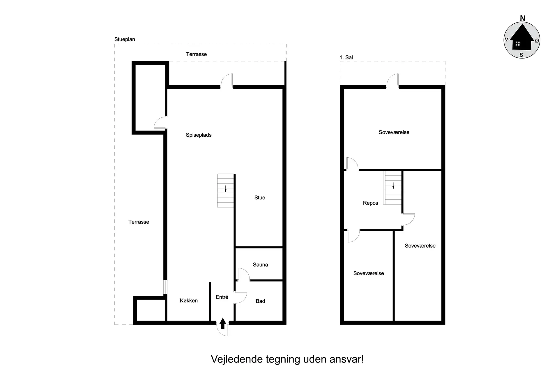 Das Ferienhaus erstreckt sich über zwei Etagen und besticht durch eine durchdachte Raumaufteilung mit viel Licht und gemütlichen Aufenthaltsbereichen. Im Erdgeschoss finden Sie eine rustikale, aber moderne Küche in offener Verbindung mit dem Essbereich – ideal für gemeinsames Kochen und gesellige Mahlzeiten. Von hier aus gelangen Sie direkt auf sonnige Terrassen, wo Sie die frische Meeresbrise genießen können. Das Wohnzimmer lädt zu entspannten Stunden am Kaminofen ein, während die energieeffiziente Wärmepumpe das ganze Jahr über für ein angenehmes Raumklima sorgt.