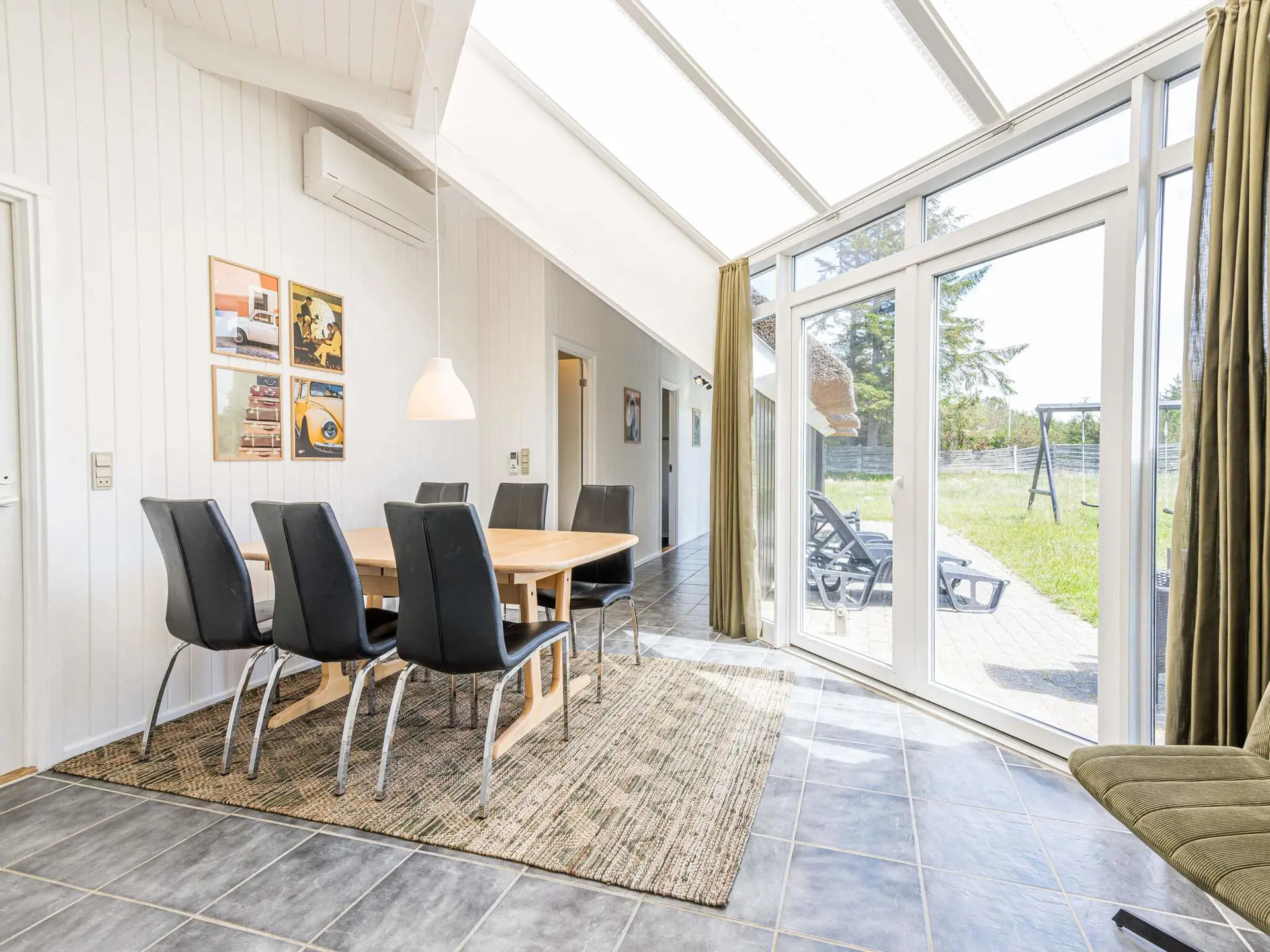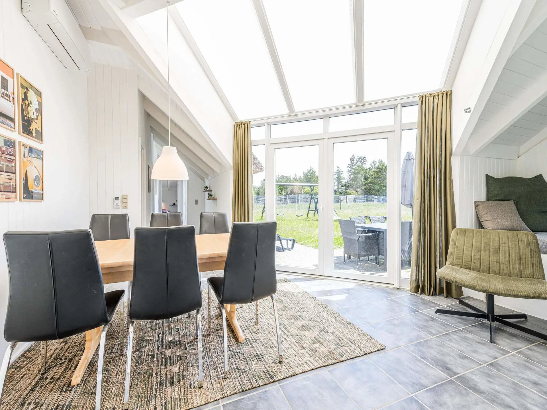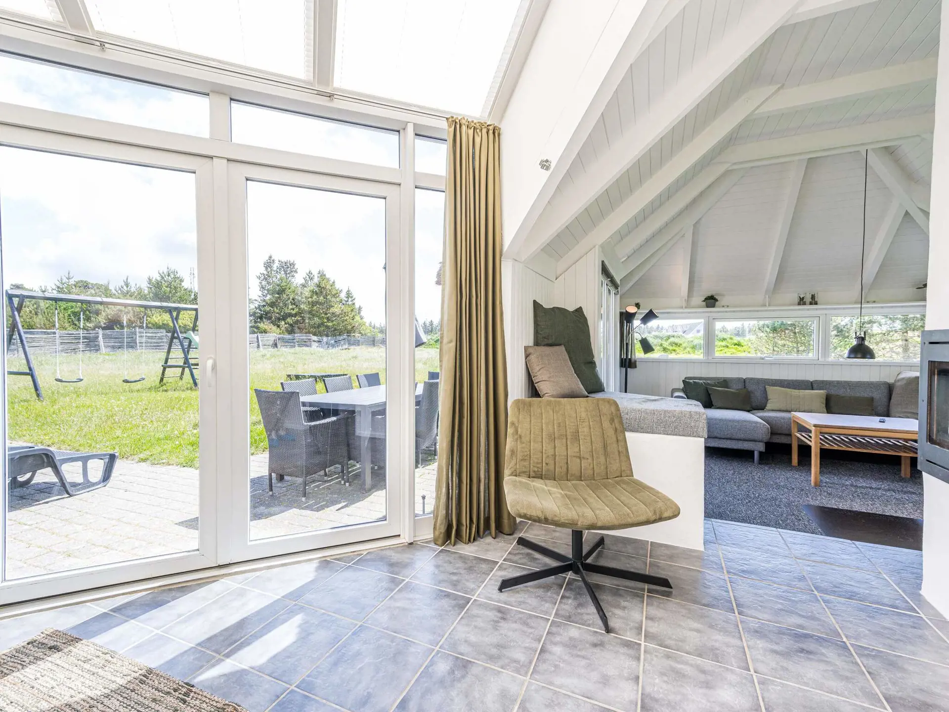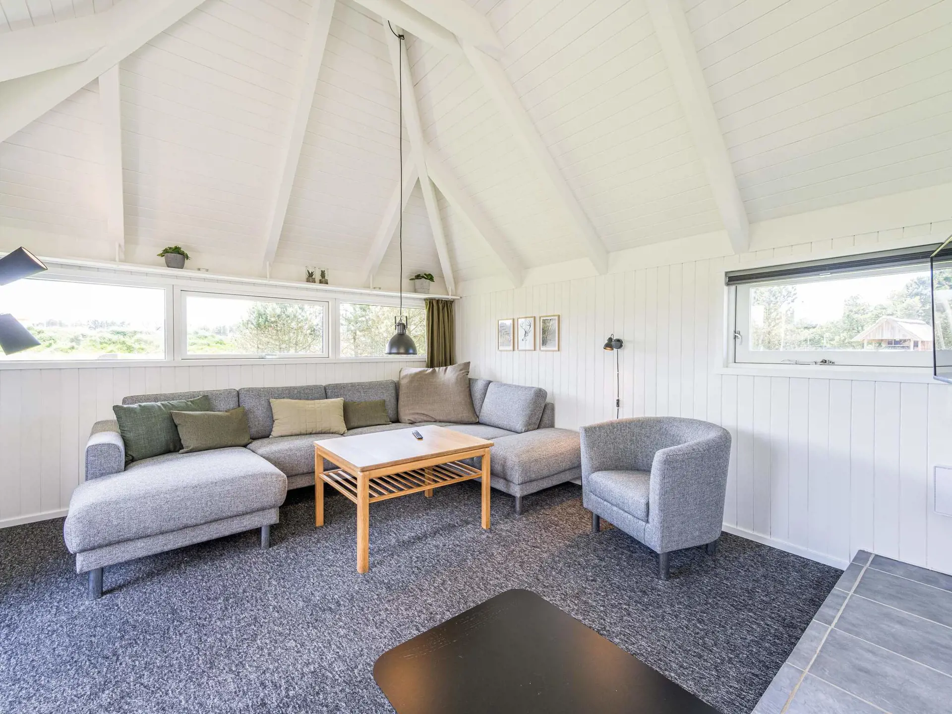 Schönes, helles Ferienhaus bei Vejers Strand und nahe einer der schönsten Strände Dänemarks. Im Haus gibt es ein gemütliches Wohnzimmer mit Holzofen und offener Verbindung zum Essbereich. Von dort erreicht man sowohl die Küche als auch den praktischen Flur, der Zugang zu allen vier Schlafzimmern des Ferienhauses bietet. Mehrere große Fenster sorgen für viel Licht im größten Teil des Hauses und bieten auch reichlich Gelegenheit, das Leben auf der Terrasse oder die auf dem Grundstück spielenden Kinder im Auge zu behalten.