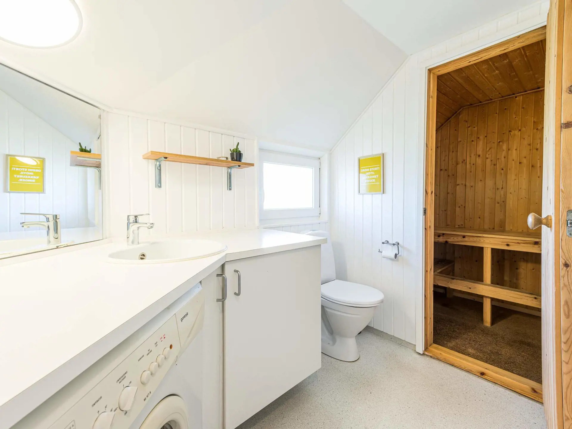 Eine kleine, aber gut ausgestattete Küche, ein Badezimmer mit Sauna und Waschmaschine sowie ein kleiner Vorraum mit Staufläche runden das positive Gesamtbild ab.