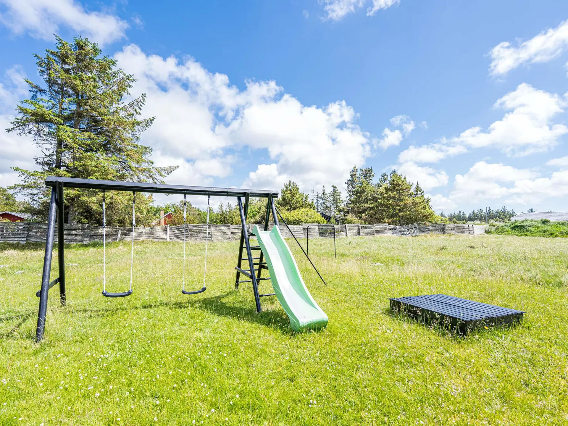 Auf der Terrasse gibt es Gartenmöbel sowie Sonnenliegen und auf dem Grundstück können sich die Kinder mit Schaukel, Rutsche und Sandkasten vergnügen. Sowohl der schöne Badestrand von Vejers Strand als auch das Caféleben und die Einkaufsmöglichkeiten sind zu Fuß erreichbar.