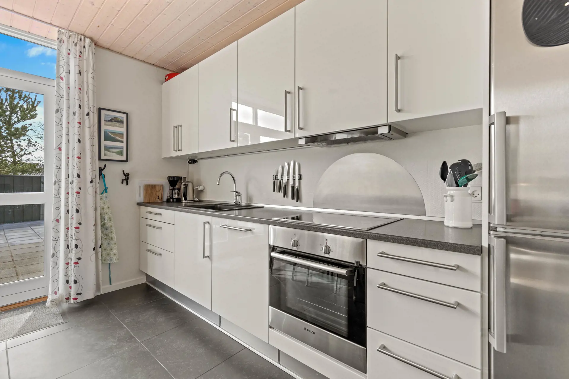 Der gemütliche Wohnraum ist mit der Küche kombiniert, die mit allem ausgestattet ist, was Ihr zum Zubereiten leckerer Ferienmahlzeiten benötigt. Die hellen Farben, kombiniert mit den modernen Möbeln schaffen eine angenehme Atmosphäre, die bei allen Bewohnern für eine entspannte Ferienstimmung sorgt.