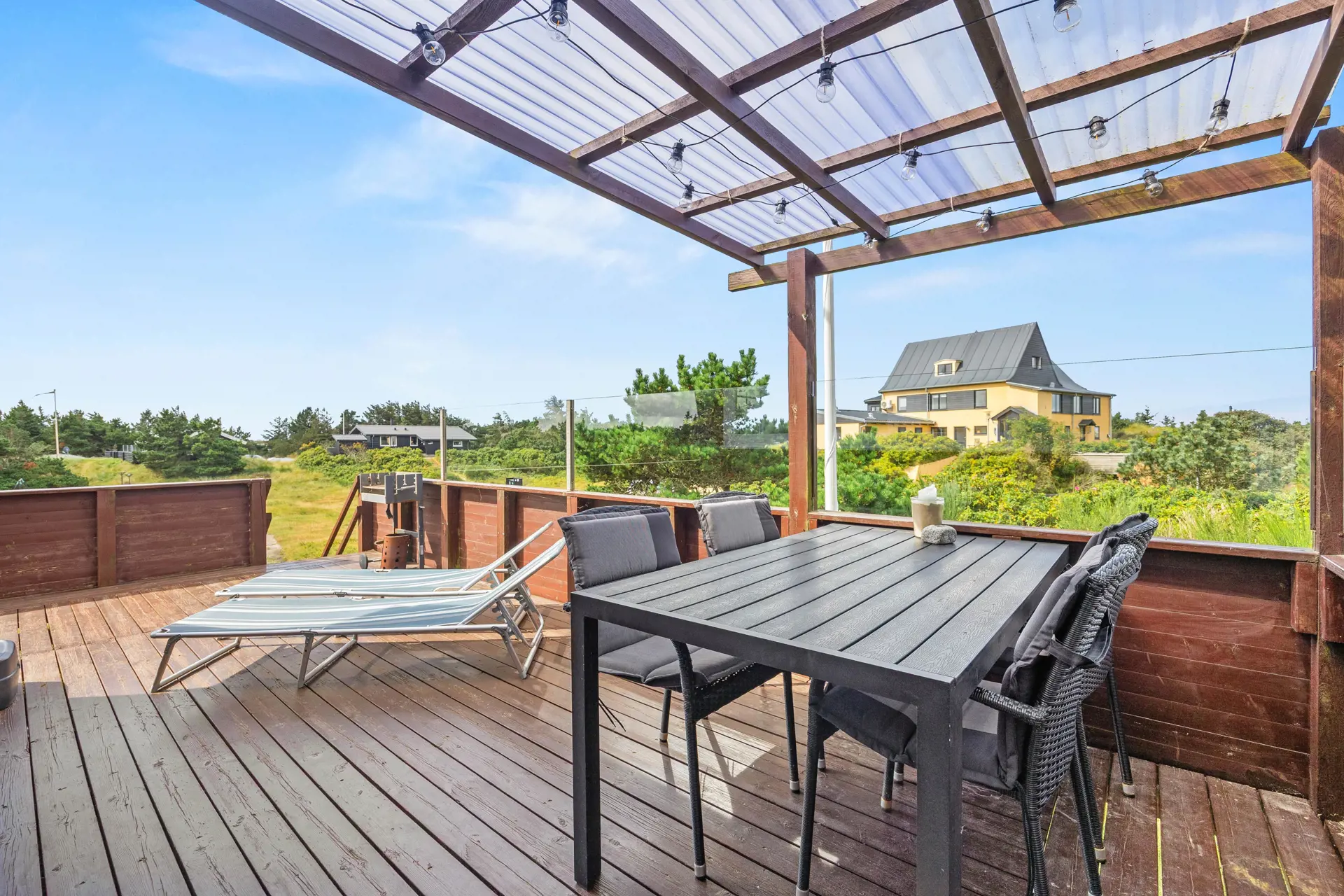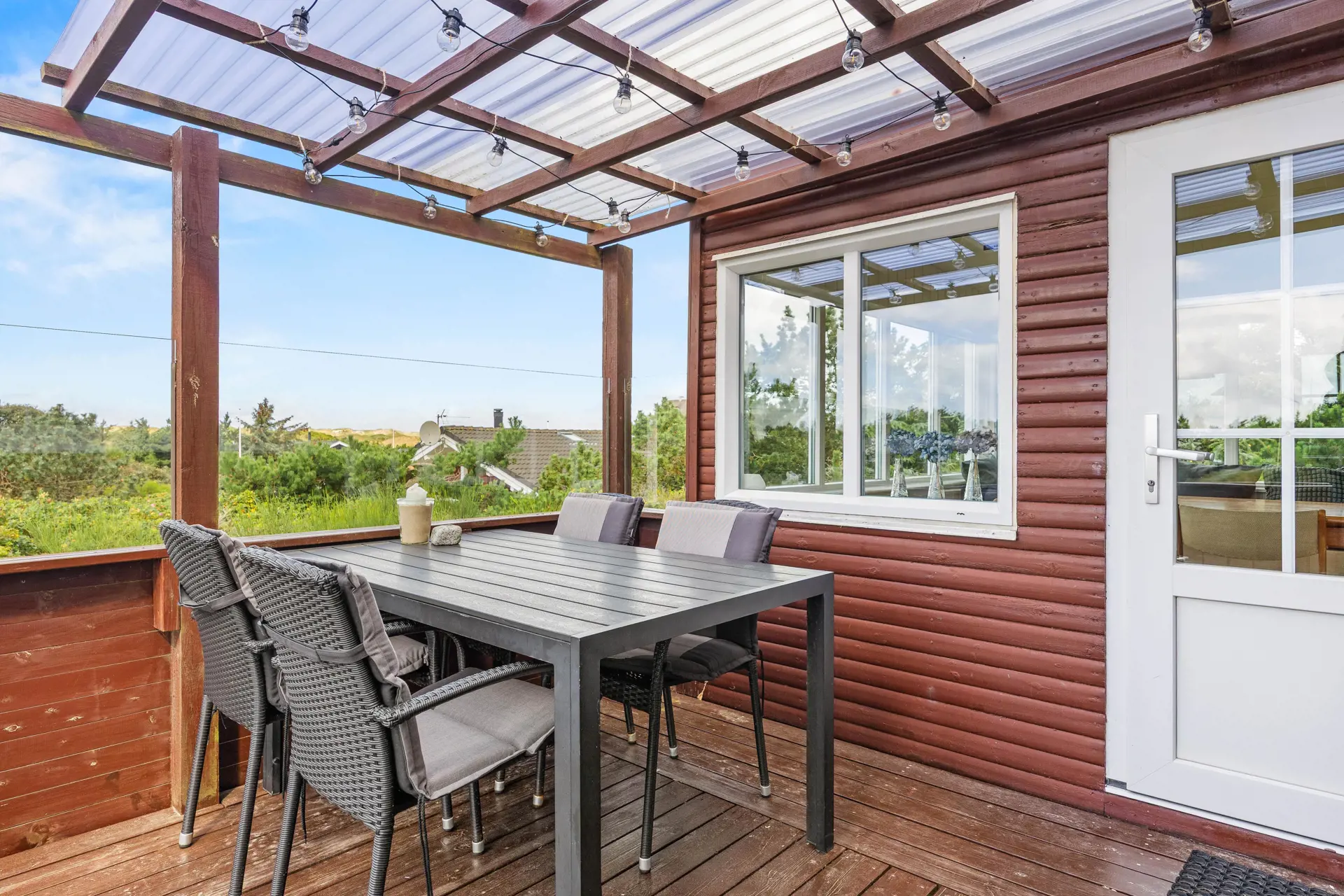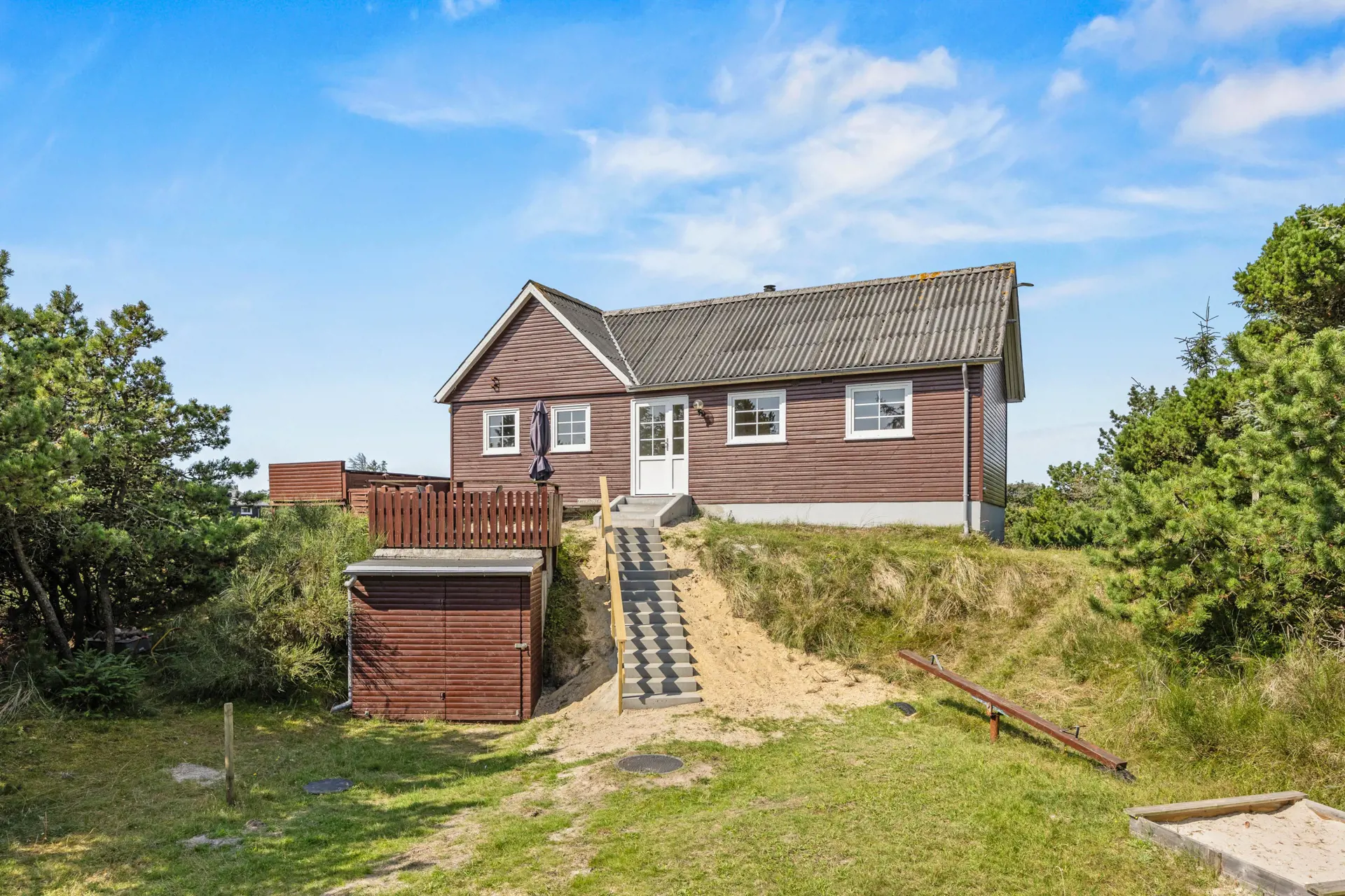 Das Ferienhaus steht auf einem großzügigen Naturgrundstück in typisch westjütländischer Umgebung. Auf der Terrasse könnt ihr die Sonne genießen, grillen oder euch einfach eine Auszeit nehmen. Die Lage ist windgeschützt und bietet sowohl Rückzugsorte als auch Platz zum Spielen für Kinder. Der breite Nordseestrand ist nur rund 300 Meter entfernt und in wenigen Minuten zu Fuß erreichbar. Auch Einkaufsmöglichkeiten und gemütliche Cafés findet ihr in etwa 300 Metern Entfernung – ideal für einen entspannten Ferienalltag ohne lange Wege.