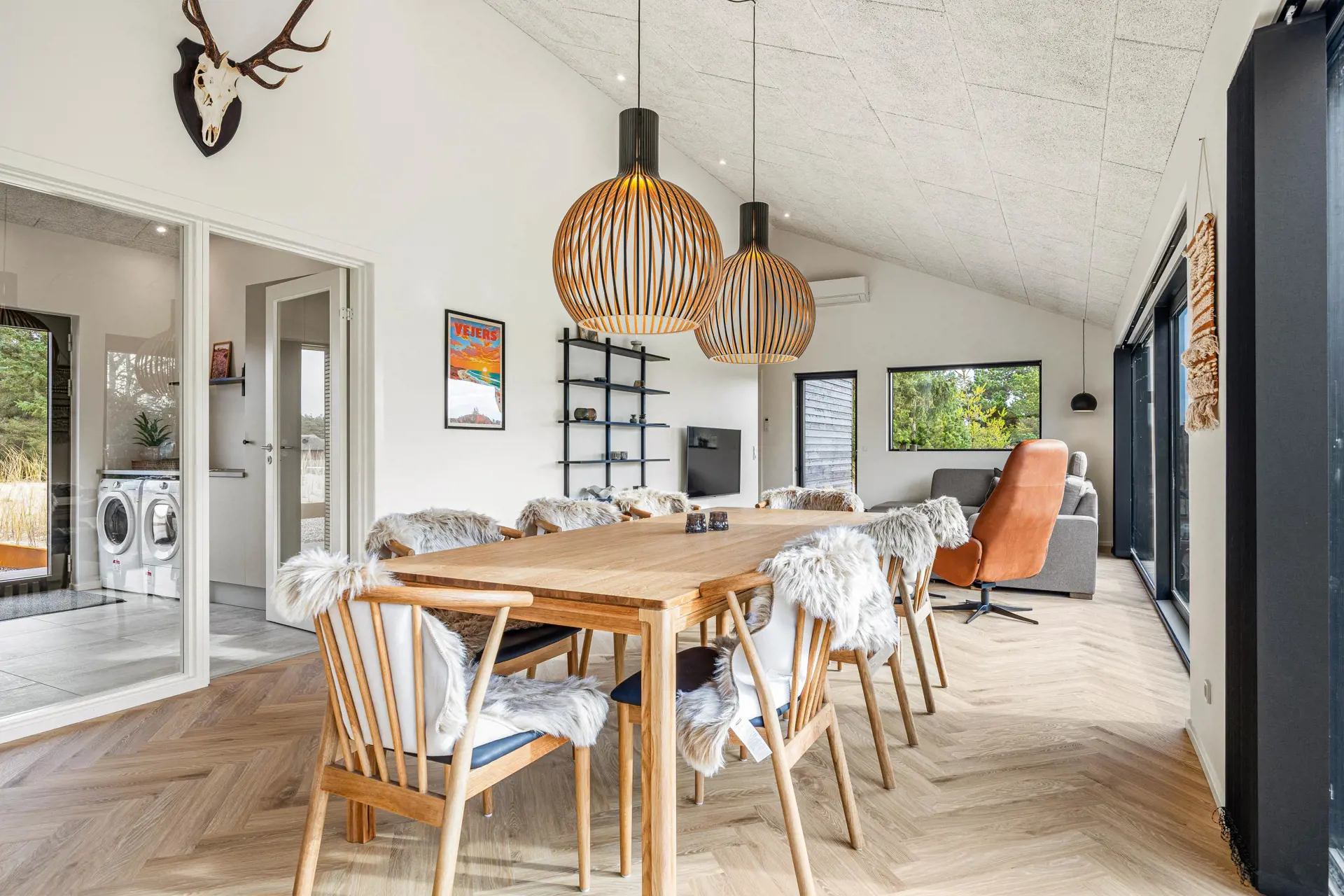 Euch erwartet ein Ferienhaus, das Komfort mit Nachhaltigkeit verbindet. Ausgestattet mit einer modernen Luft-Wasser-Wärmepumpe, Fußbodenheizung in den Bädern und einem Ladeanschluss für euer E-Auto, könnt ihr eure Ferien umweltbewusst genießen. Der lichtdurchflutete Wohnraum öffnet sich zu beiden Terrassen und schafft eine harmonische Verbindung zwischen Innen- und Außenbereich. Das eindrucksvolle Eingangsdesign mit Waschmaschine und Trockner und großzügige Tageslicht in den Wohnräumen tragen zu eurem Wohlfühl-Erlebnis bei.