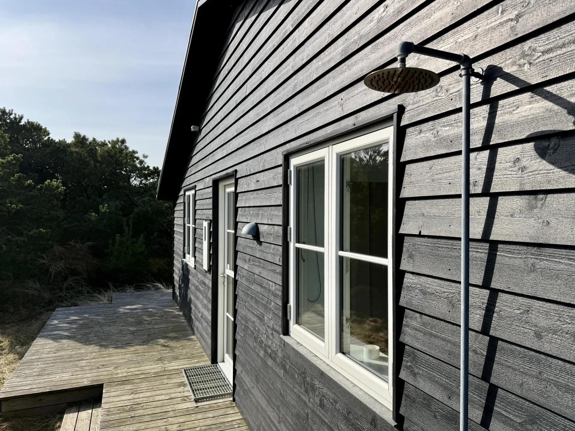 Draußen erwartet euch ein großes Klitgrundstück von 2500 m2, und die abgeschirmte Lage inmitten der Dünen vermittelt ein besonderes Gefühl der Nähe zur Natur. Hier könnt ihr das Leben im Freien auf der offenen Terrasse genießen, wenn die Sonne hoch steht, oder sich auf die überdachte Terrasse zurückziehen, wenn der Tau fällt oder der Wind auffrischt. Entzündet den Außenkamin an langen Sommerabenden mit gutem Grillessen und entspannter Atmosphäre, während Kinder und Erwachsene Platz zum Spielen, Entspannen und für kleine Pausen im Windschatten finden.