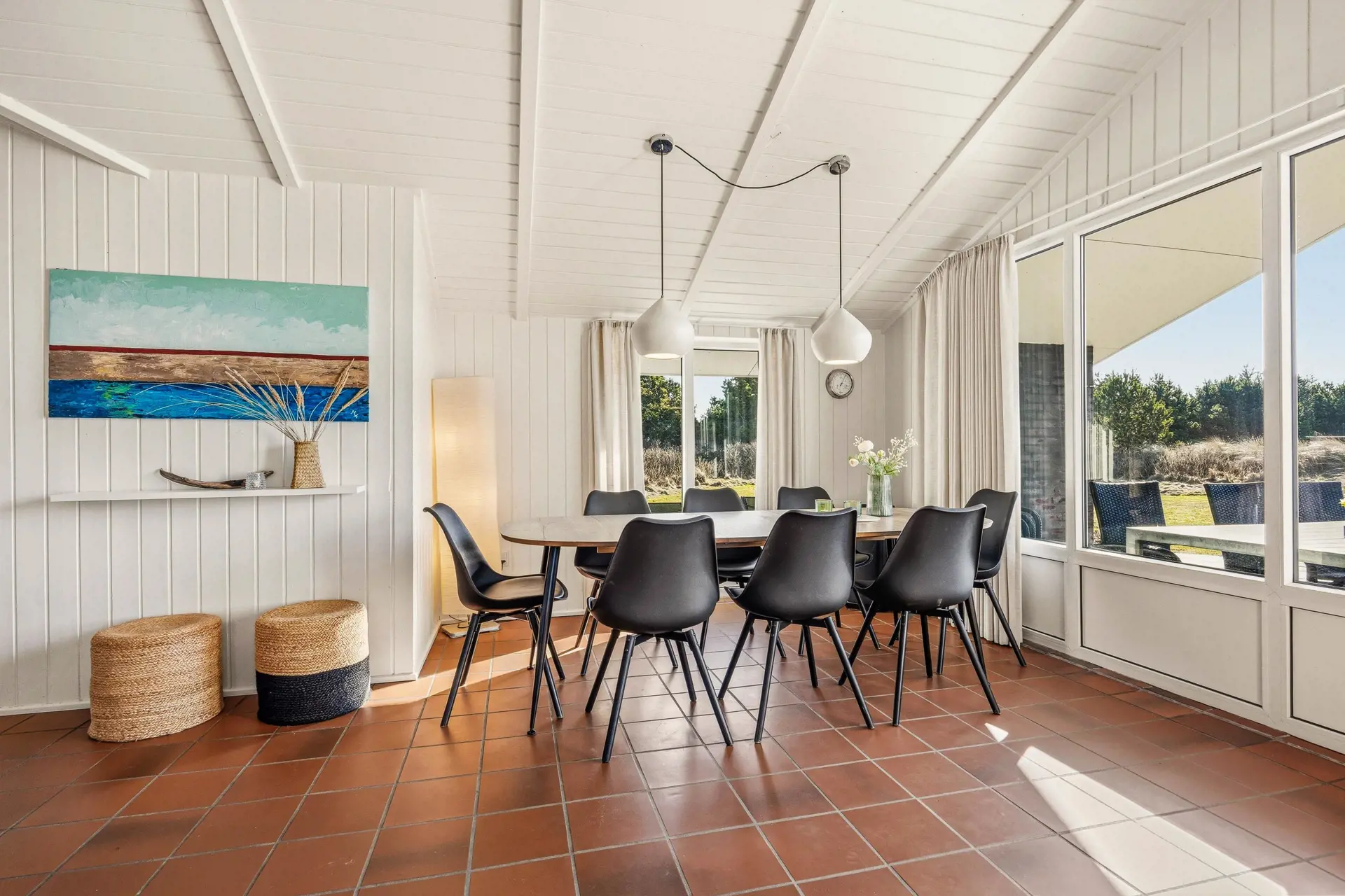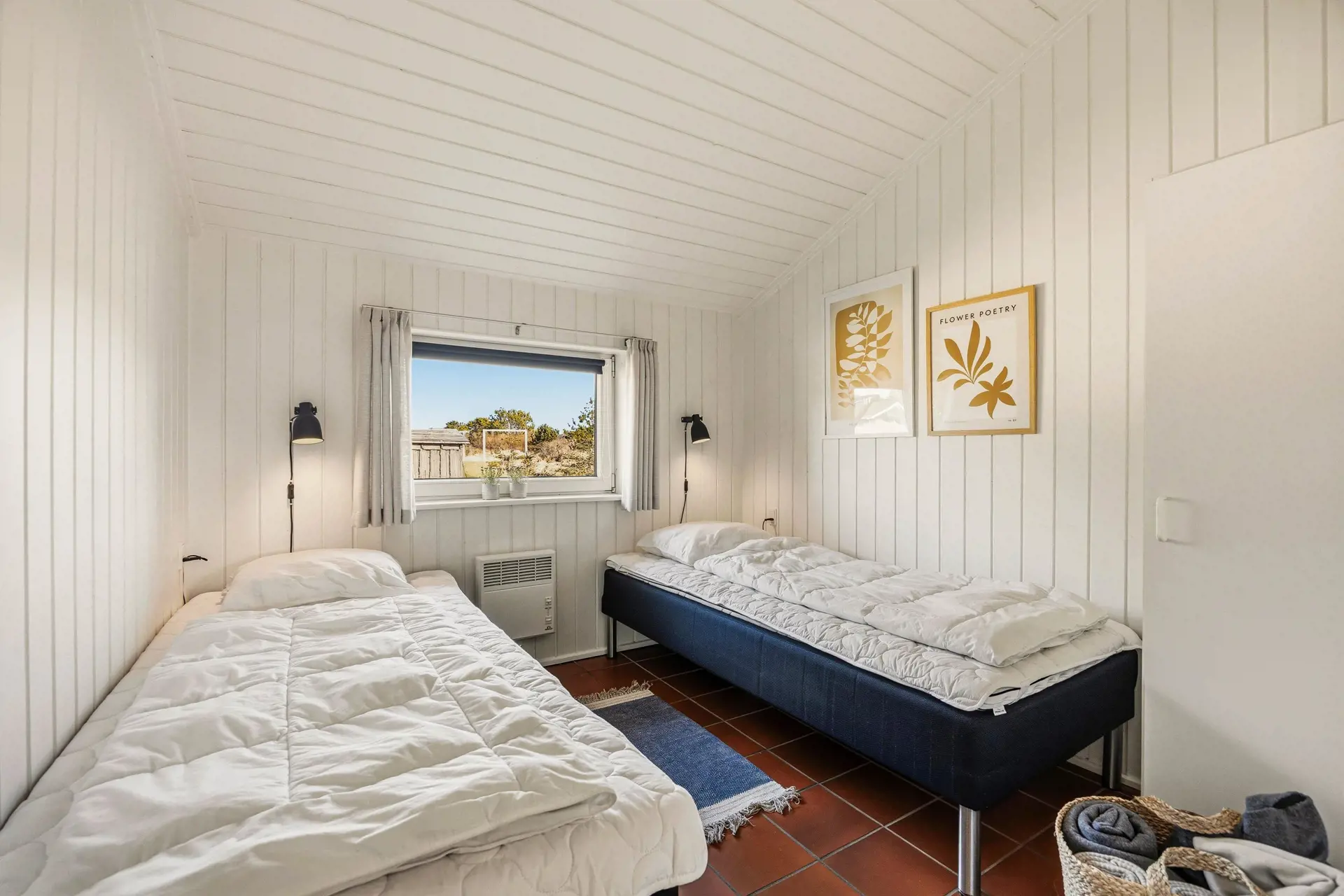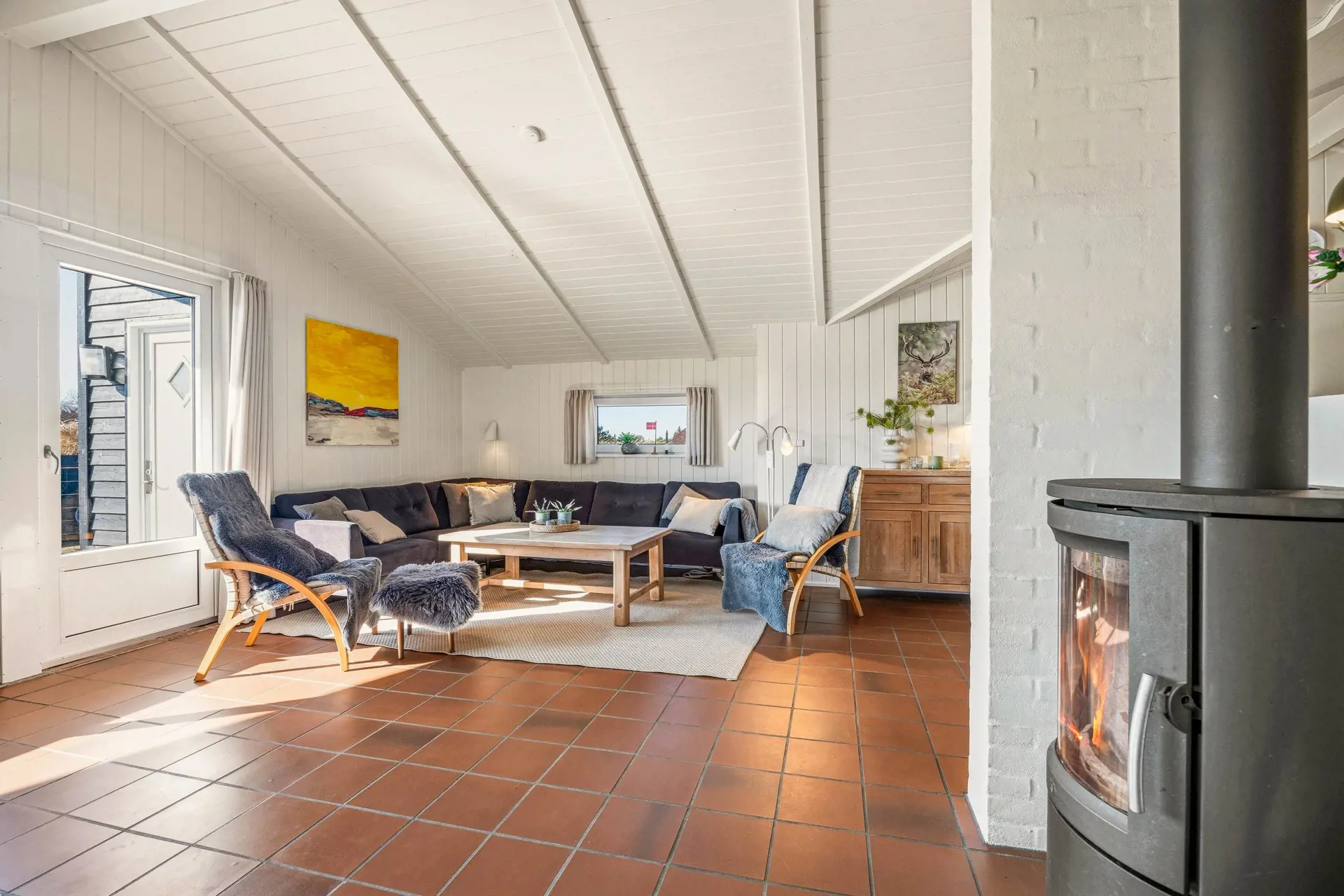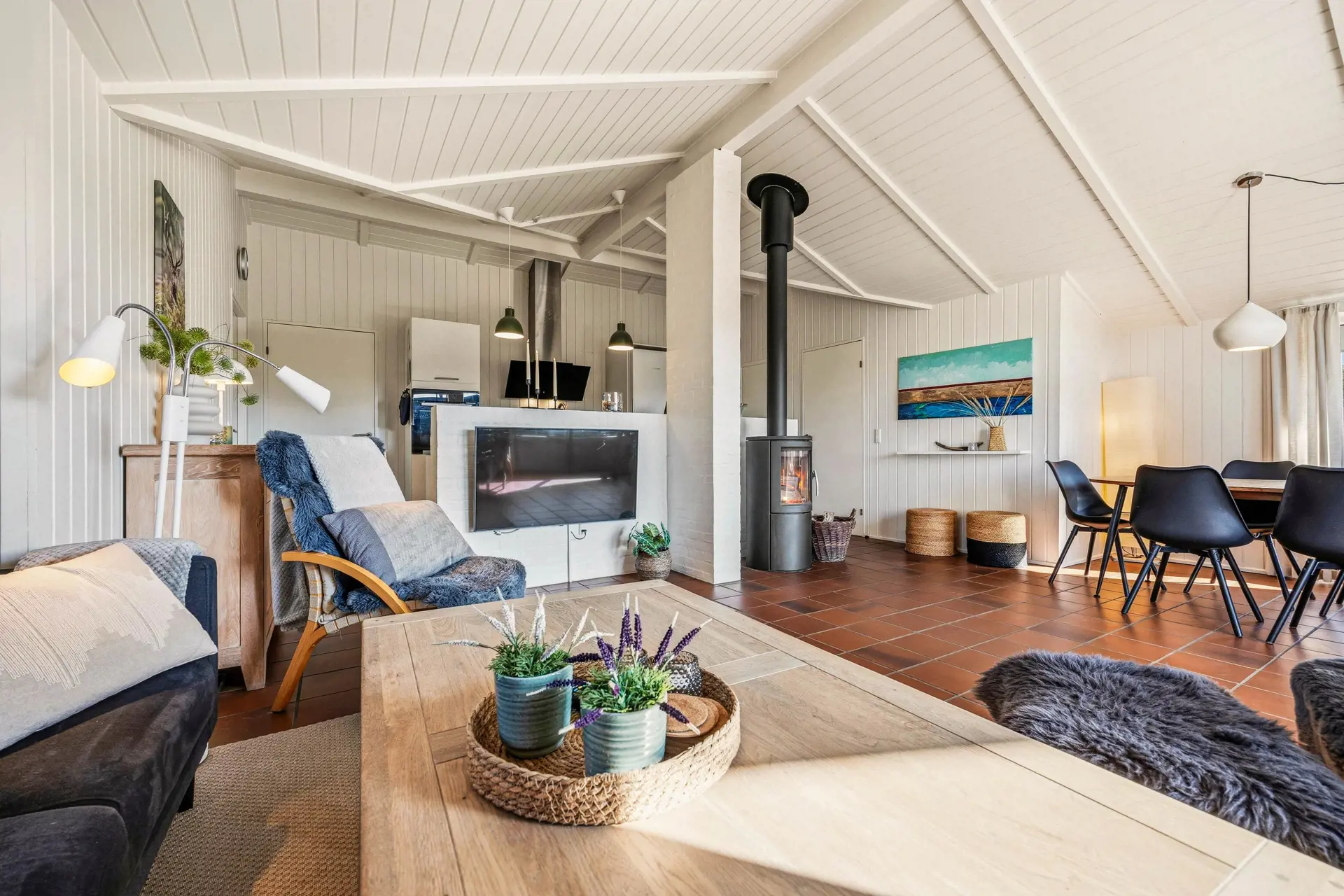 Das Ferienhaus ist mit 4 Schlafzimmern eingerichtet, sodass ihr euch gut verteilen und Privatsphäre genießen könnt, wenn der Tag sich dem Ende zuneigt. Es gibt 2 Doppelbetten und 4 Einzelbetten, was es ideal für Familien mit Kindern, Freundesgruppen und mehrere Generationen macht. Drinnen sorgt der Kaminofen an kühlen Abenden für eine besonders gemütliche Atmosphäre, während eine Luft-Luft-Wärmepumpe das ganze Jahr über für angenehme Temperaturen sorgt. Nach einem langen Tag am Strand könnt ihr das Tempo drosseln und genießen, dass das Haus hell und einladend wirkt und viel Platz zum Zusammensein bietet.