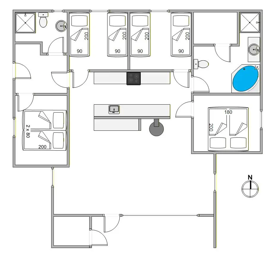 Hier erhaltet ihr nicht nur ein, sondern 2 geräumige Badezimmer, sodass die Morgen leichter verlaufen, wenn viele unterwegs sind. Fußbodenheizung im Badezimmer sorgt für zusätzlichen Komfort, und die Sauna lädt zu warmen Pausen ein, wenn der Körper Ruhe braucht. Als besonderes Extra könnt ihr euch selbst mit einem Besuch im Tömmespa verwöhnen, das es leicht macht, das entspannende Urlaubsgefühl hervorzurufen, unabhängig vom Wetter draußen. Gleichzeitig ist das Ferienhaus mit Geschirrspüler, Waschmaschine und Trockner ausgestattet, sodass praktische Aufgaben schnell erledigt werden können und ihr die Zeit für das nutzen könnt, was am wichtigsten ist.