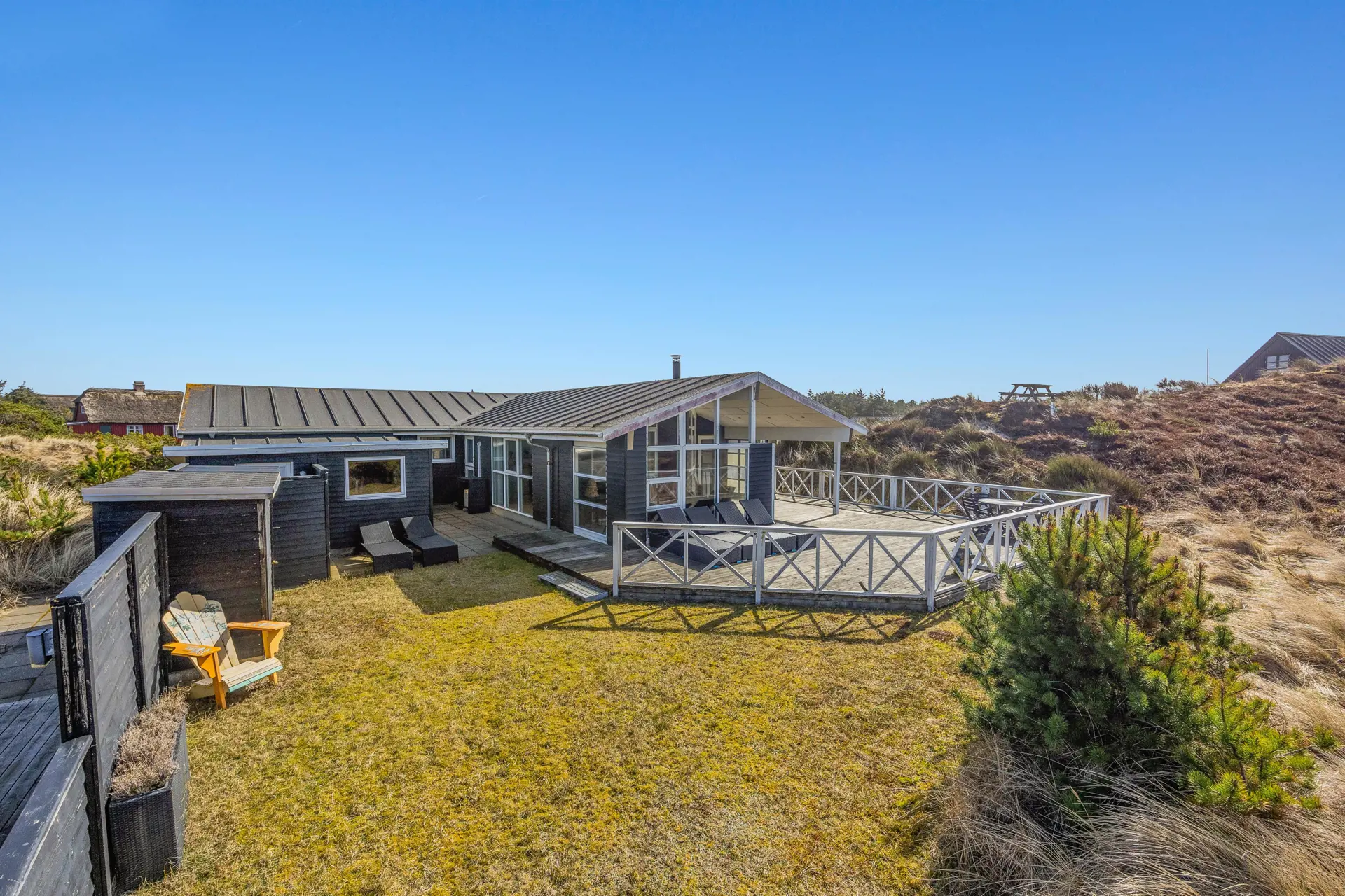 Willkommen in deinem Ferienhaus in Vejers in der Vejers Havvej 69, wo du den Abstand zum Strand genauso liebst wie die schnellen Wege in den Ort. Schon beim Ankommen spürst du: Hier ist Platz für gemeinsame Zeit, Rückzug und echte Erholung. Auf 149 m2 Wohnfläche und einem großen Natur- und Dünengrundstück mit 2452 m2 findest du reichlich Raum für bis zu 10 Personen – perfekt, wenn ihr als Familie oder mit Freunden reist und trotzdem genügend Freiraum genießen wollt.