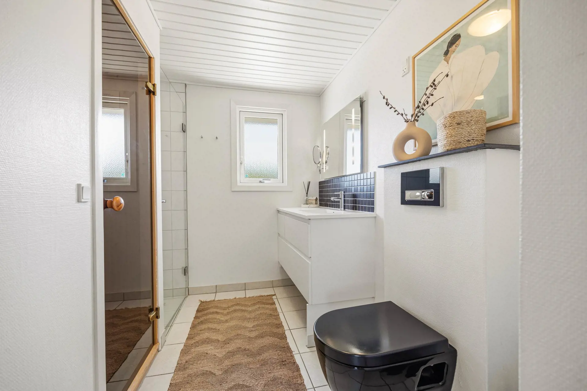 Zwei Badezimmer helfen dabei, dass der Start in den Tag entspannt bleibt und im Bad sorgt die Fußbodenheizung dafür, dass du auch morgens barfuß gern unterwegs bist. Nach langen Spaziergängen oder einem aktiven Tag am Wasser wartet außerdem die Sauna auf dich. Genau das Richtige um die Muskeln zu lockern und den Kopf freizubekommen.