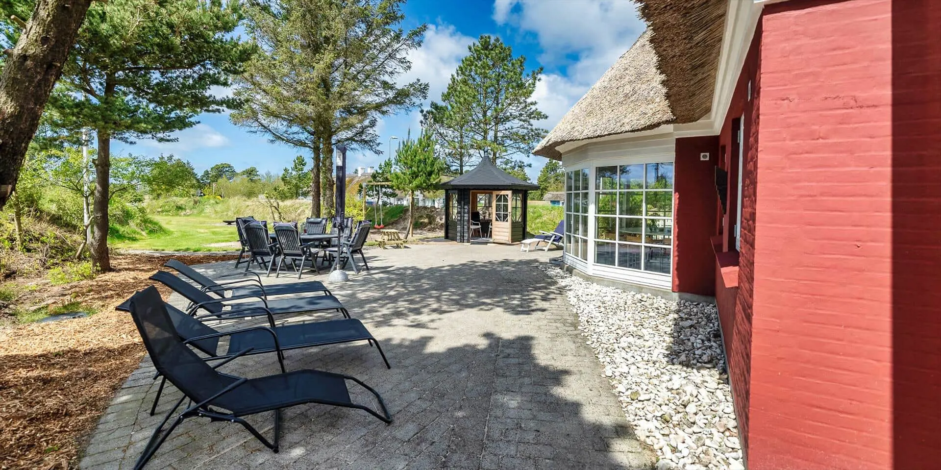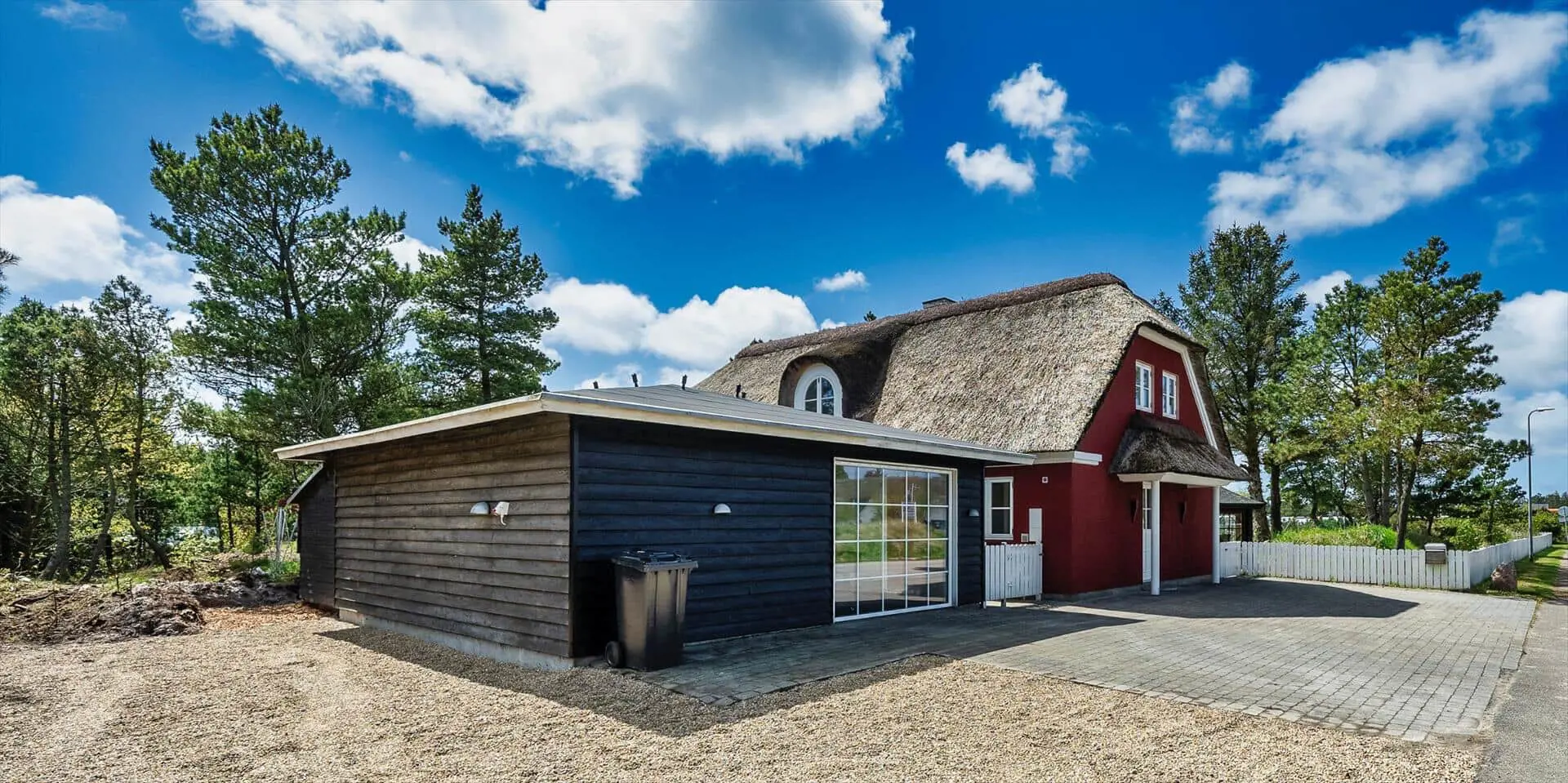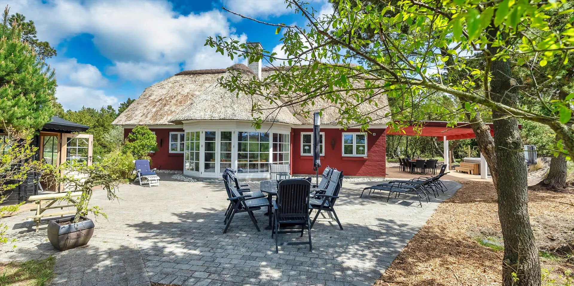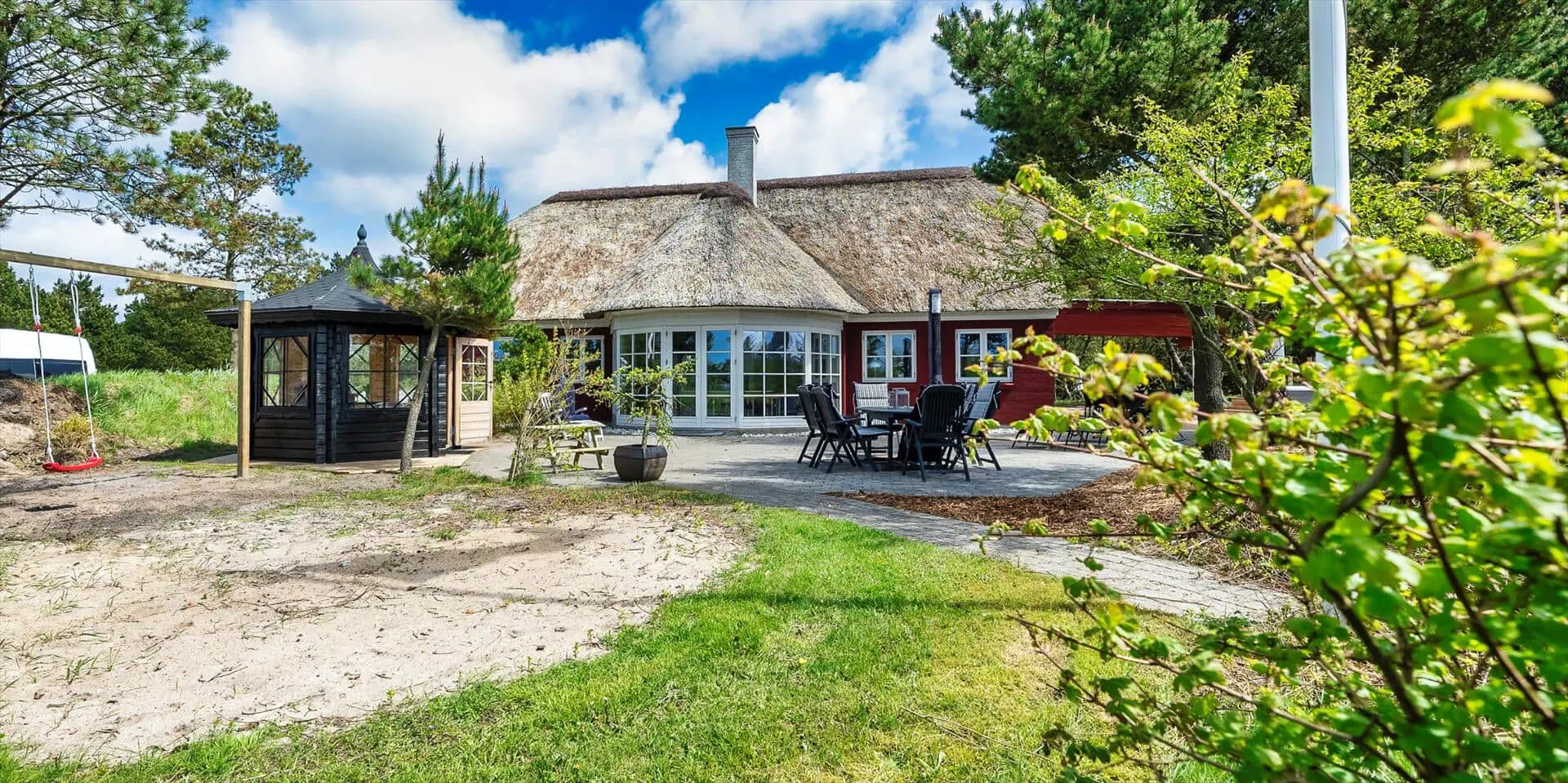 Dieses beeindruckende reetgedeckte Ferienhaus am Vejers Havvej 5 bietet eine einzigartige Kombination aus markanter Architektur, persönlicher Einrichtung und einem großen, einladenden Außenbereich. Die ungewöhnliche Raumaufteilung weckt die Neugier an jeder Ecke, und das Haus ist in einem Stil gestaltet, in dem besondere Möbel und interessante Details zum Wohlbefinden beitragen. Die vielen dekorativen Elemente verleihen dem Haus Charakter — kleine Kunstwerke, Textilien und ausgewählte Möbel machen den Aufenthalt unvergesslich.
