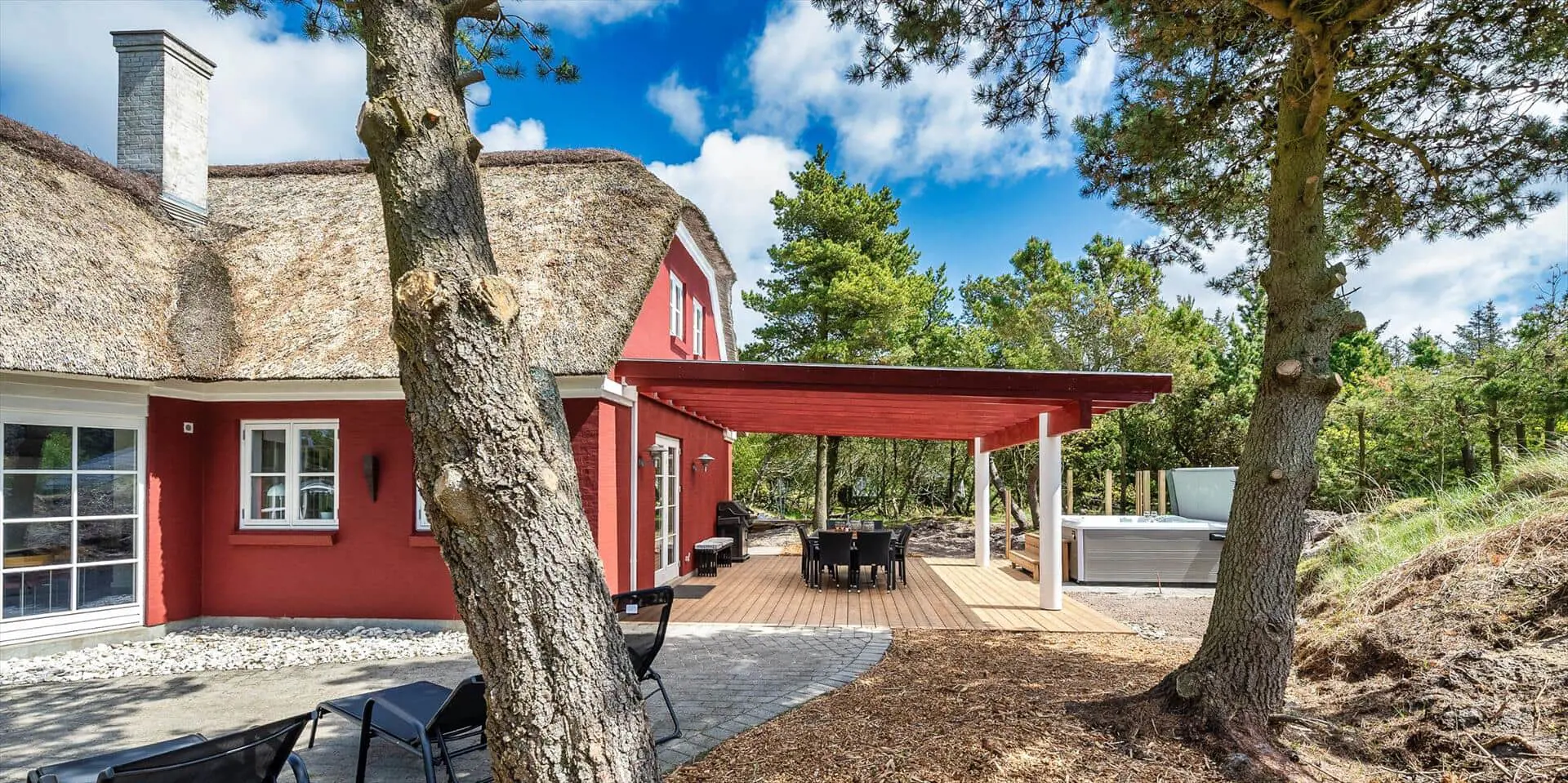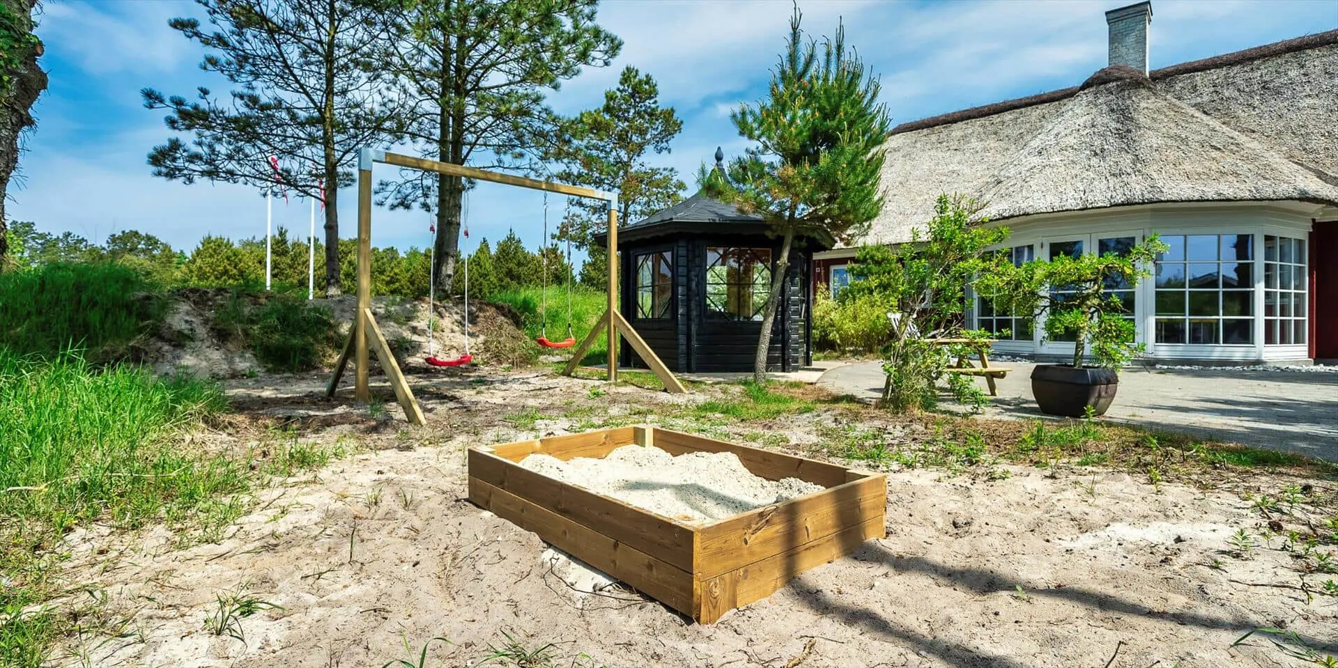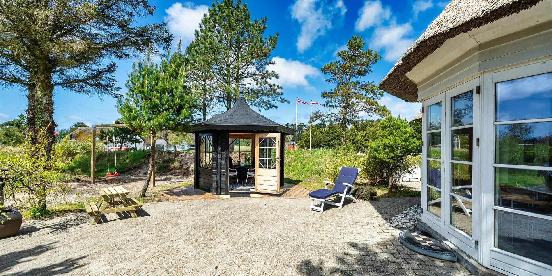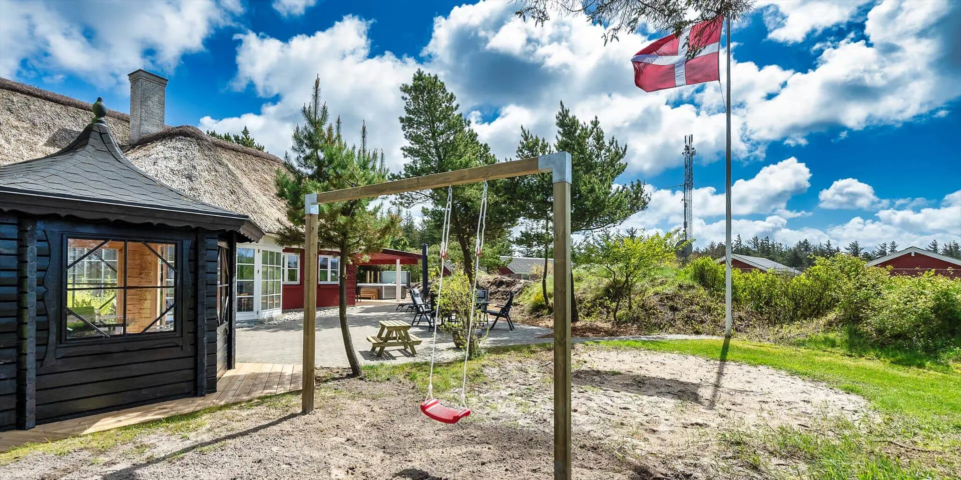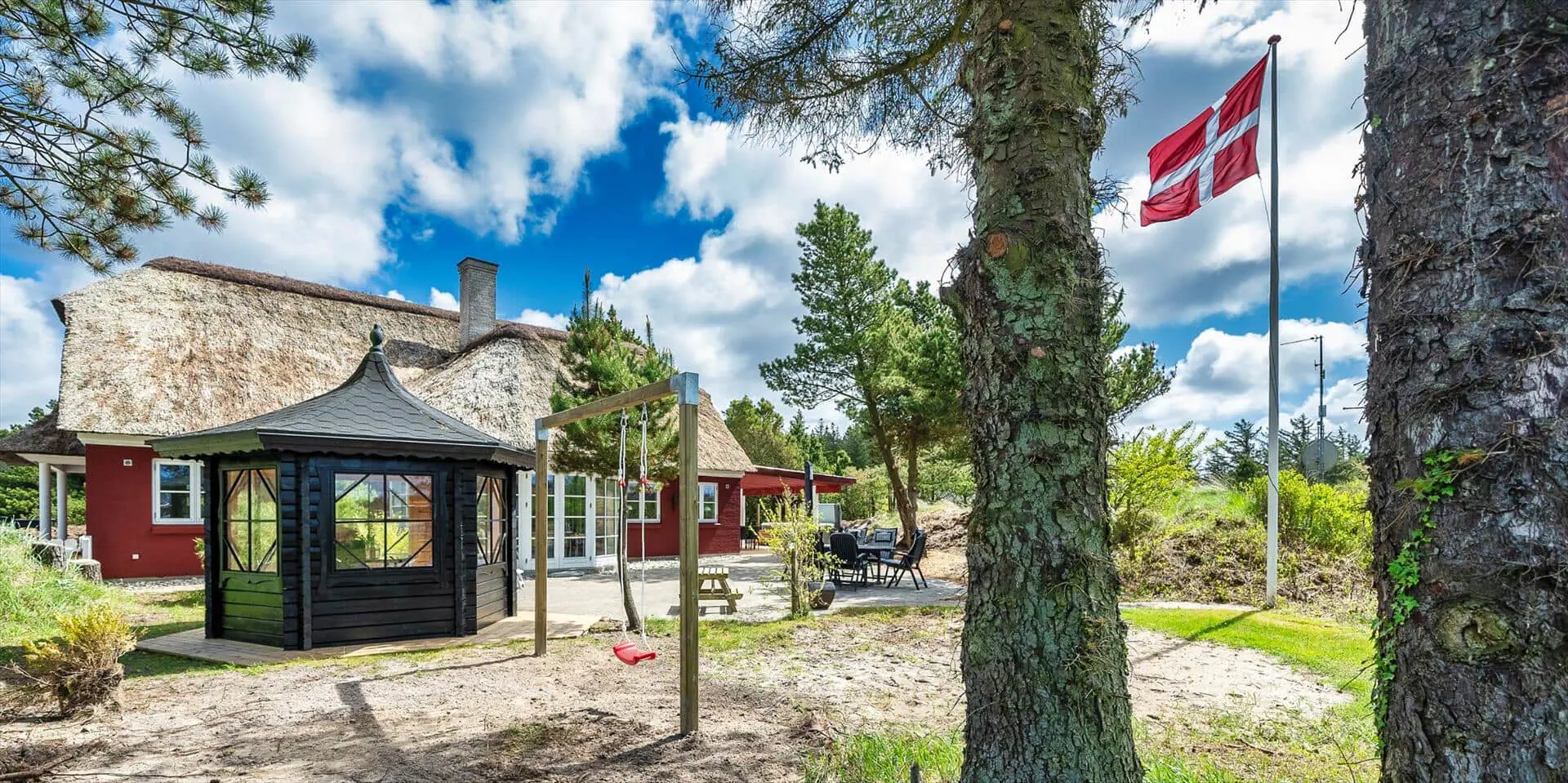 Dieses beeindruckende reetgedeckte Ferienhaus am Vejers Havvej 5 bietet eine einzigartige Kombination aus markanter Architektur, persönlicher Einrichtung und einem großen, einladenden Außenbereich. Die ungewöhnliche Raumaufteilung weckt die Neugier an jeder Ecke, und das Haus ist in einem Stil gestaltet, in dem besondere Möbel und interessante Details zum Wohlbefinden beitragen. Die vielen dekorativen Elemente verleihen dem Haus Charakter — kleine Kunstwerke, Textilien und ausgewählte Möbel machen den Aufenthalt unvergesslich.