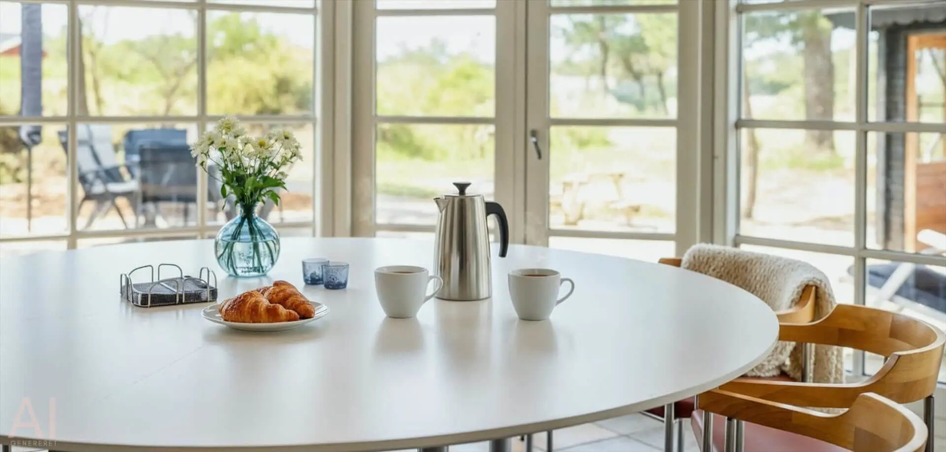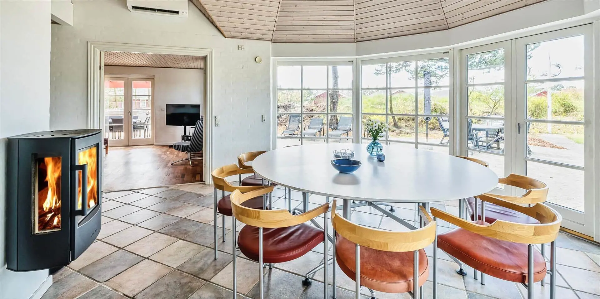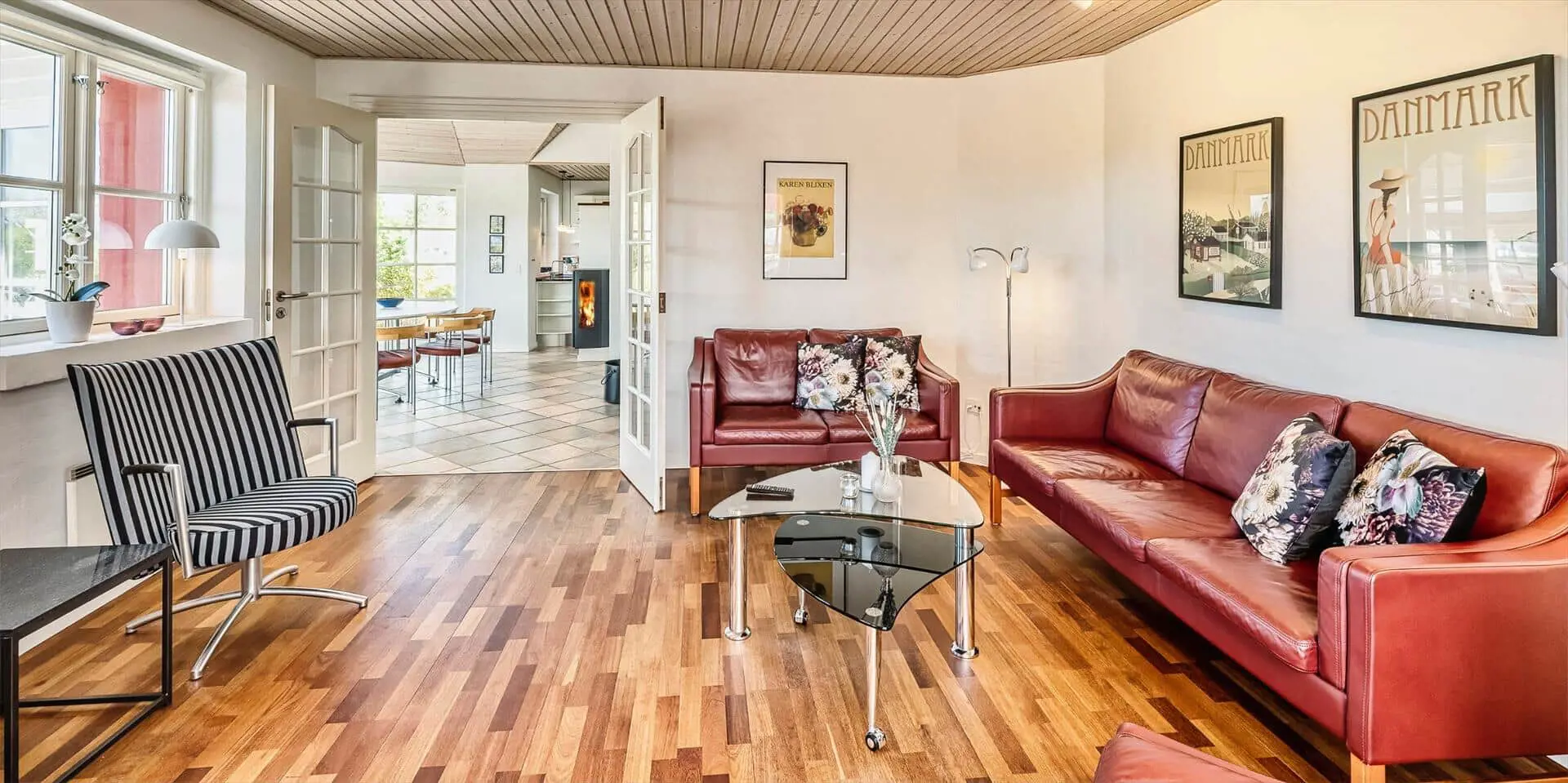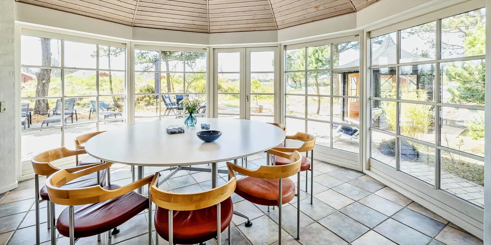 Dieses beeindruckende reetgedeckte Ferienhaus am Vejers Havvej 5 bietet eine einzigartige Kombination aus markanter Architektur, persönlicher Einrichtung und einem großen, einladenden Außenbereich. Die ungewöhnliche Raumaufteilung weckt die Neugier an jeder Ecke, und das Haus ist in einem Stil gestaltet, in dem besondere Möbel und interessante Details zum Wohlbefinden beitragen. Die vielen dekorativen Elemente verleihen dem Haus Charakter — kleine Kunstwerke, Textilien und ausgewählte Möbel machen den Aufenthalt unvergesslich.