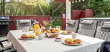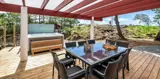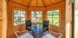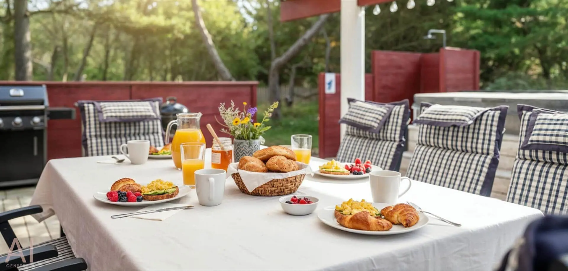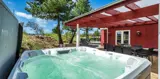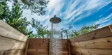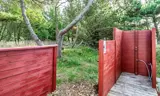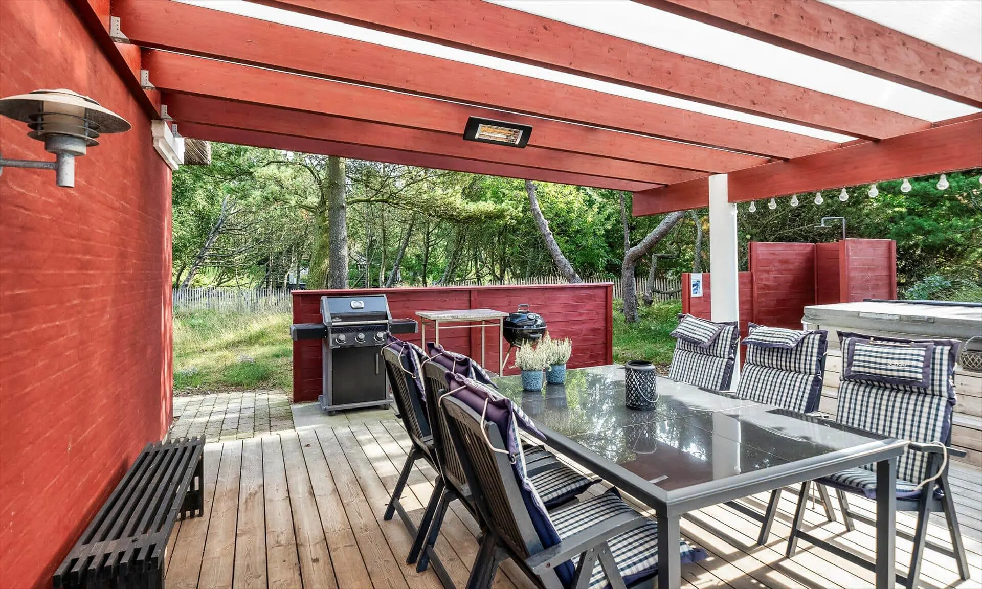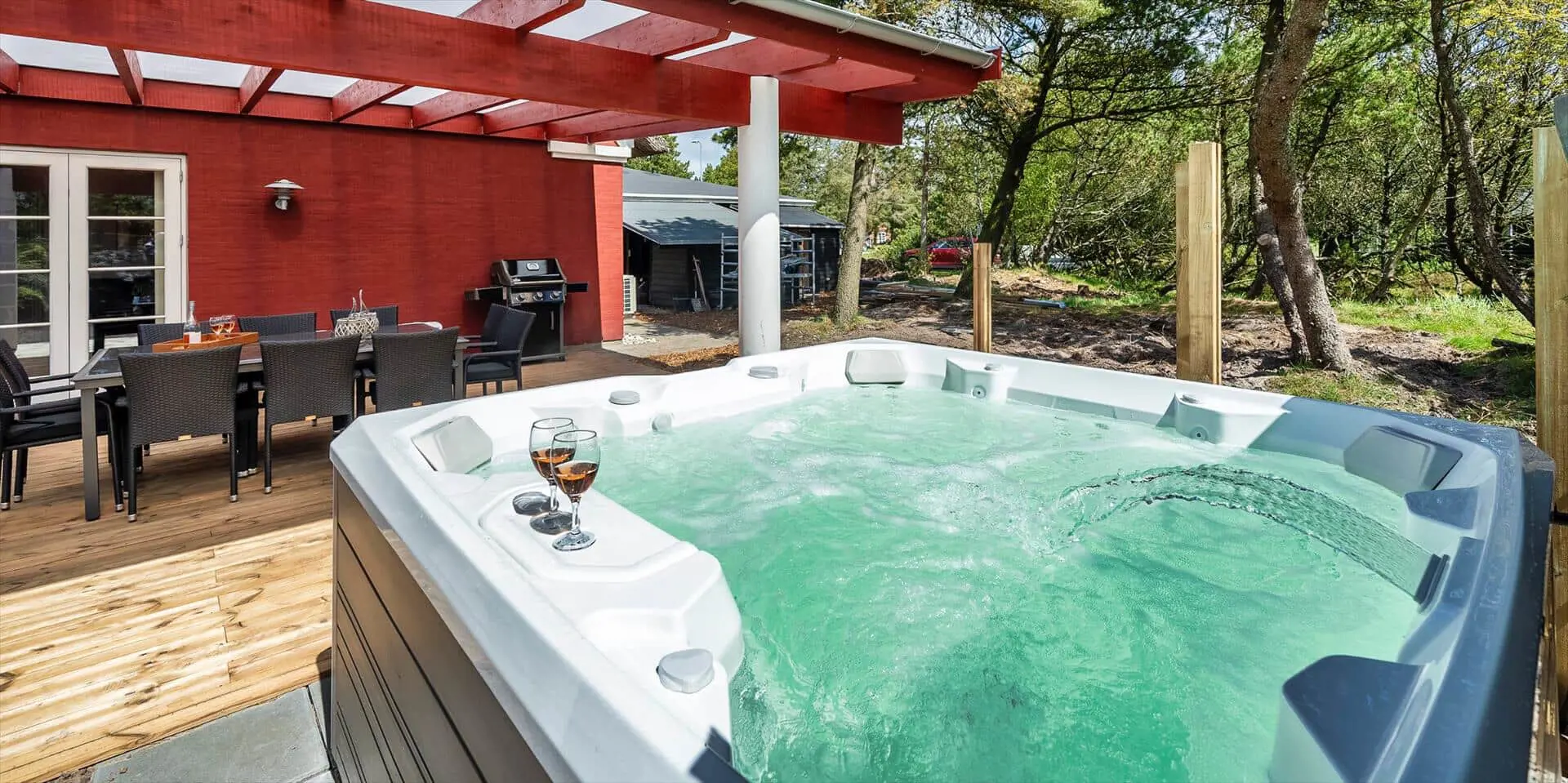 Die Außenbereiche erweitern die sozialen Räume des Hauses: eine große, teilweise überdachte Terrasse mit einer reichen Auswahl an Gartenmöbeln und einem Außen‑Whirlpool lädt zum Verweilen von morgens bis abends ein, während die Außendusche nach einem Strandbesuch für Erfrischung sorgt. Der Garten ist gepflegt und bietet mehrere gemütliche Ecken, Spielgeräte für Kinder und einen charmanten Pavillon, in dem du die Natur bei jedem Wetter genießen kannst — Regen oder Sonne beeinträchtigen die Gemütlichkeit unter dem Pavillondach nicht. Die großzügigen Außenflächen machen es leicht, je nach Wunsch Sonne oder Schatten zu finden, und die Abende lassen sich gut im Loungebereichen oder im Whirlpool unter dem Sternenhimmel verbringen. Hier ist Platz für aktive Tage und ruhige Momente inmitten der Natur.