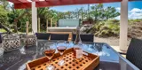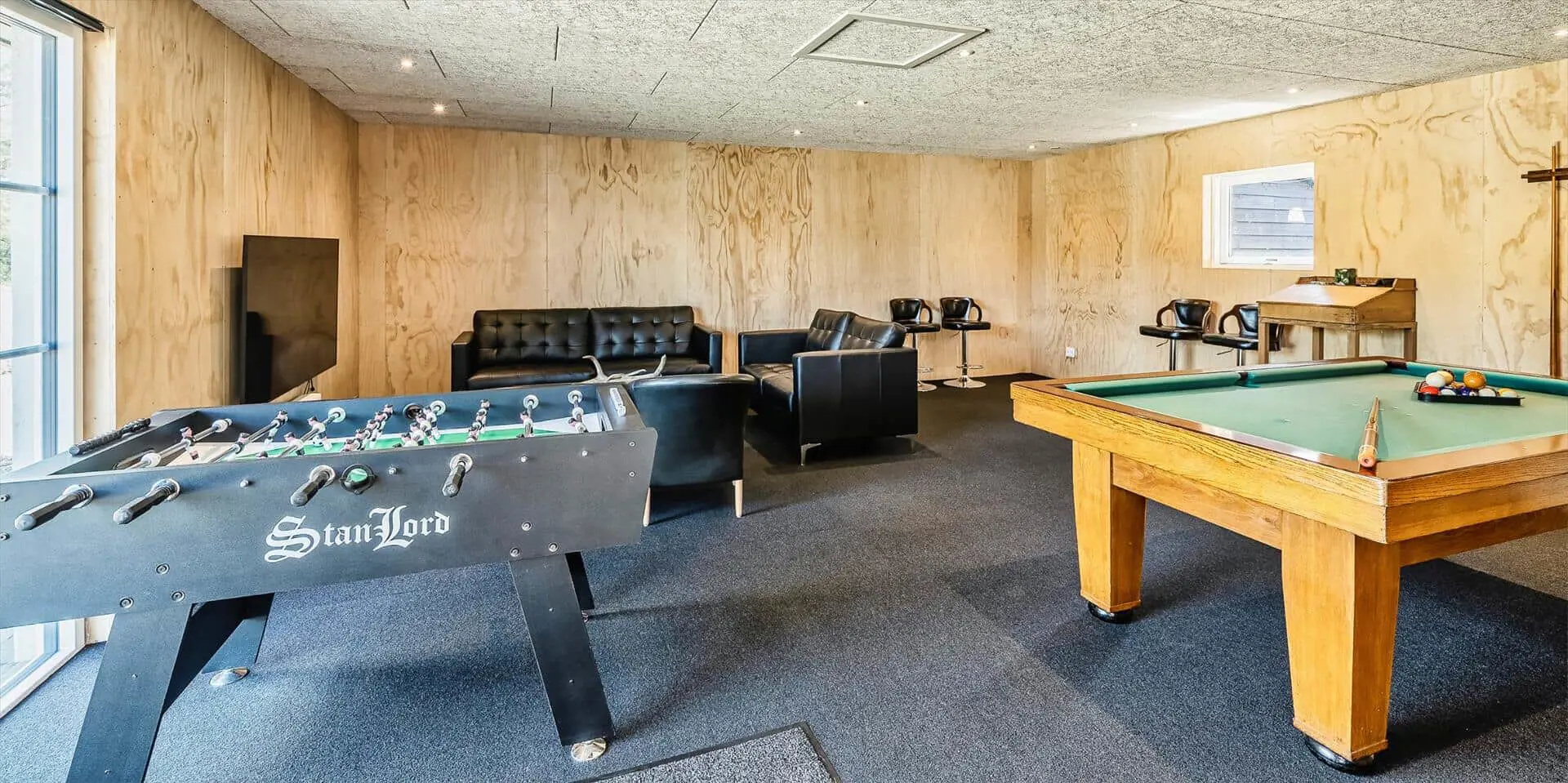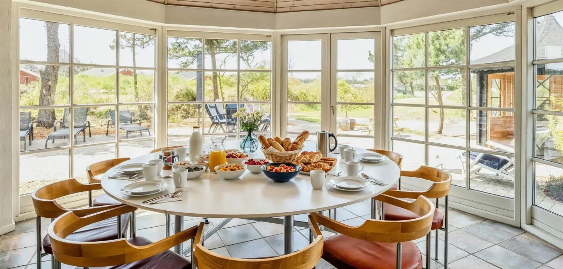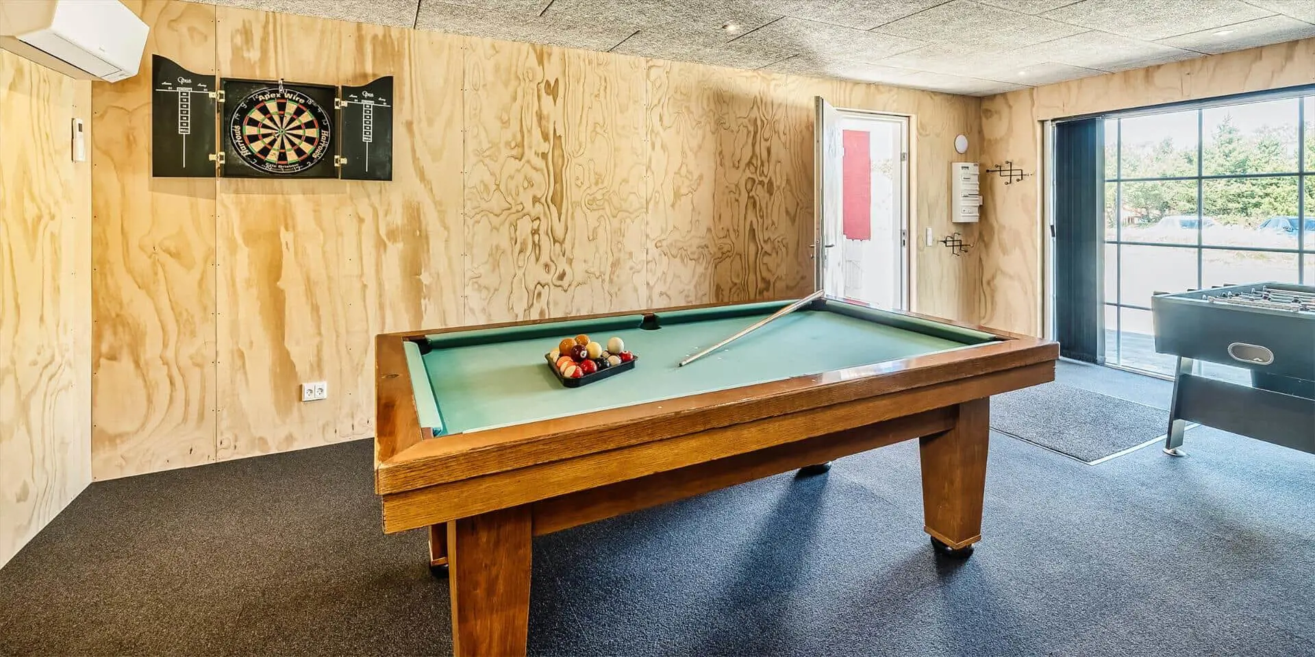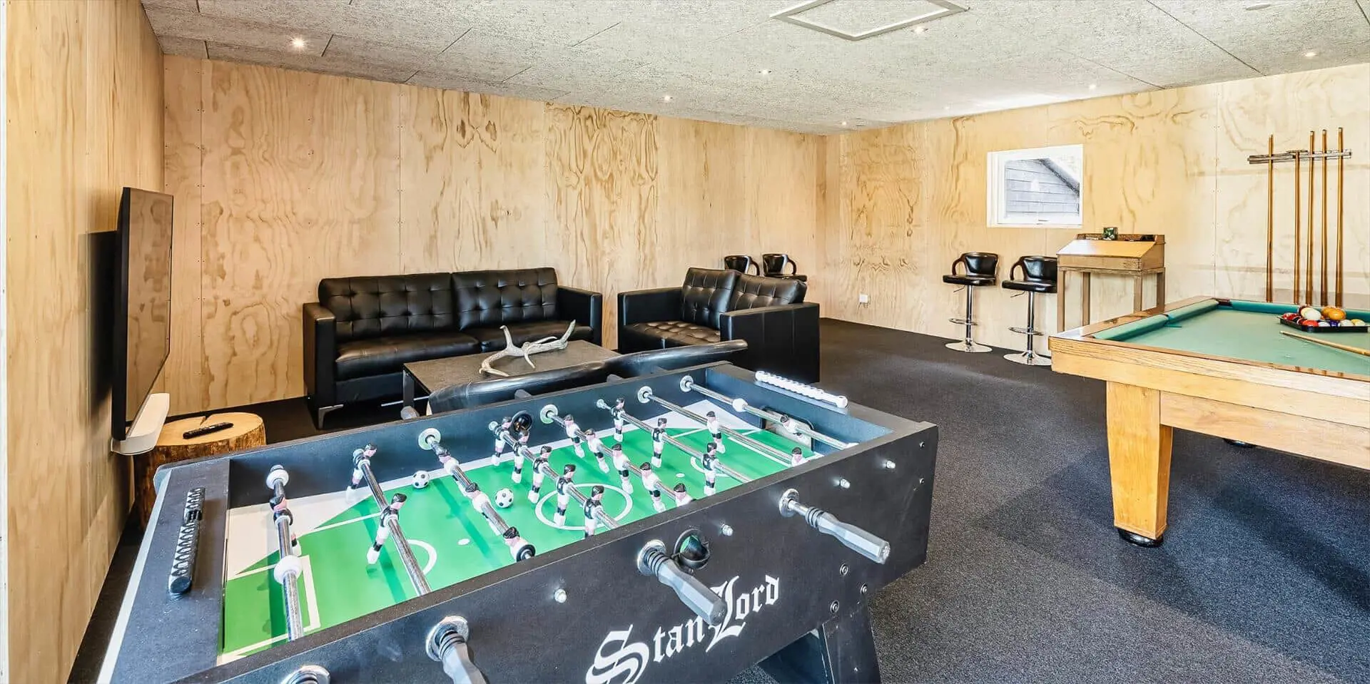 Drinnen triffst du auf ein Layout, das mit Raum und Funktion spielt; offene Bereiche gehen in kleinere, intime Räume über, und Materialien sowie Einrichtung wurden sowohl aus ästhetischen als auch komfortorientierten Gründen ausgewählt. Der runde Esstisch bildet das Herz des Hauses bei den Mahlzeiten und schafft eine besondere Atmosphäre, in der Gespräche natürlich fließen — es ist leicht, sich lange Abende mit gutem Essen und Wein vorzustellen, während das Licht aus den großen Fensterfronten die Stimmung verstärkt. Das Aktivitätshaus bietet Platz für Spaß und Entspannung mit Billardtisch, Tischtennis, Dart und gemütlichen Sitzplätzen, von denen aus du die Spiele verfolgen oder eine Pause mit gutem Gespräch einlegen kannst. Nach einem Strandtag oder einem Tagesausflug kannst du dich in den Wellnessbereich zurückziehen: Genieße die Sauna und den Whirlpool, wärme deinen Körper, nimm eine erfrischende Dusche und rundet den Abend mit Duftkerzen, gedimmtem Licht und einem Glas Wein auf der Terrasse ab — ein perfekter, entspannender Tagesausklang.