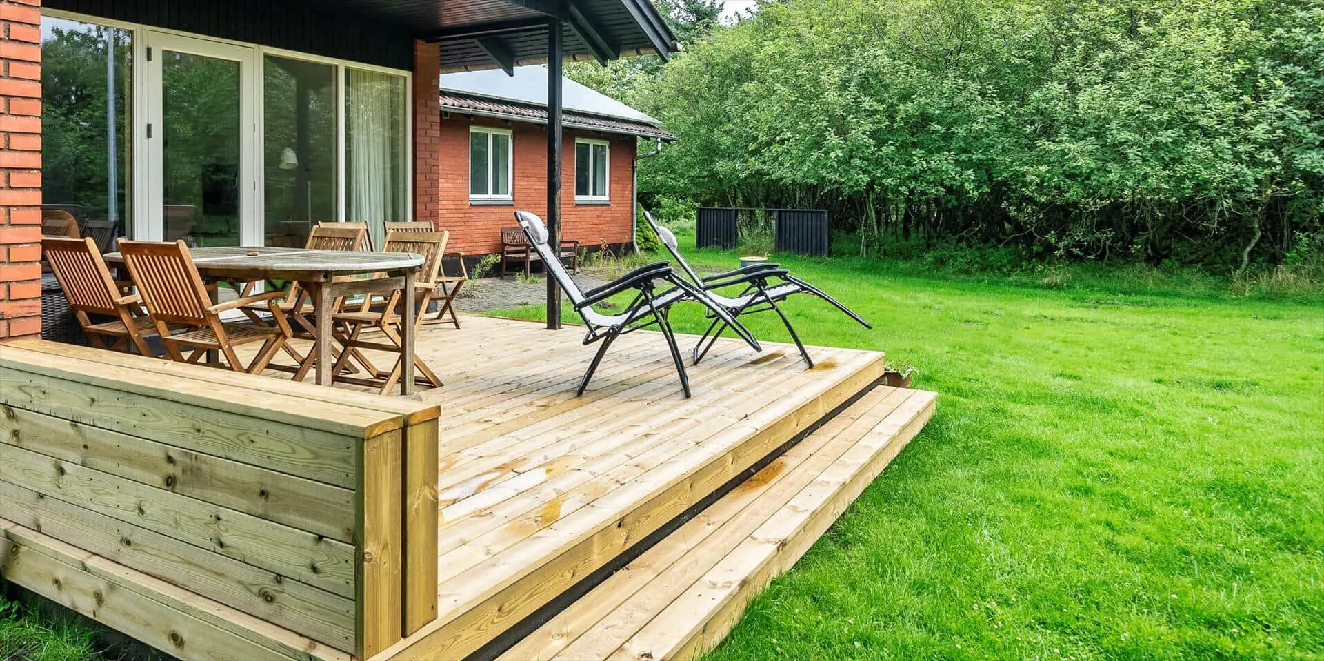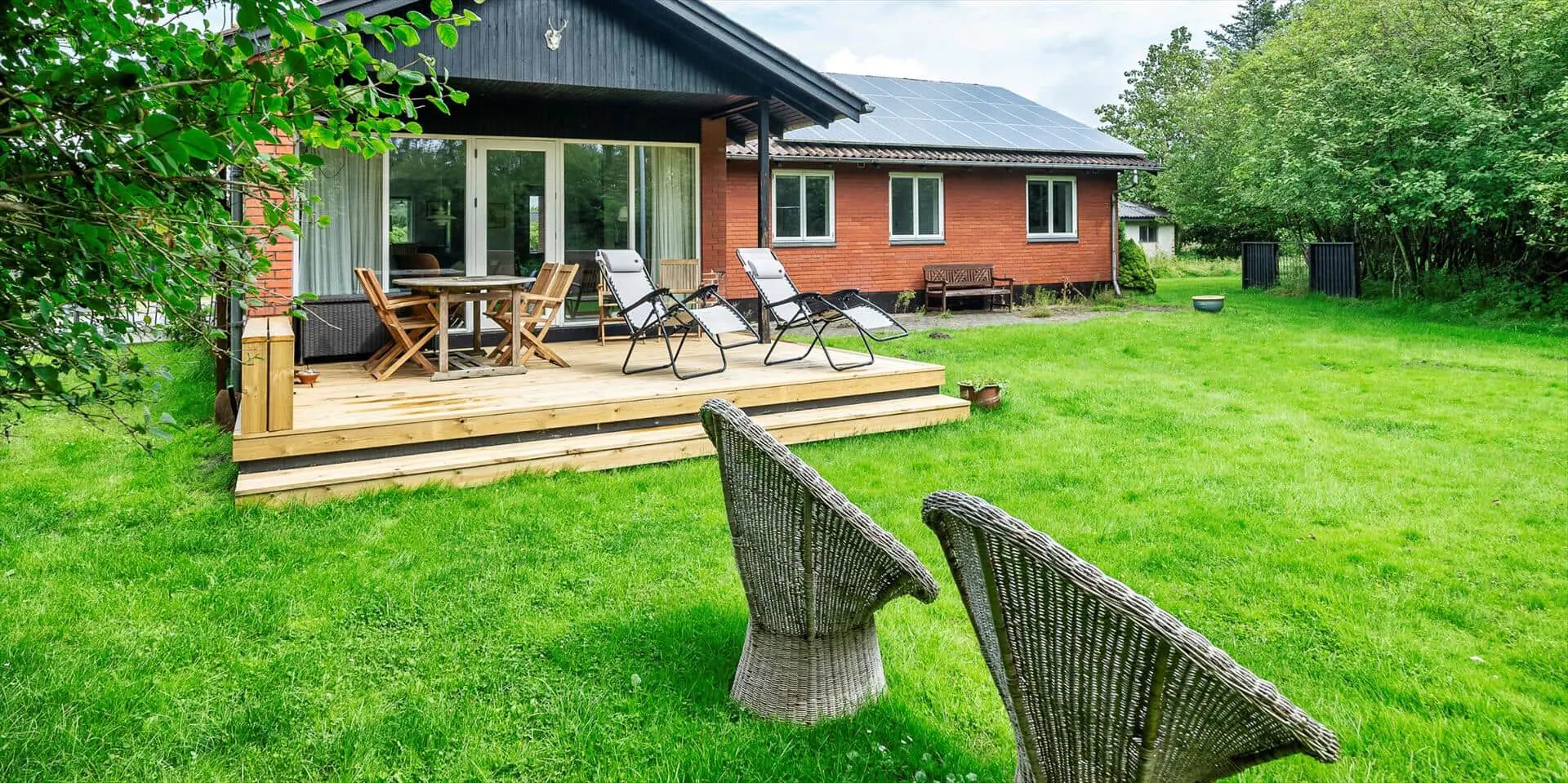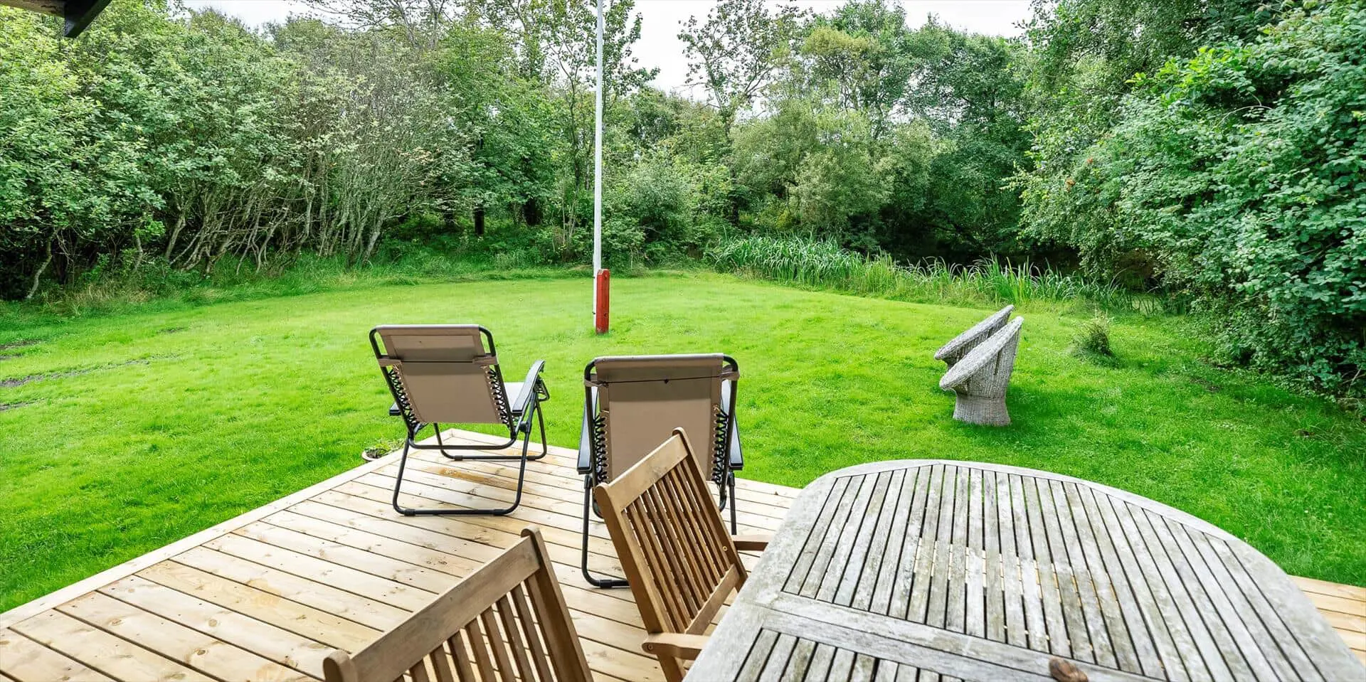 Draußen erwartet dich ein gepflegter Rasen und mehrere Terrassen mit bequemen Gartenmöbeln, sodass du je nach Laune Sonne oder Windschutz findest. Die verschiedenen Terrassen fungieren als Außenwohnräume — vom Morgenkaffee in der Sonne bis zu späten Abenden mit einem Glas Wein unter dem Sternenhimmel. Der Rasen lädt Kinder zum Spielen ein oder bietet Platz für eine Partie Boule und bildet einen ruhigen Rahmen zum umgebenden Dünenland. Luft und Licht draußen sind ein großer Teil des Erlebnisses: der Duft der Dünenvegetation, das ferne Rauschen der Wellen und der Wind, der im Gras spielt. Die nahe Lage zum Strand von Vejers macht es leicht, entspannte Stunden im Garten mit aktiven Strandtagen zu kombinieren.