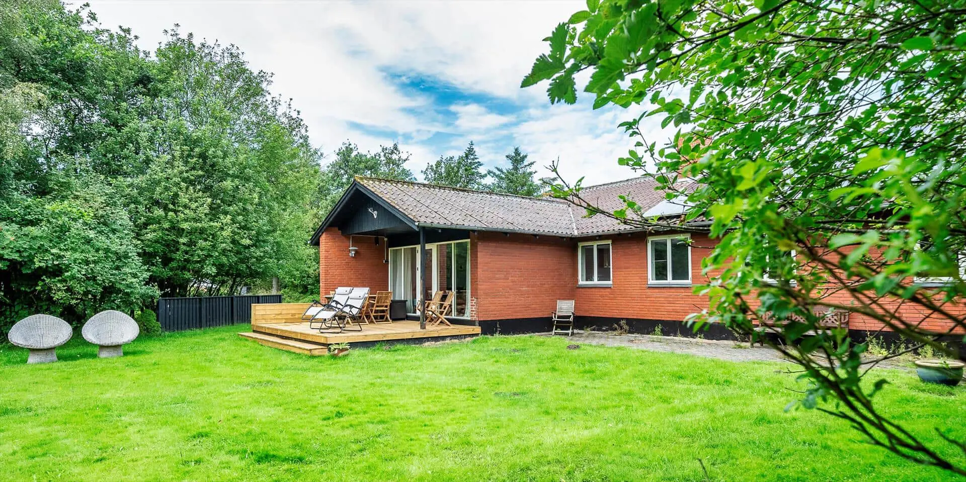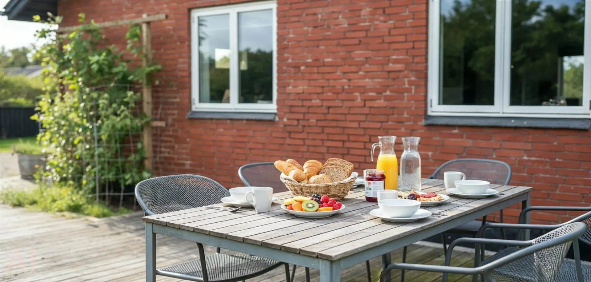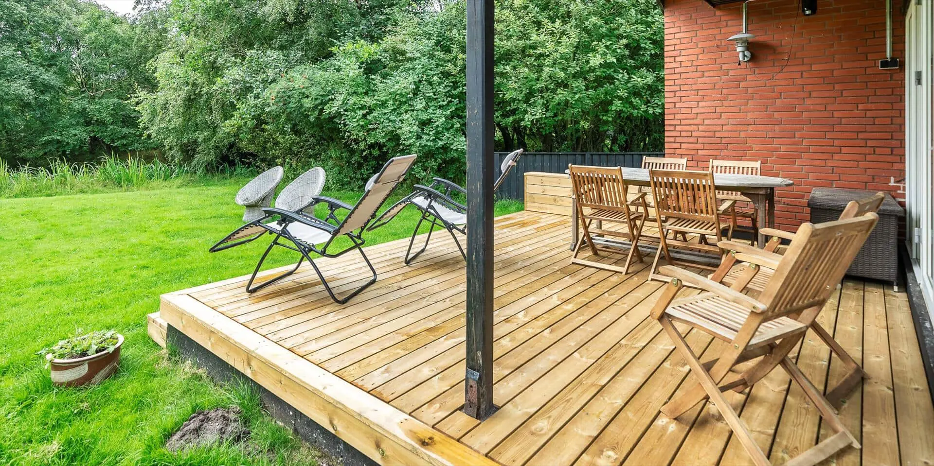 Draußen erwartet dich ein gepflegter Rasen und mehrere Terrassen mit bequemen Gartenmöbeln, sodass du je nach Laune Sonne oder Windschutz findest. Die verschiedenen Terrassen fungieren als Außenwohnräume — vom Morgenkaffee in der Sonne bis zu späten Abenden mit einem Glas Wein unter dem Sternenhimmel. Der Rasen lädt Kinder zum Spielen ein oder bietet Platz für eine Partie Boule und bildet einen ruhigen Rahmen zum umgebenden Dünenland. Luft und Licht draußen sind ein großer Teil des Erlebnisses: der Duft der Dünenvegetation, das ferne Rauschen der Wellen und der Wind, der im Gras spielt. Die nahe Lage zum Strand von Vejers macht es leicht, entspannte Stunden im Garten mit aktiven Strandtagen zu kombinieren.