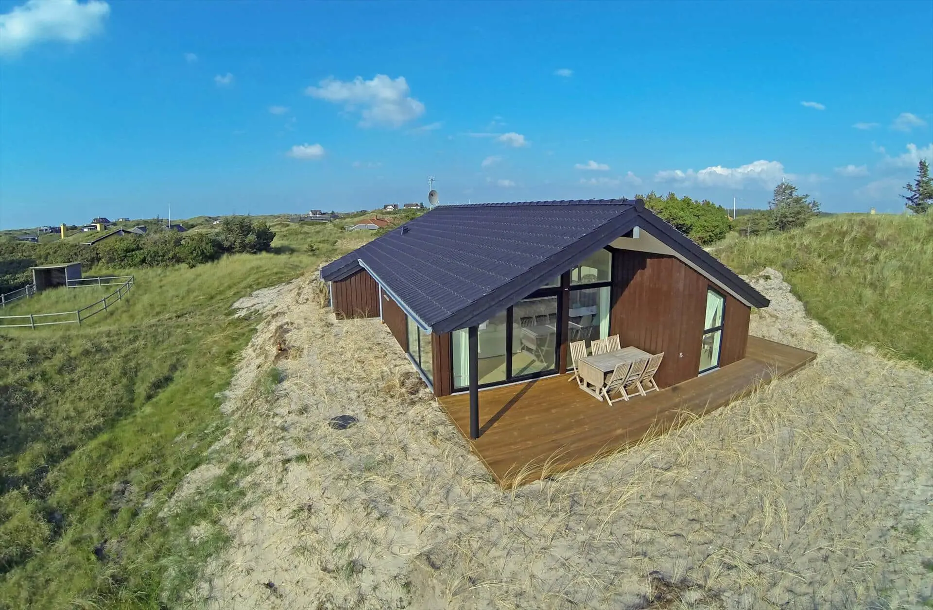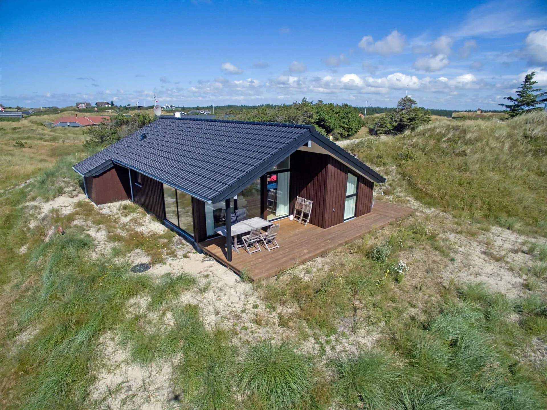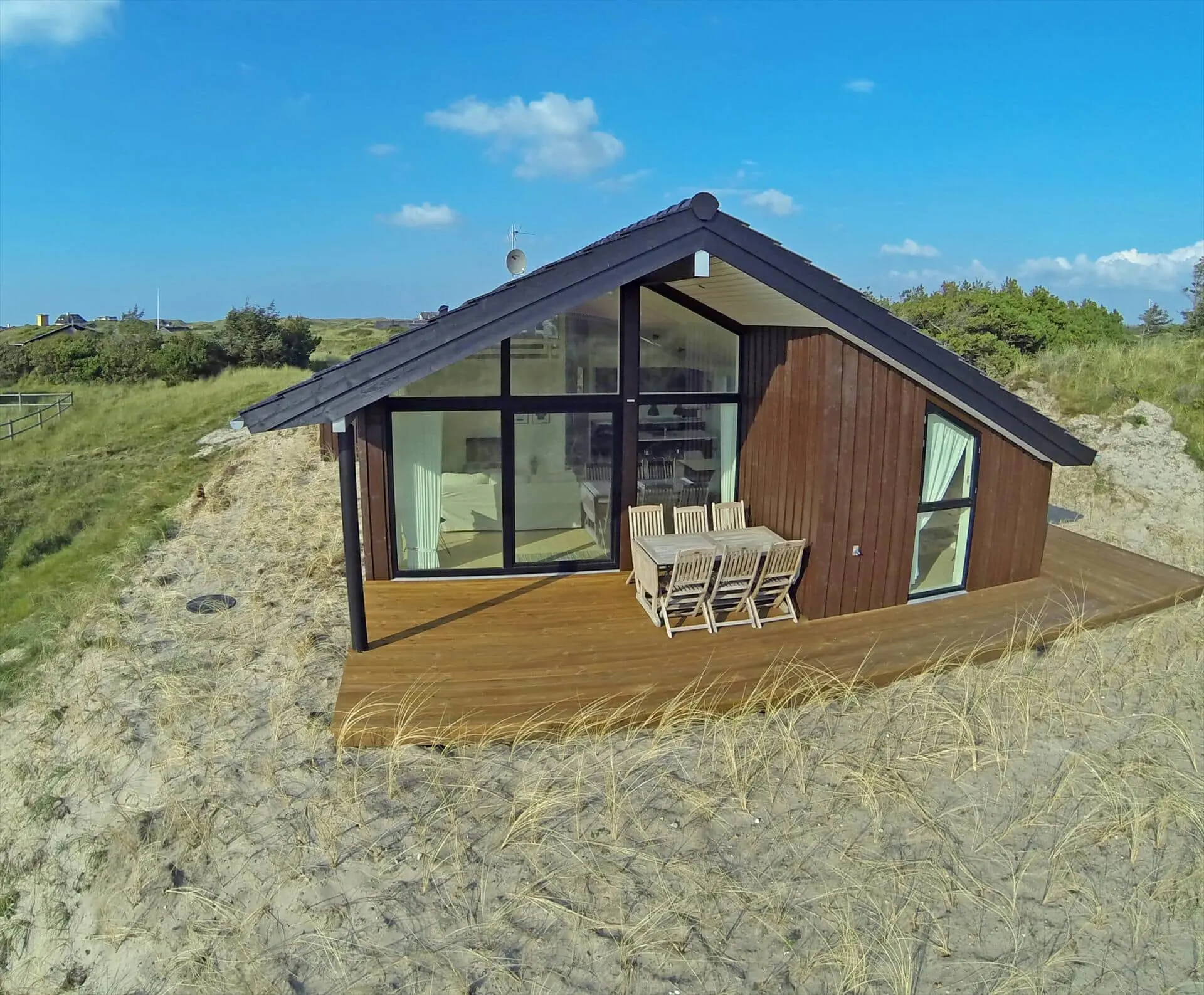 Das Dünengrundstück des Ferienhauses bietet eine naturnahe und ungestörte Kulisse für das Leben im Freien. Die Terrasse ist ein natürlicher Treffpunkt, an dem du den Wechsel des Tages verfolgen kannst: Vogelgezwitscher am Morgen, warme Vormittagssonne und die ruhigen Farben am Abend. Wenn dich das Bedürfnis nach Strand überkommt, erreichst du den Vejers Strand nach einem kurzen, angenehmen Spaziergang durch die Dünen — ideal für tägliche Ausflüge in Sand und salziger Luft, Spaziergänge am Wasser oder ein erfrischendes Bad in der Nordsee.