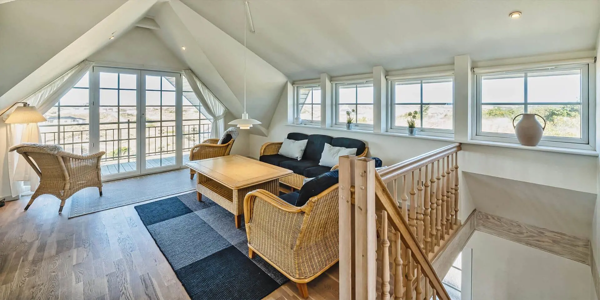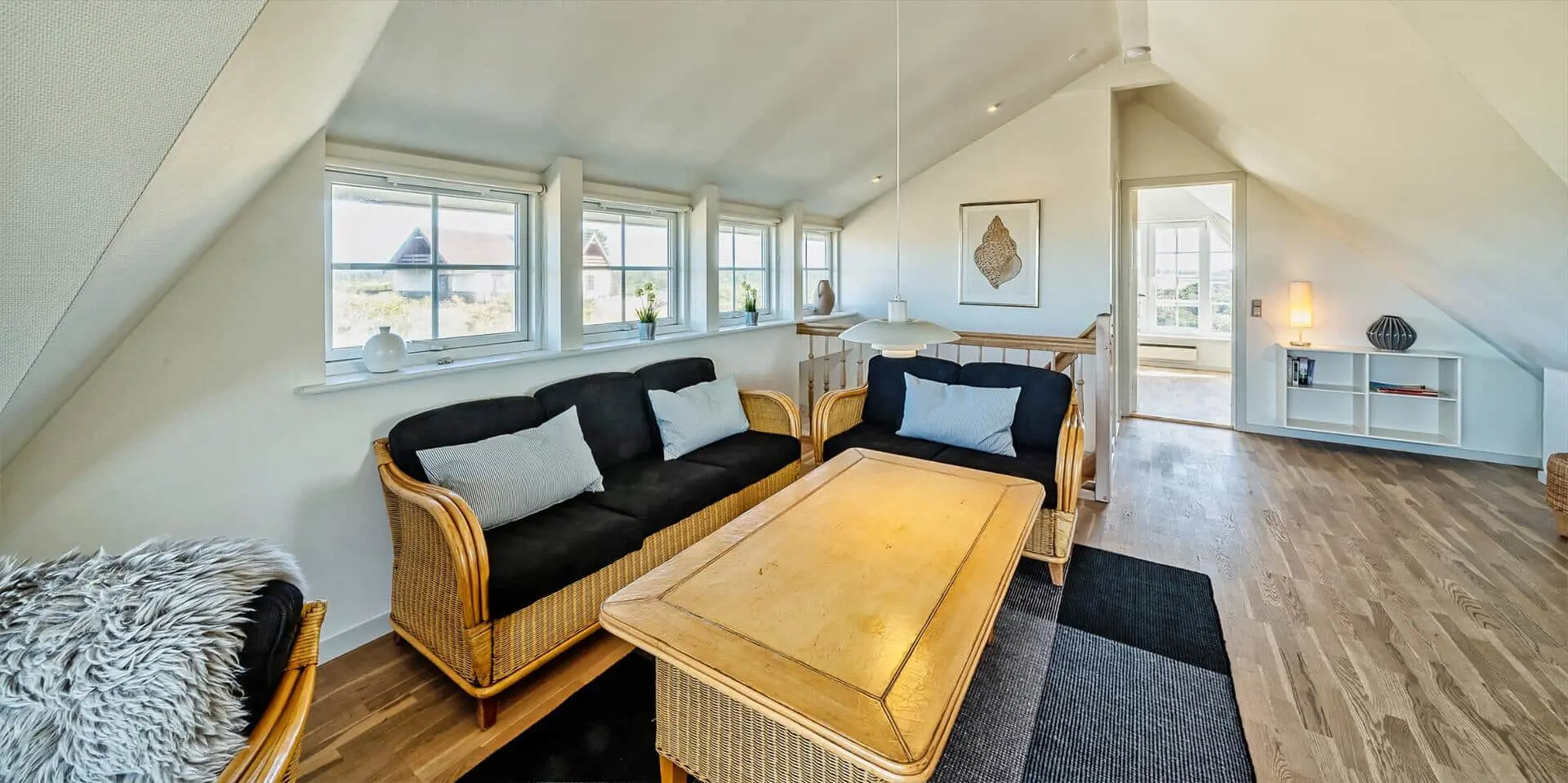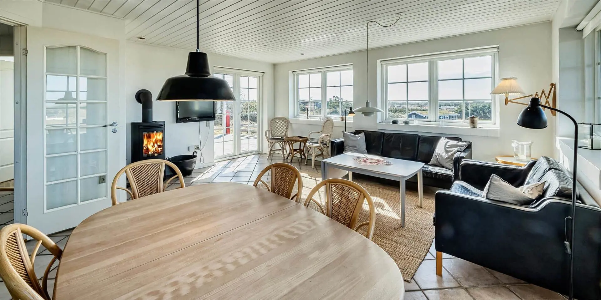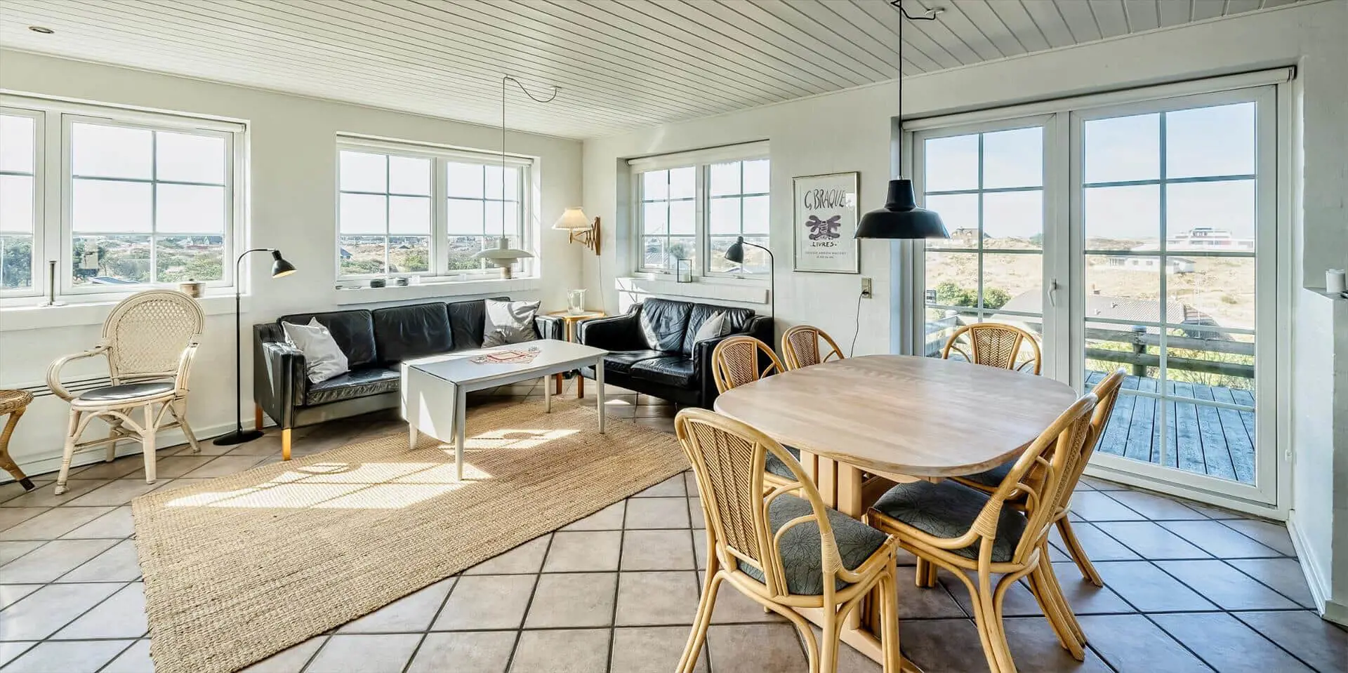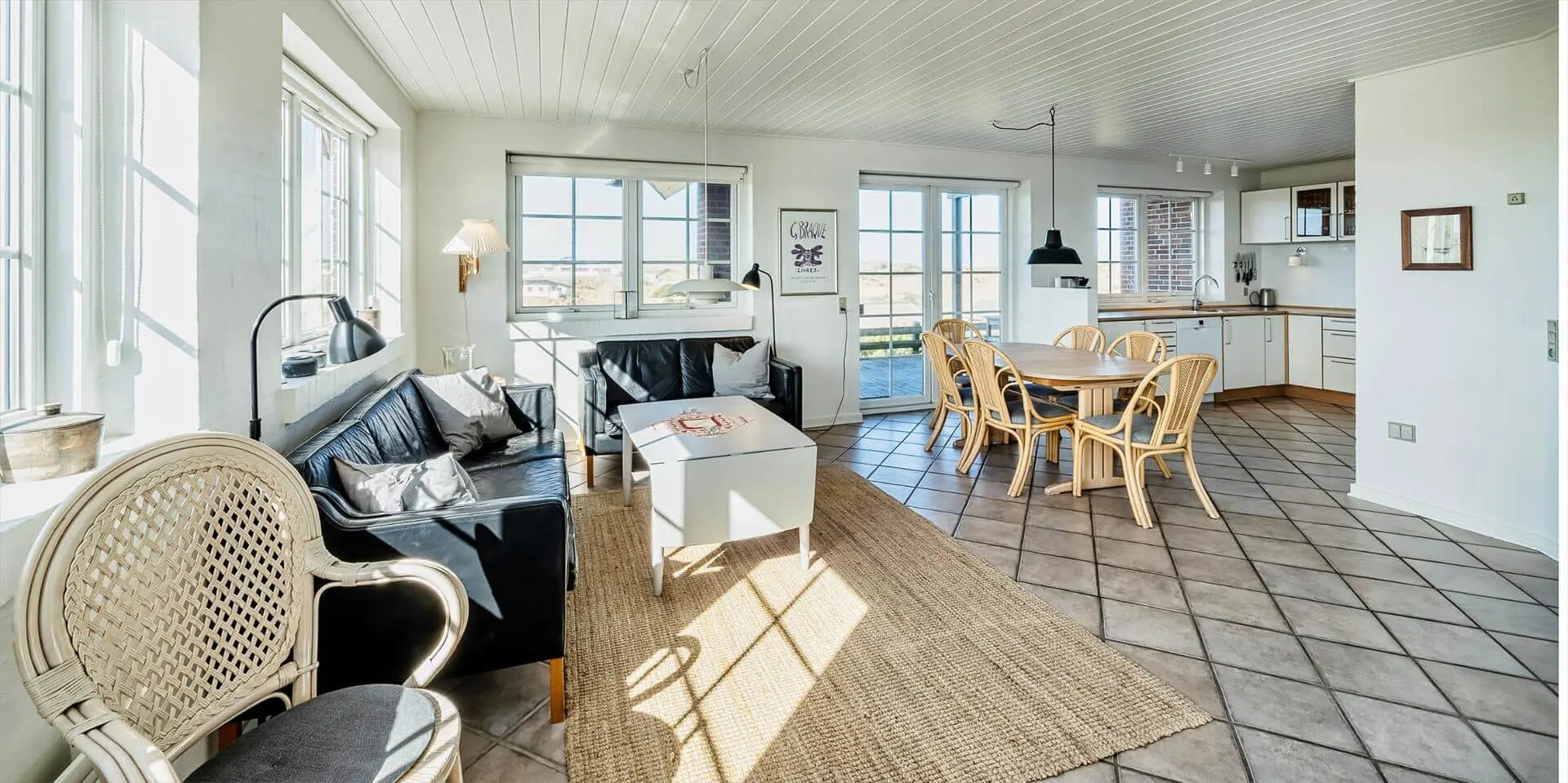 Genieße einen Urlaub, in dem Platz, Licht und Gemeinschaft Raum zur Entfaltung haben. Dieses solide zweistöckige Steinhaus am Nordvej bietet einen durchdachten Grundriss und ist damit ideal für zwei Familien oder mehrere Generationen, die sowohl Privatsphäre als auch gemeinsame Zeit in hellen, einladenden Räumen mit Blick über die Dünenlandschaft wünschen.