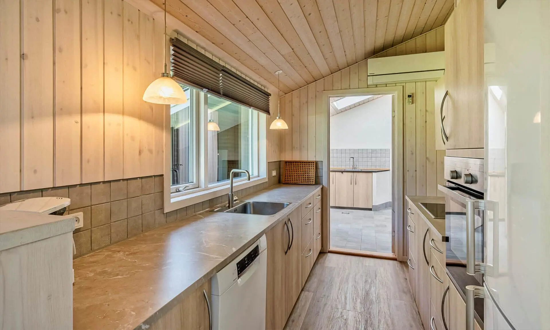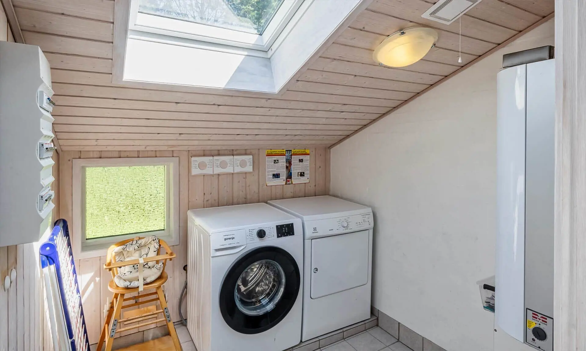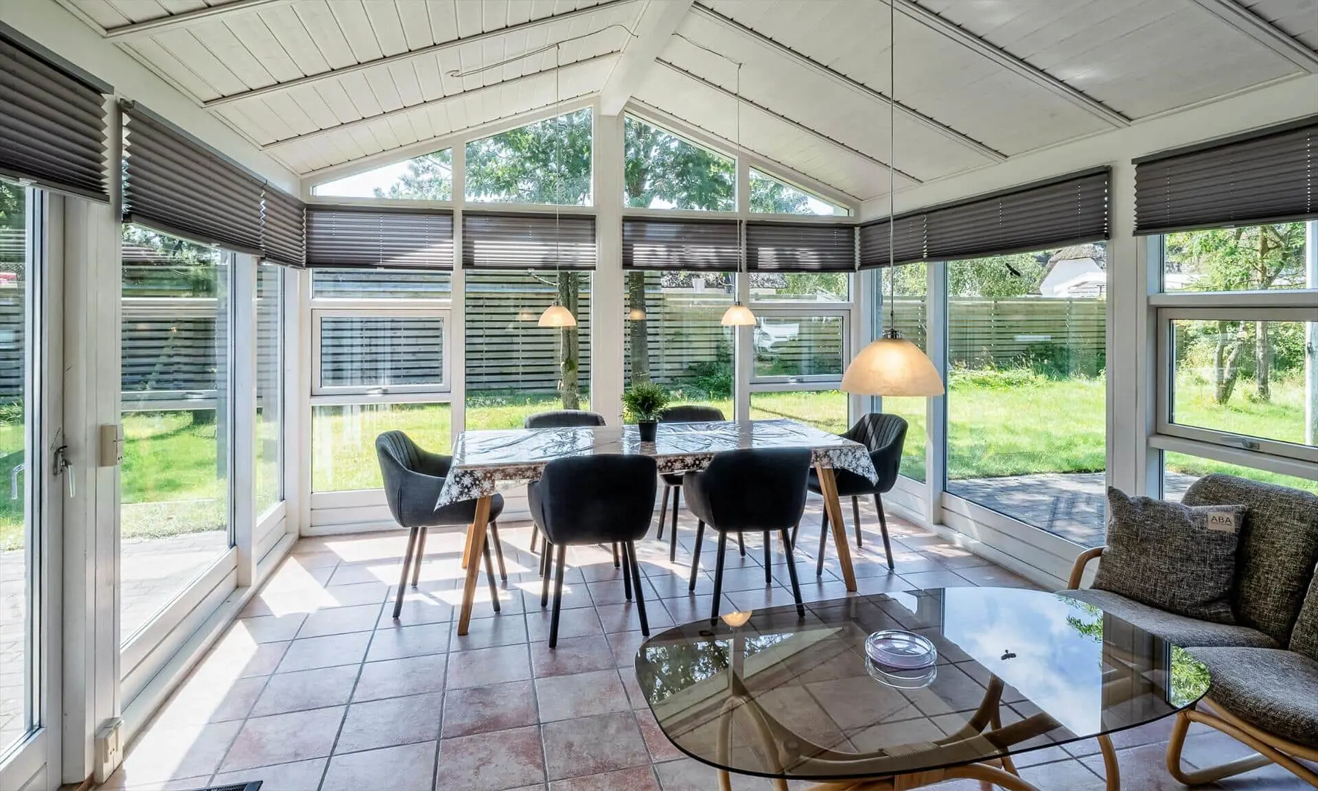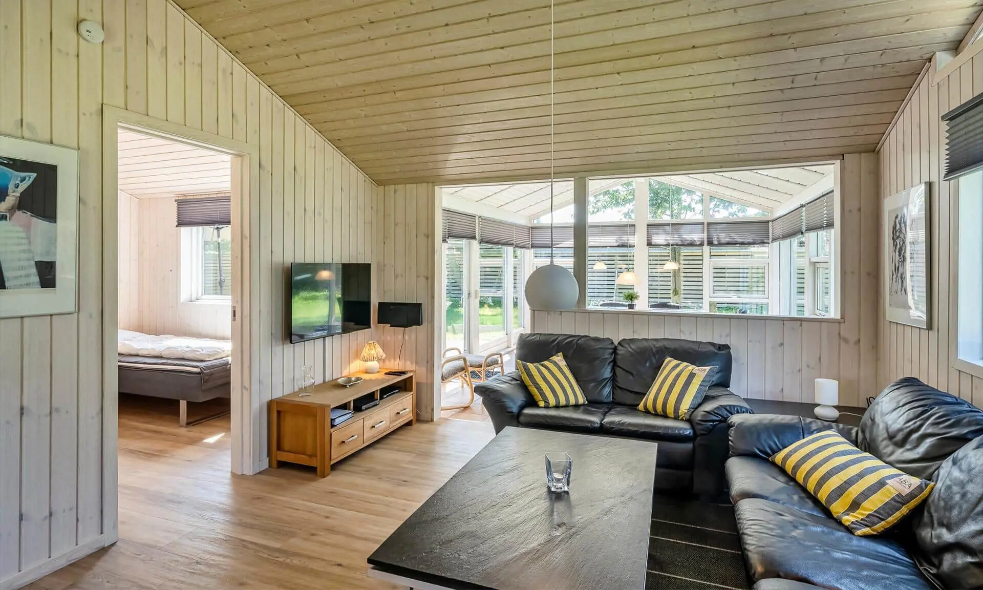 Tritt ein in ein Zuhause, in dem helles Holz und warme Textilien von Anfang an eine einladende Stimmung schaffen. Die große Wintergartenerweiterung mit Panoramafenstern lässt viel Licht herein und vermittelt das Gefühl, der Natur ganz nah zu sein, auch wenn das Wetter wechselhaft ist — ein natürlicher Treffpunkt für den Morgenkaffee oder eine ruhige Lesestunde. Die Einrichtung ist schlicht und funktional mit Komfort im Fokus; die gemütlichen Schlafzimmer versprechen erholsame Nächte. Das Badezimmer ist elegant gestaltet, und dank der eingebauten Sauna wird Wellness schnell ein Teil des Urlaubsprogramms. Praktische und stimmungsvolle Details sorgen dafür, dass das Entspannen leichtfällt: viel Stauraum, angenehme Beleuchtung und ein Grundriss, der Nähe und Ruhe fördert. Hier kann die Familie spielen, lange Gespräche führen oder ein Nachmittagsschläfchen mit Blick ins Grüne genießen.