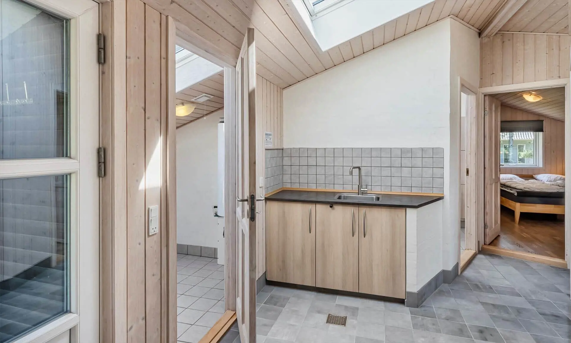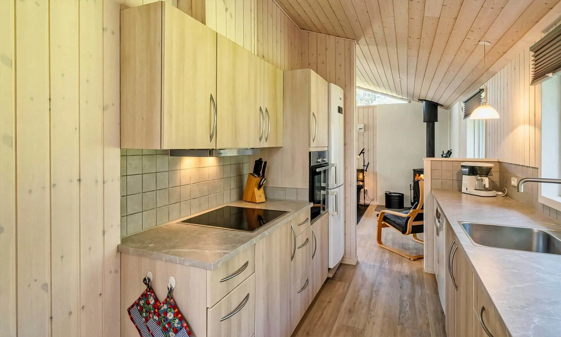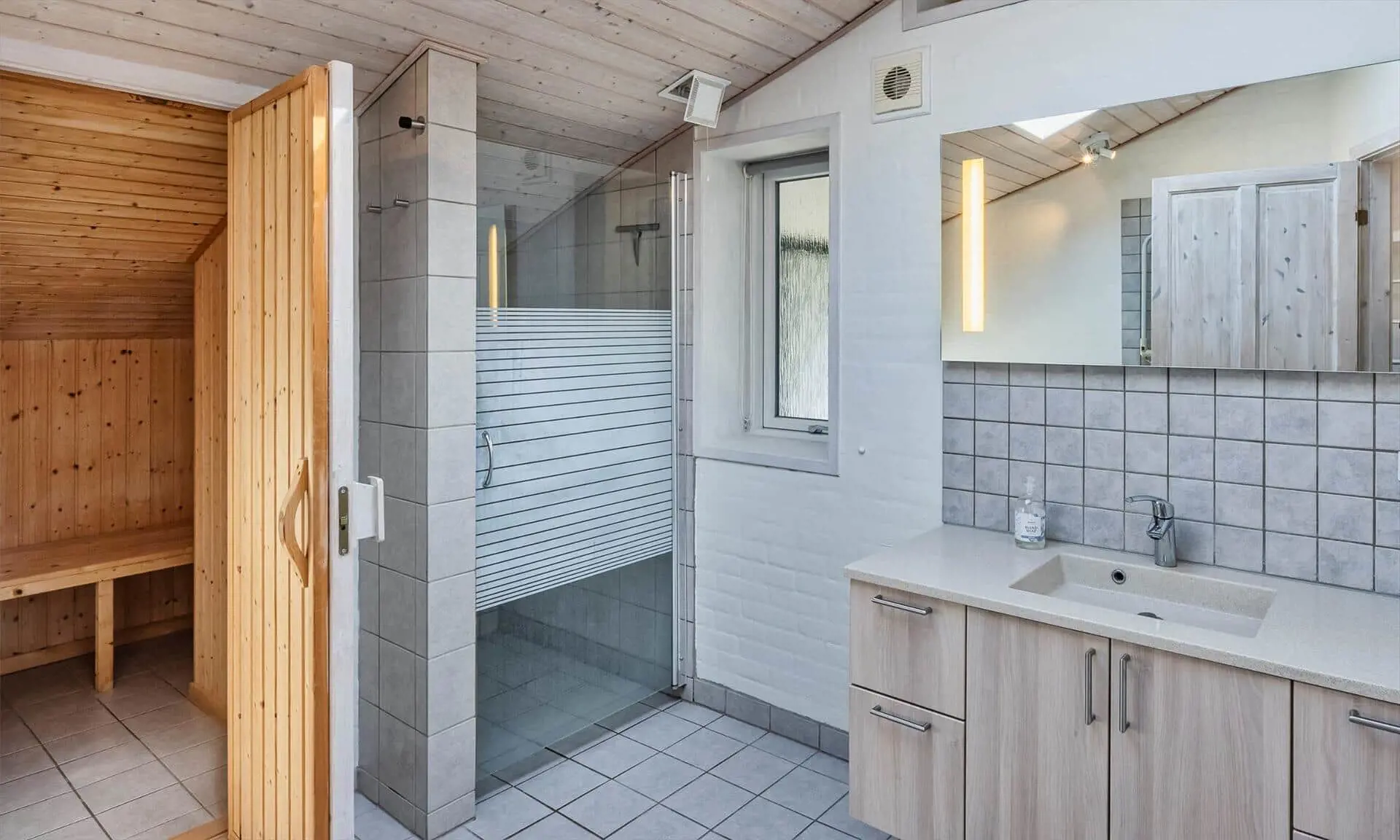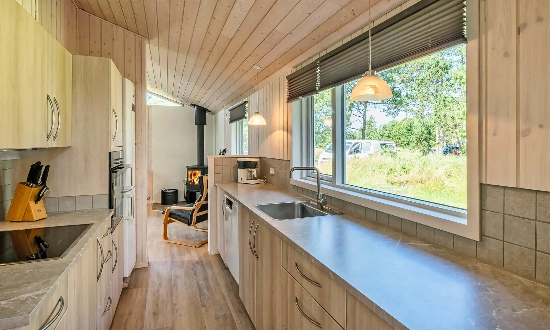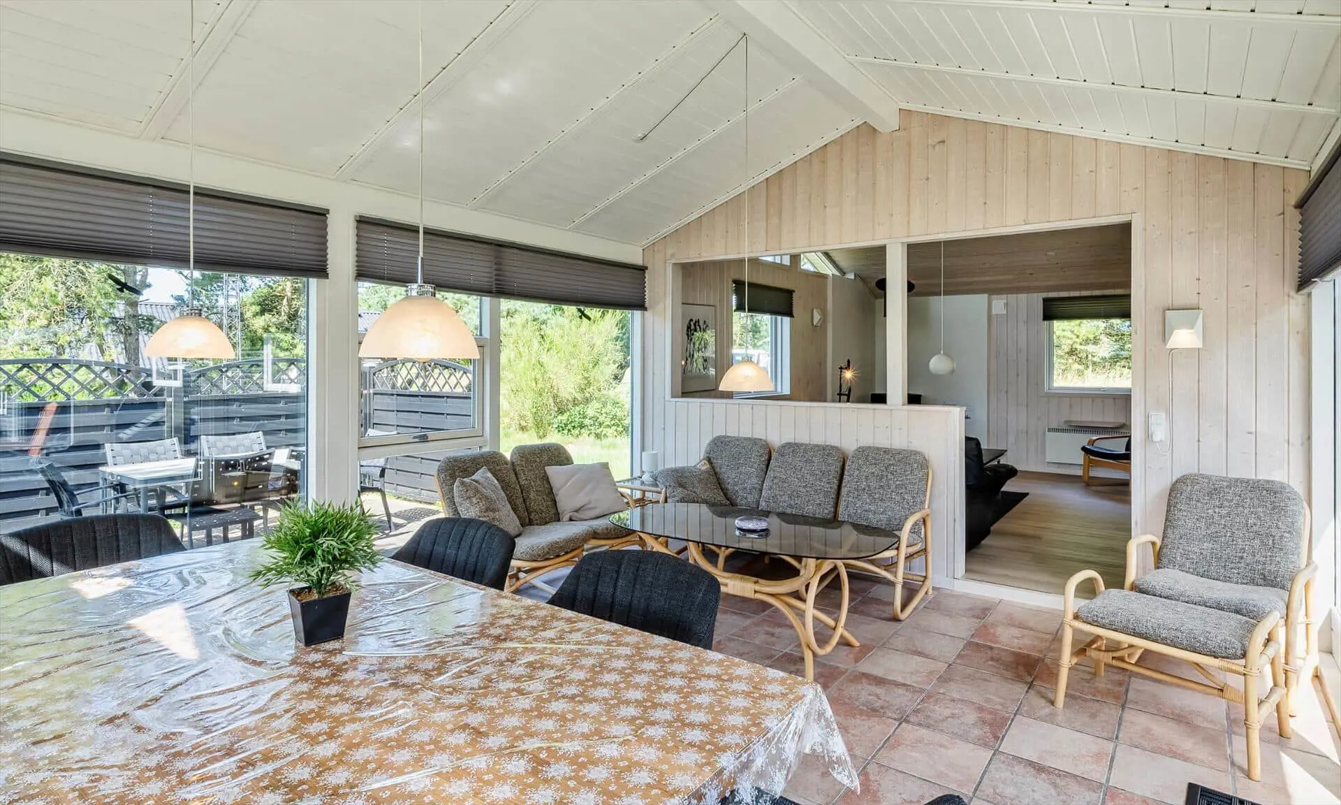 Tritt ein in ein Zuhause, in dem helles Holz und warme Textilien von Anfang an eine einladende Stimmung schaffen. Die große Wintergartenerweiterung mit Panoramafenstern lässt viel Licht herein und vermittelt das Gefühl, der Natur ganz nah zu sein, auch wenn das Wetter wechselhaft ist — ein natürlicher Treffpunkt für den Morgenkaffee oder eine ruhige Lesestunde. Die Einrichtung ist schlicht und funktional mit Komfort im Fokus; die gemütlichen Schlafzimmer versprechen erholsame Nächte. Das Badezimmer ist elegant gestaltet, und dank der eingebauten Sauna wird Wellness schnell ein Teil des Urlaubsprogramms. Praktische und stimmungsvolle Details sorgen dafür, dass das Entspannen leichtfällt: viel Stauraum, angenehme Beleuchtung und ein Grundriss, der Nähe und Ruhe fördert. Hier kann die Familie spielen, lange Gespräche führen oder ein Nachmittagsschläfchen mit Blick ins Grüne genießen.