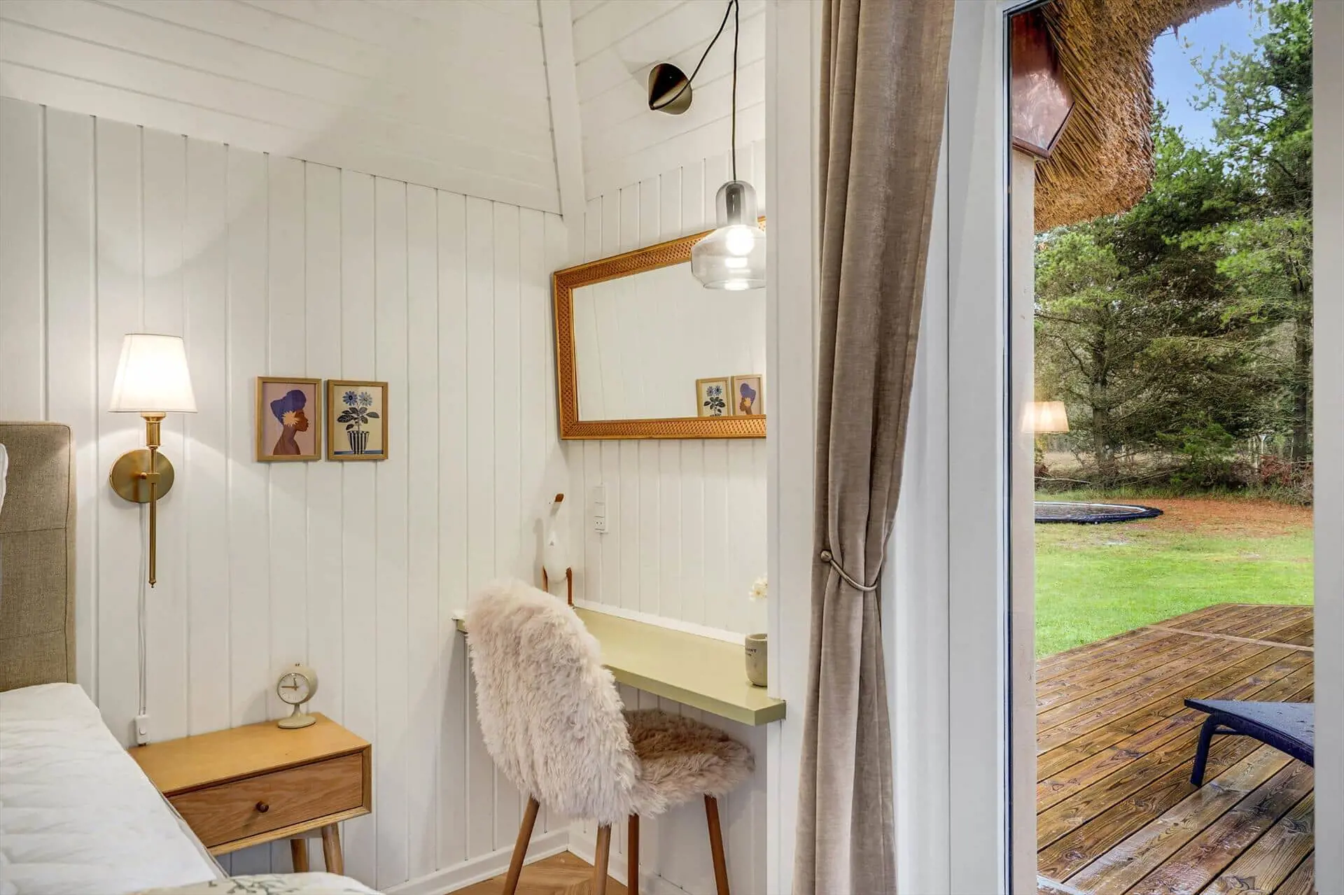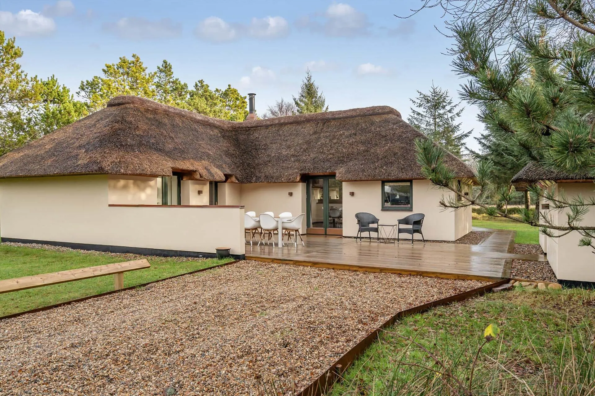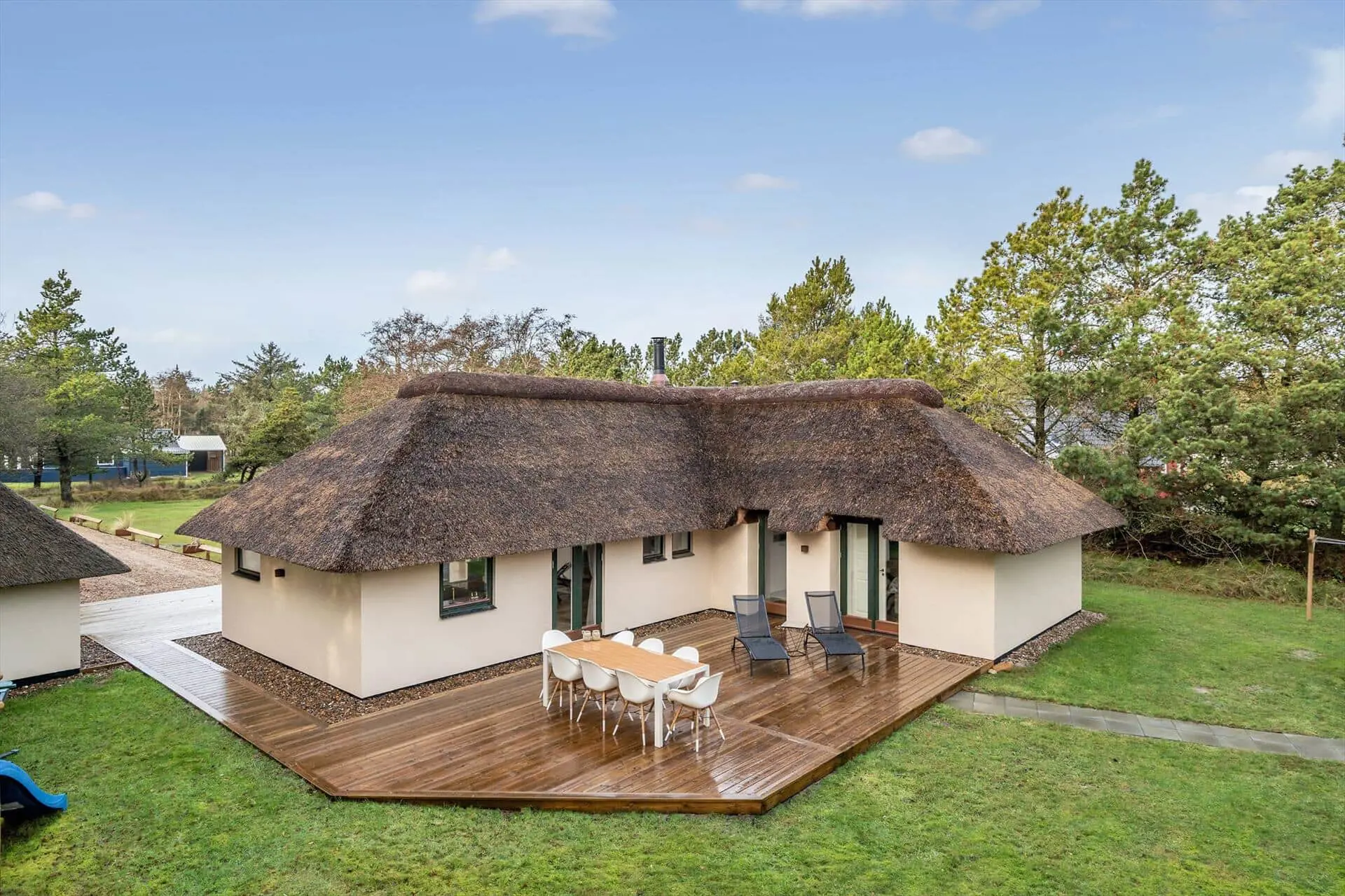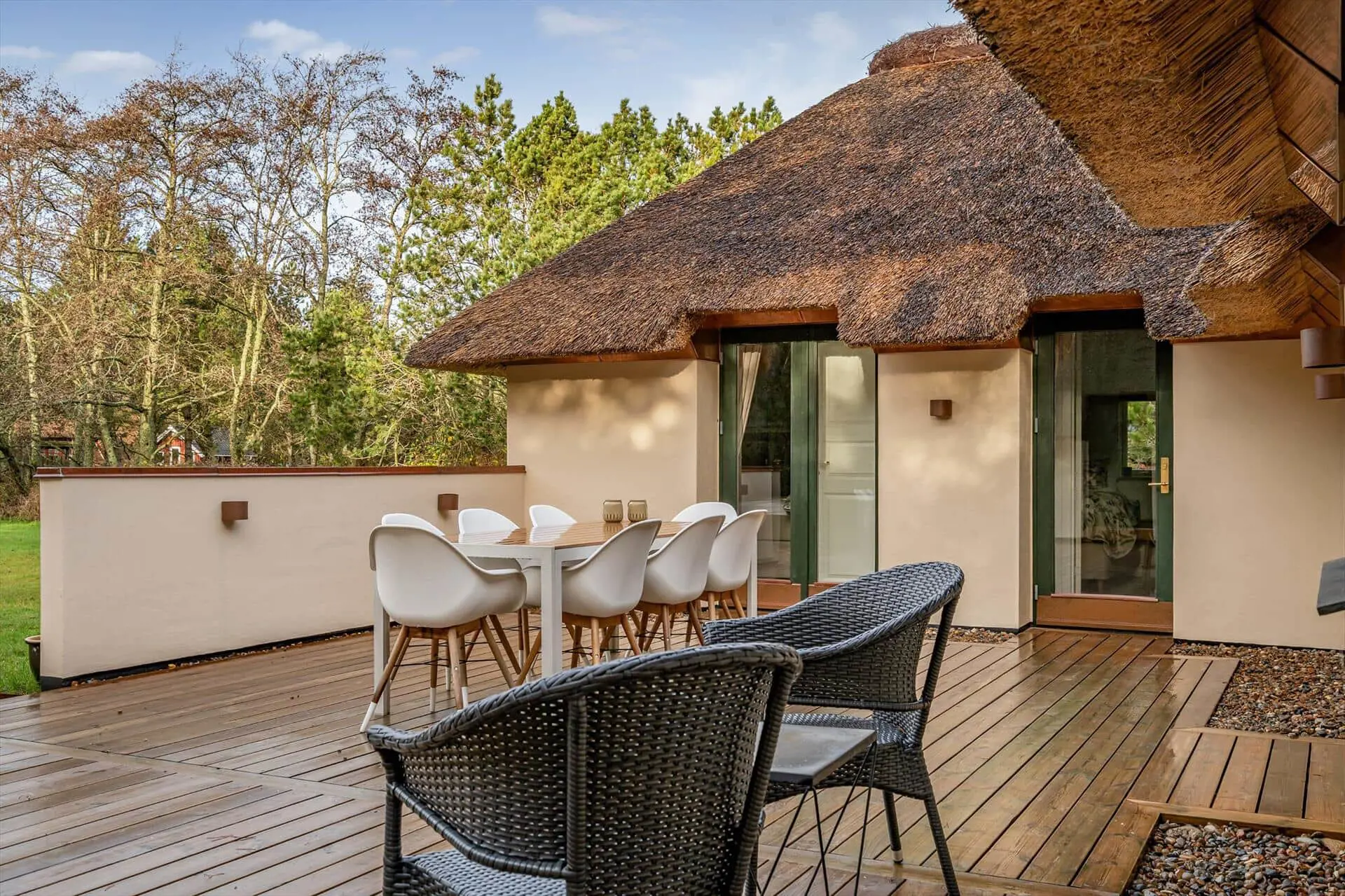 Ein besonderes Ferienhaus mit idyllischem Reetdach und einer einladenden, persönlichen Inneneinrichtung. Du findest hier eine ruhige Basis nahe der Küste von Vejers, in der die detailreiche Ausstattung und der Blick in die Natur zu einem ungewöhnlichen und unvergesslichen Urlaubserlebnis beitragen.